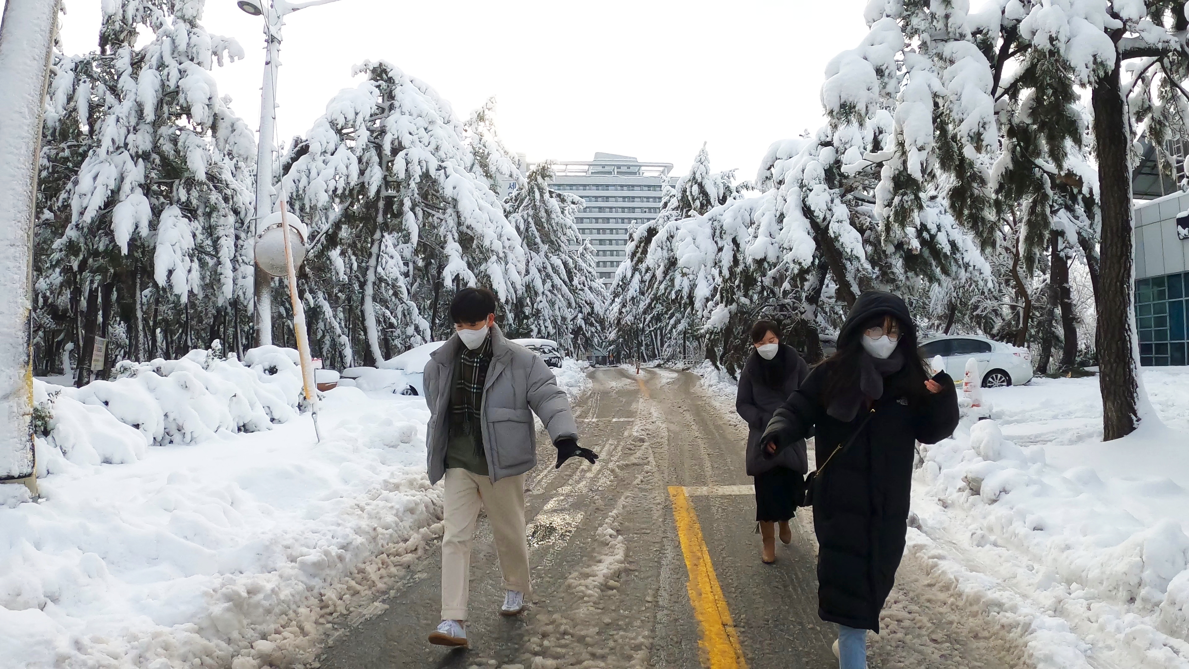 주차장으로 왔더니, 차 위로 눈이 엄청나게 쌓여 있고 차를 뺄수도 없는 상황.