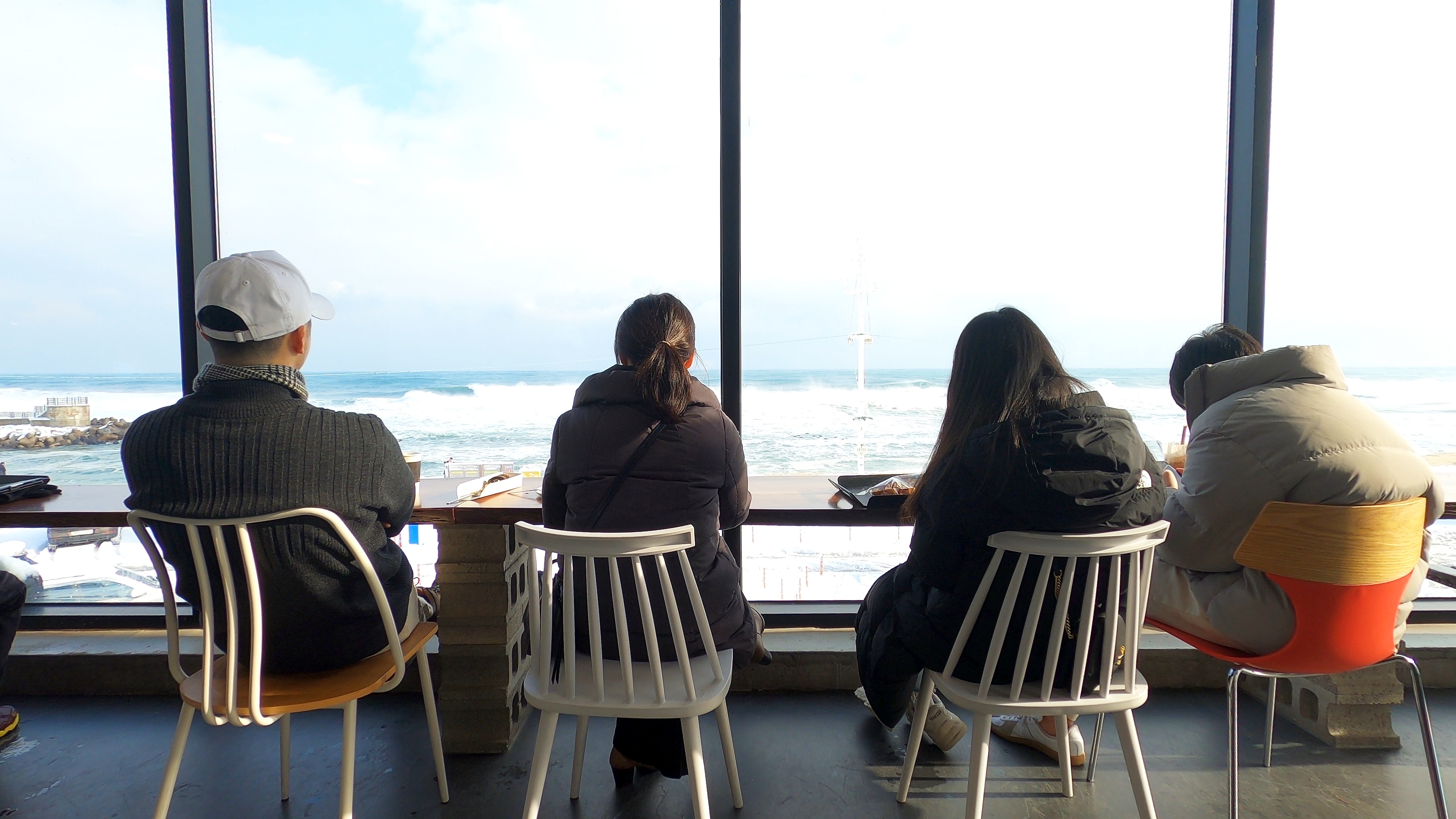 창가에서 바다를 내려다 보며 커피를 마실수 있는 멋진 곳.
