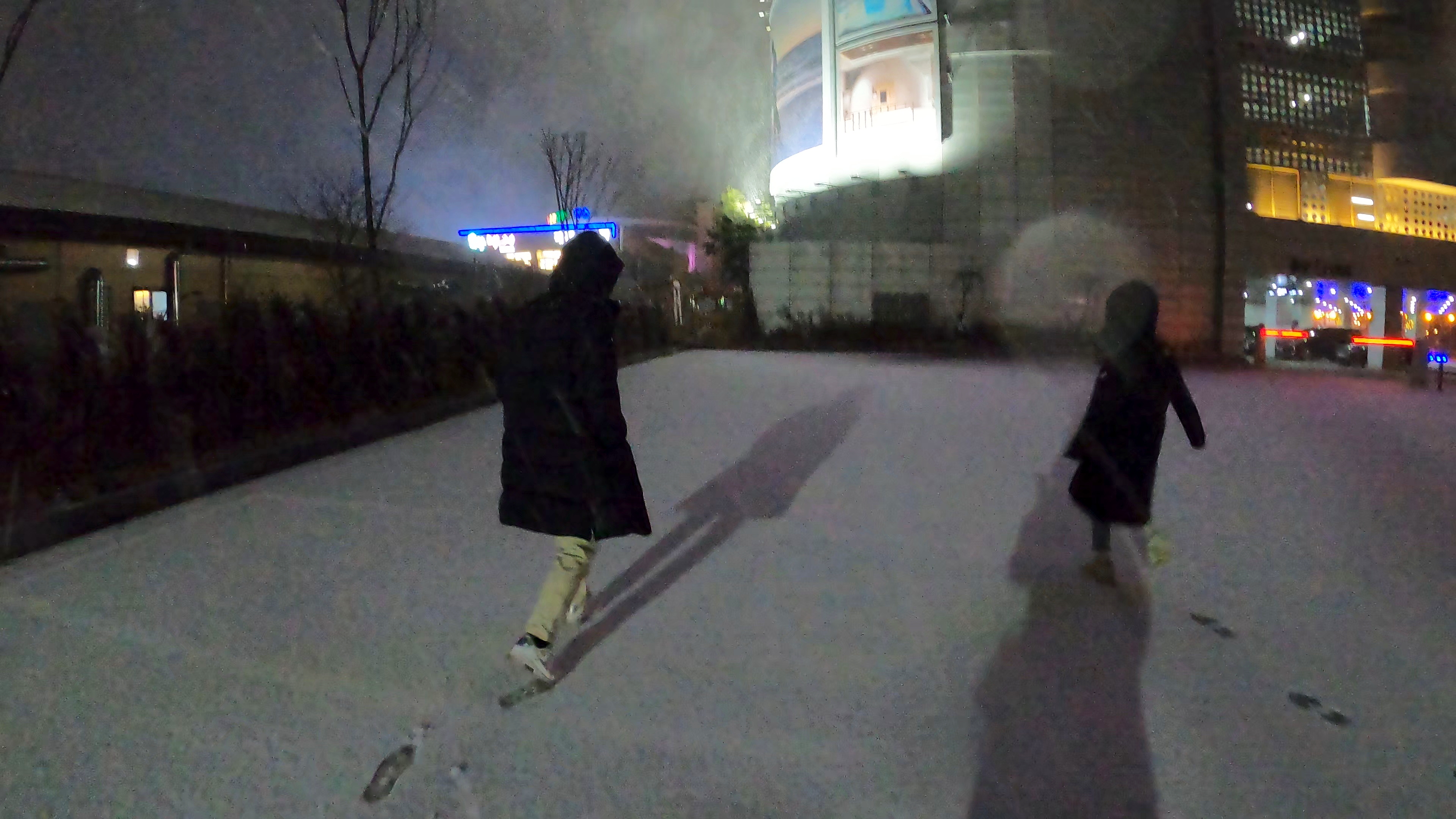 발자국 하나 없는 곳에서 우리가족의 발자국을 남기며 신나게 놀았다. 마음 같아선 뒹굴고 싶을 정도였으나, 내리는 눈발이 너무 따가웠다.