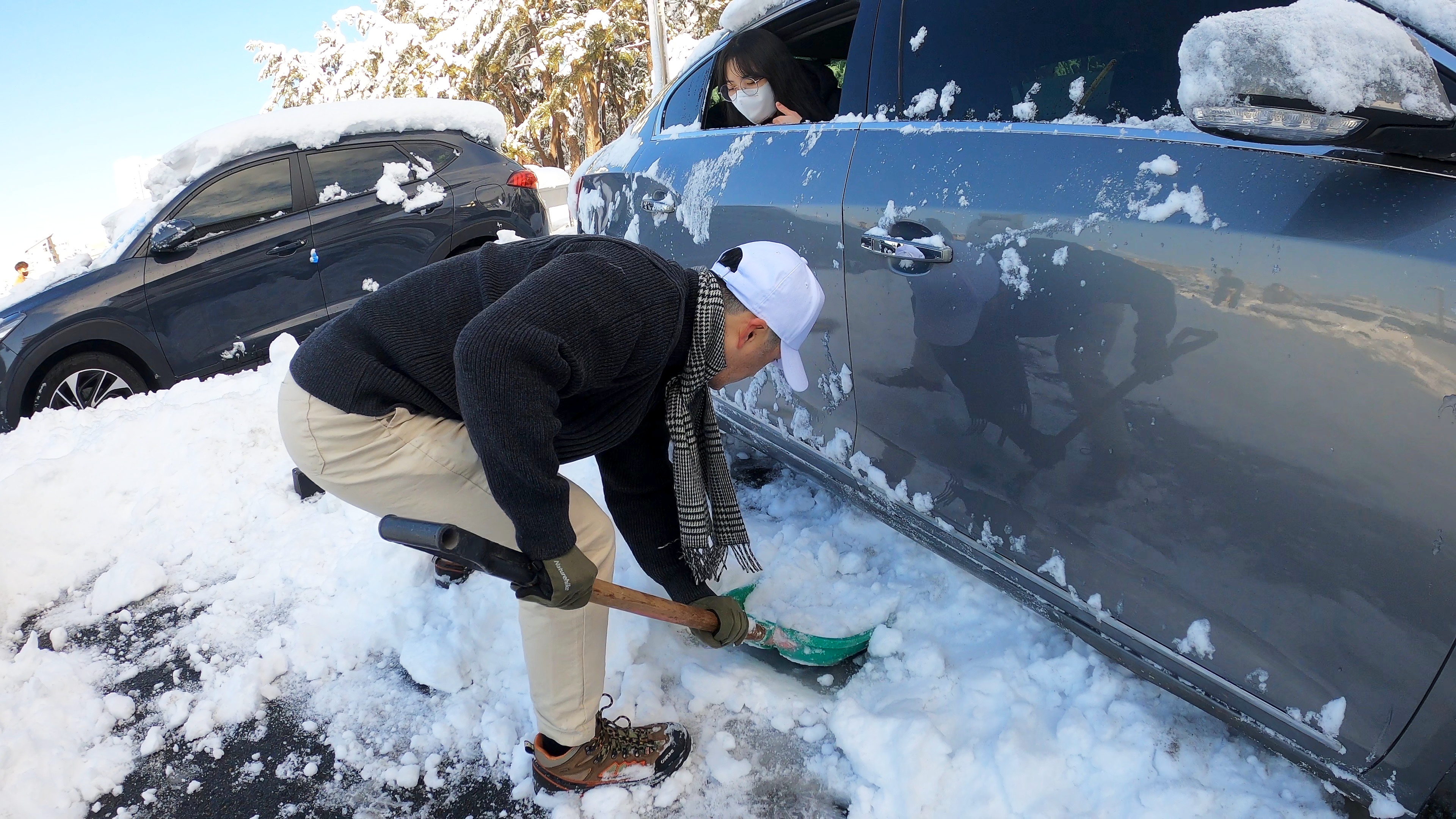 호텔 Staff 분들이 주변 눈 정리를 해주고 계셨으나 차를 바로 빼야 하는 상황이라 제설도구를 빌려서 열심히 눈을 치웠다.