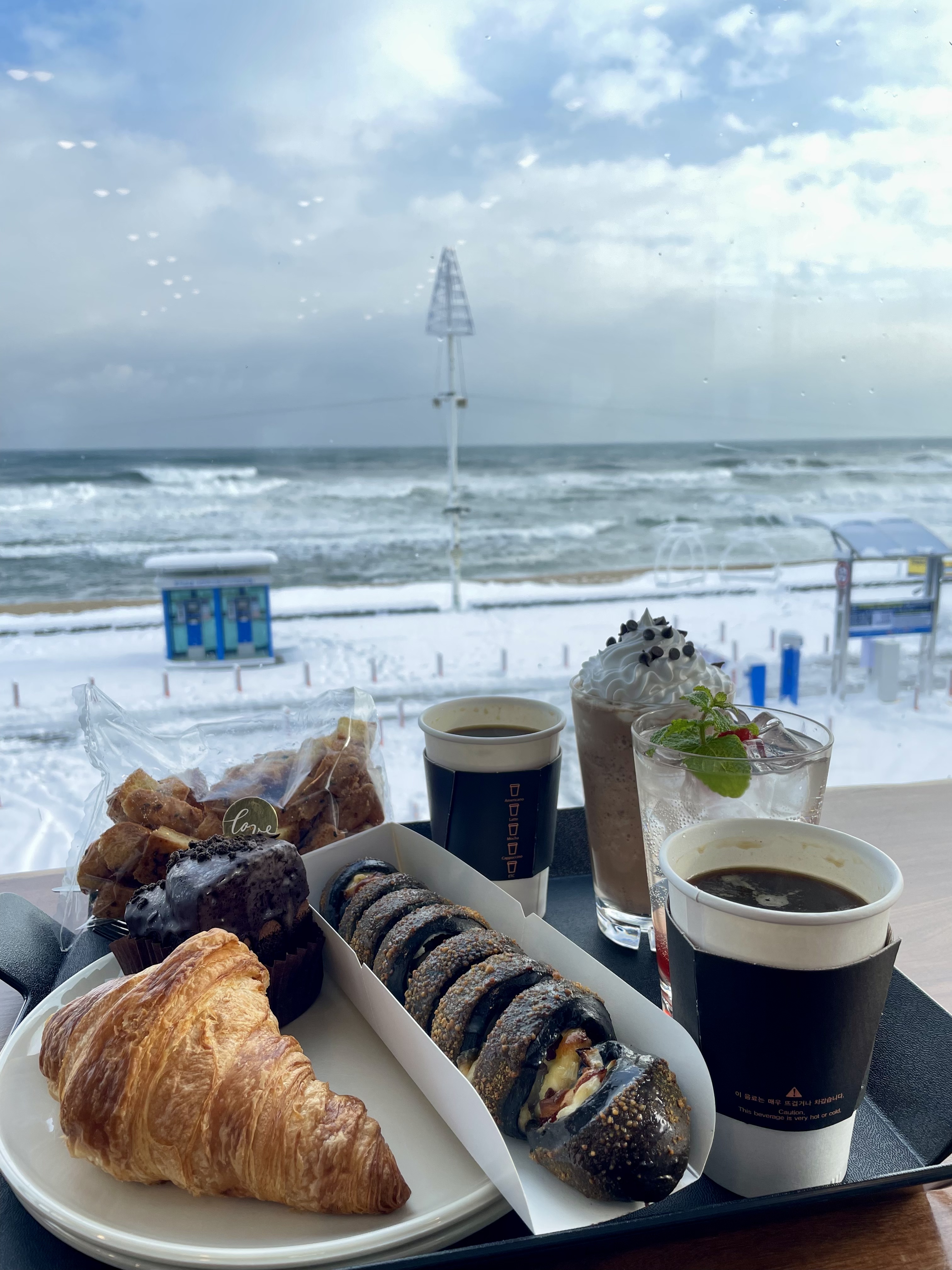 호텔의 조식은 애초에 신청을 안했고, 근처에 있는 브런치 카페를 찾아 걸어가본다. 해변가로 가서 카페를 가려고 했으나, 사람 걷는 길을 구분 할 수 없을 정도로 눈이 많이 쌓여, 찻길을 따라 걸어갔다.