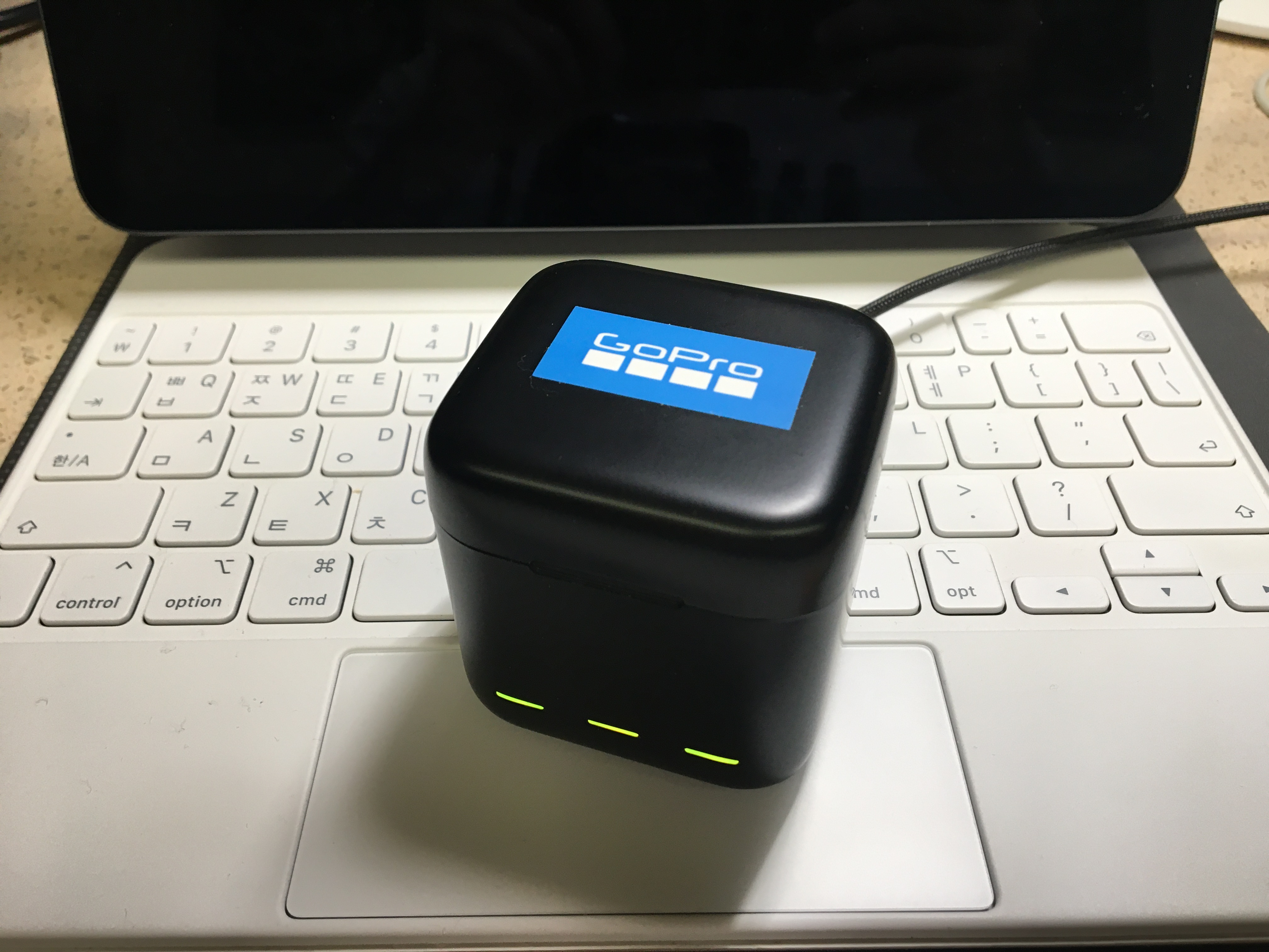 충전케이스로 고프로 엔듀로 배터리와 일반 정품 배터리를 충전해보니 그것도 충전이 잘 된다.