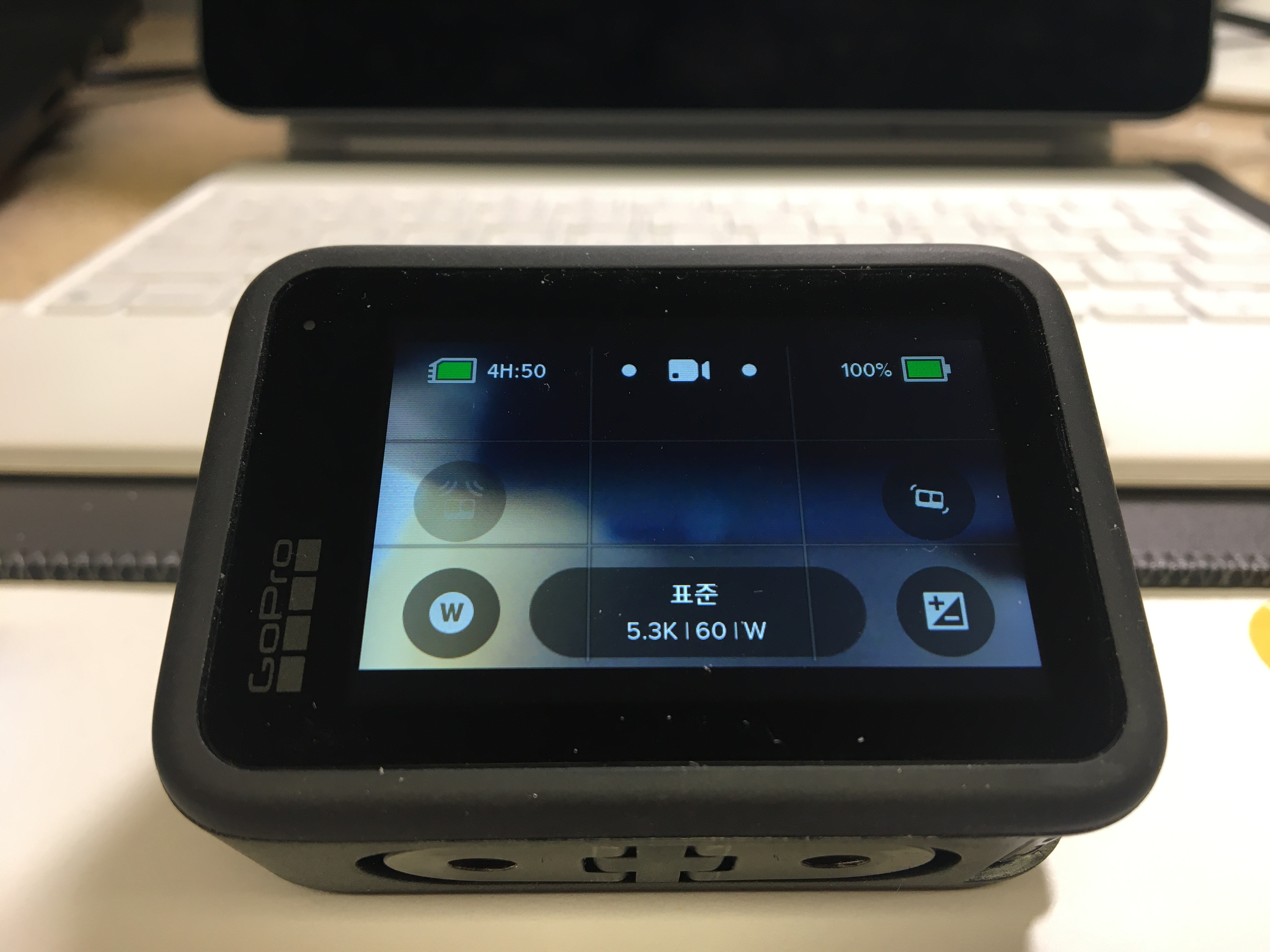 완충하고 넣어보니, 100%로 인식한다. 고프로5 쓸적에 비품 배터리를 넣으면 인식 못하게 하는 펌웨어가 있었는데, 언제부터인가 사라진듯 하다.