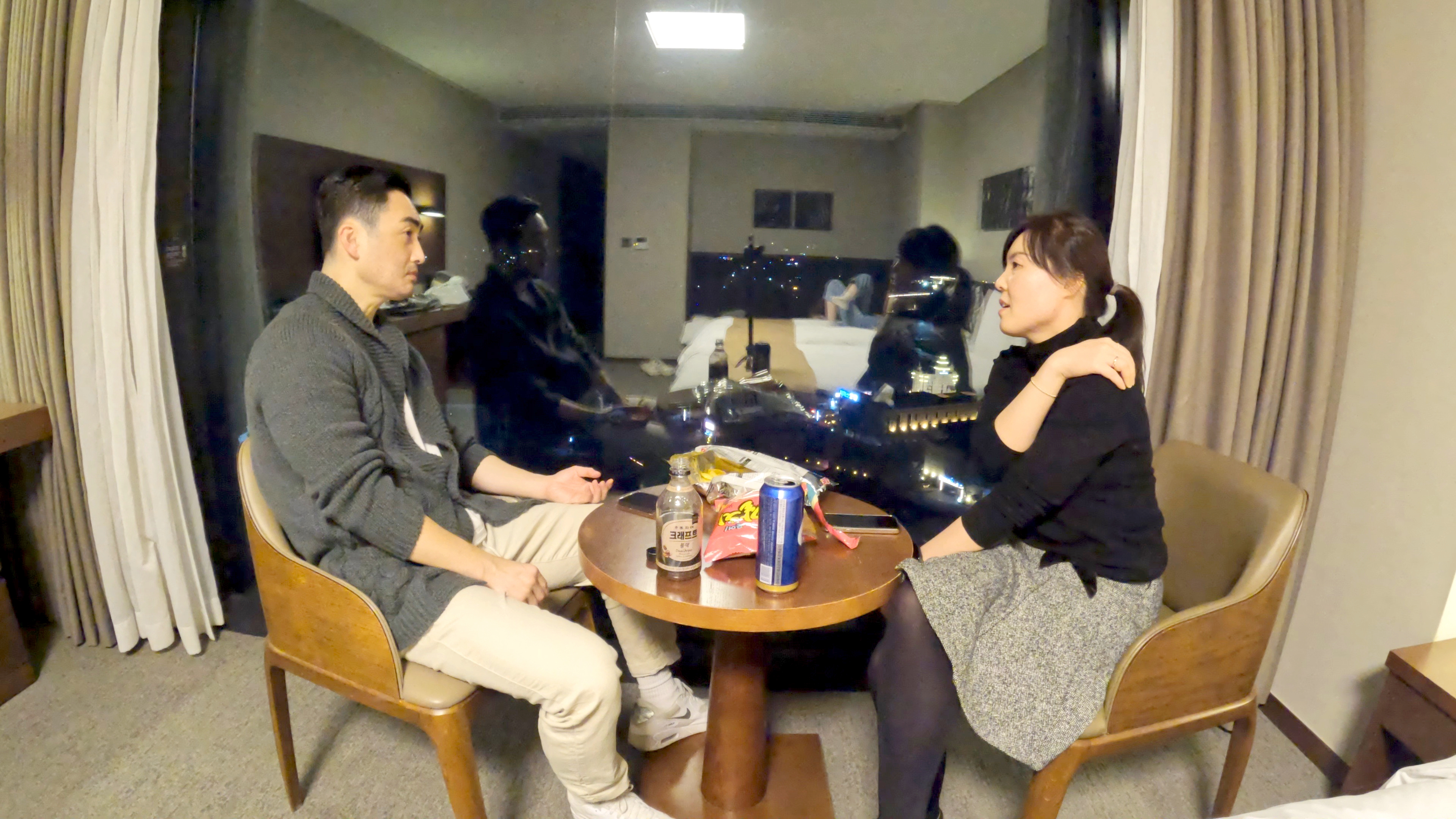 네명 전체 컷은 그냥 손으로 들고 찍는게 편하다.
