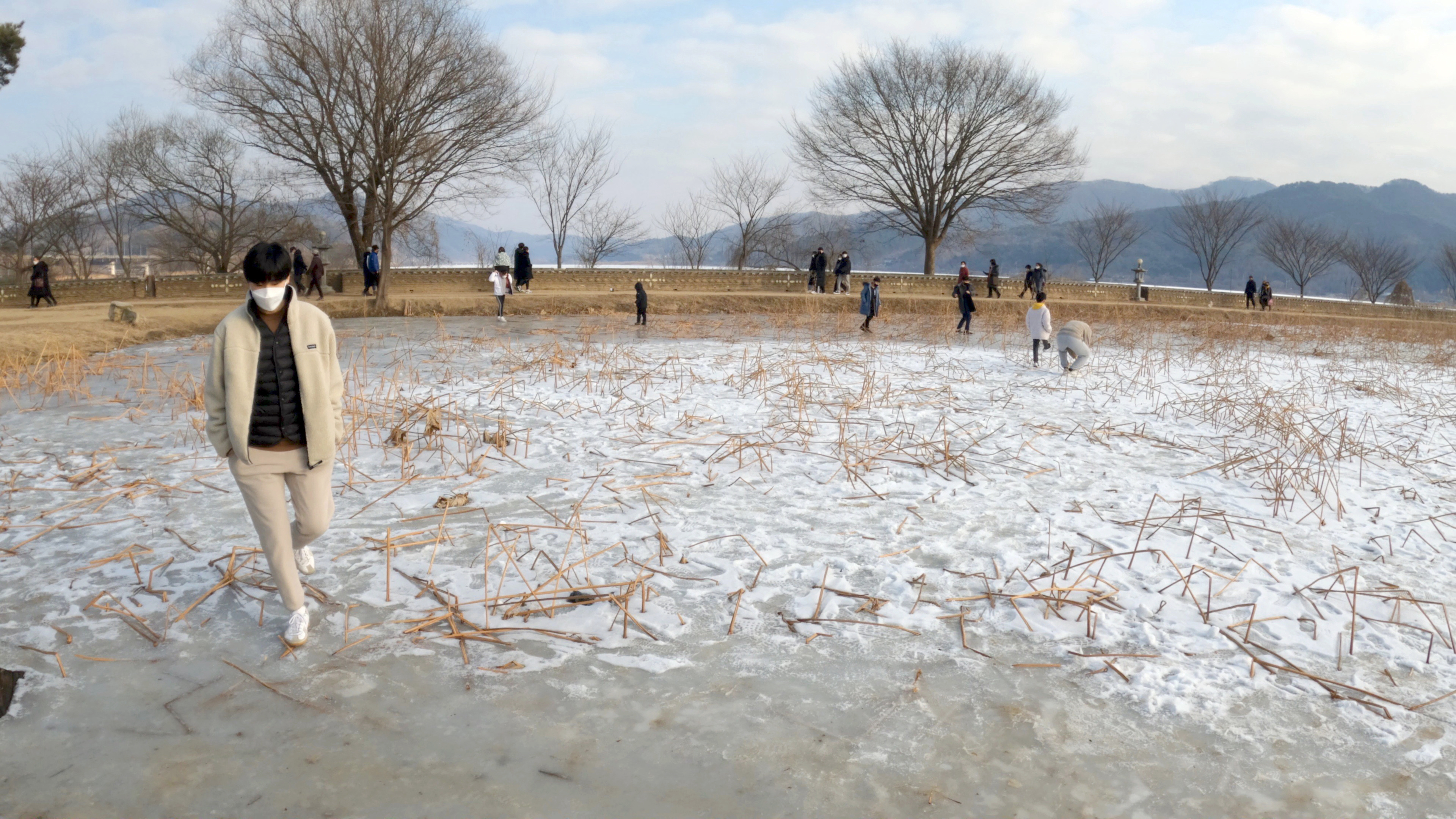 곳곳의 연못은 이미 꽁꽁 얼어서 사람이 다녀도 되는 상황