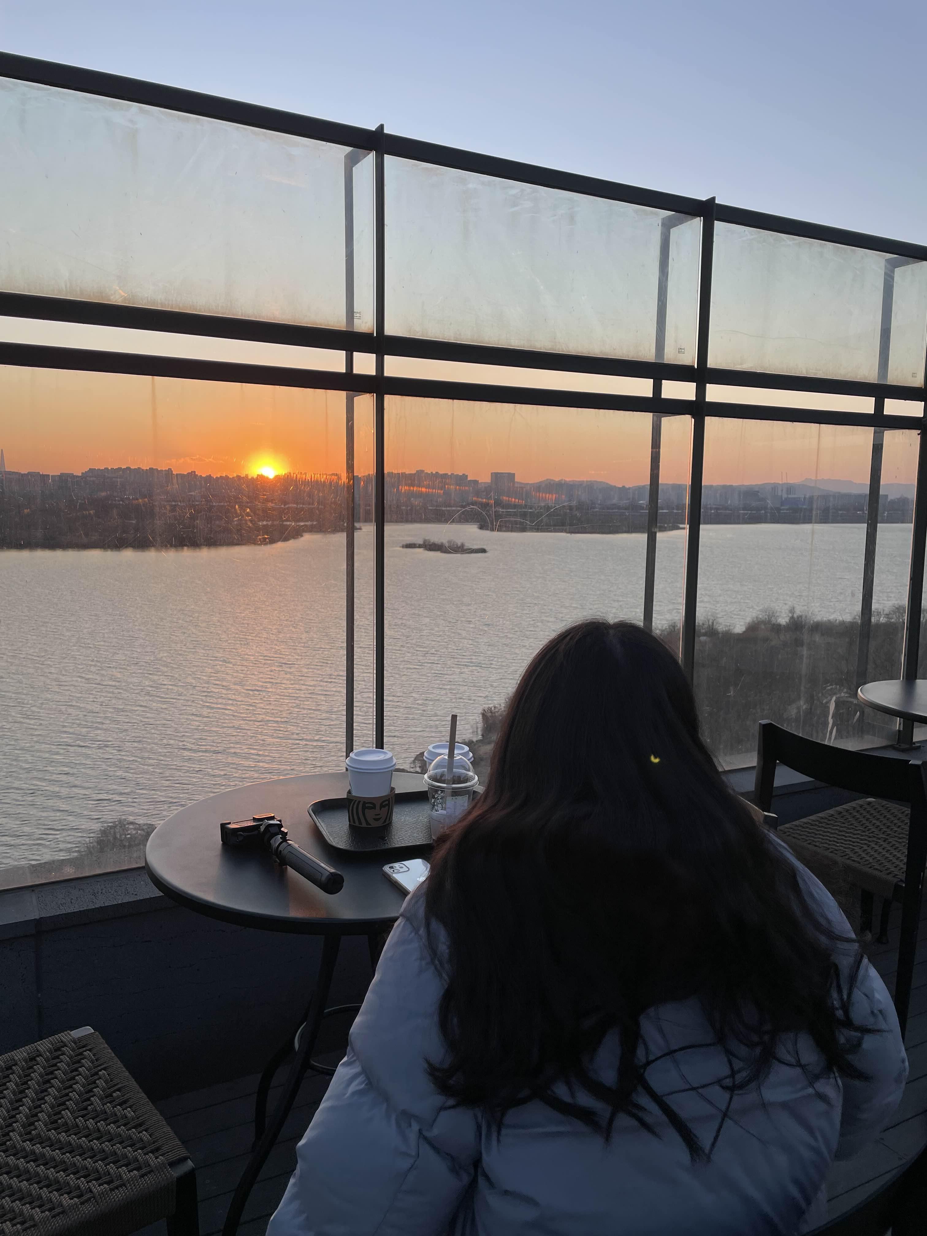 롯데타워 라운지를 둘러보고서는 아이스링크로 향했으나, 올림픽 열기때문인지 사람이 너무 많아서 포기하고 근처의 카페를 가기로 하고 급하게 찾아간 한강변 카페