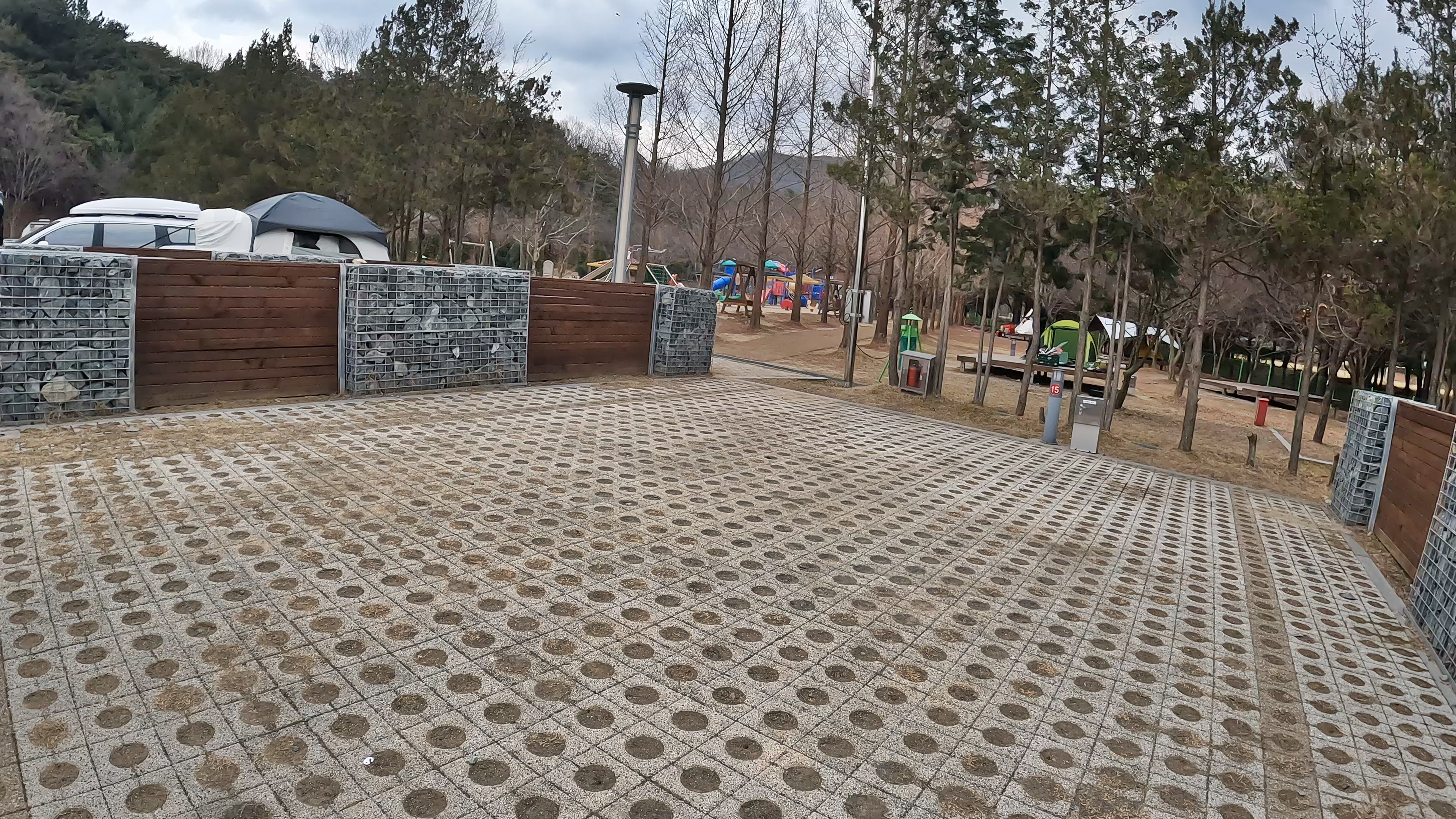 휴양림 도착. 예약한 자리는 잔디야영장 15번으로 엄청 넓다. 주로 캠핑카가 이용하는 공간인듯 해 보인다.