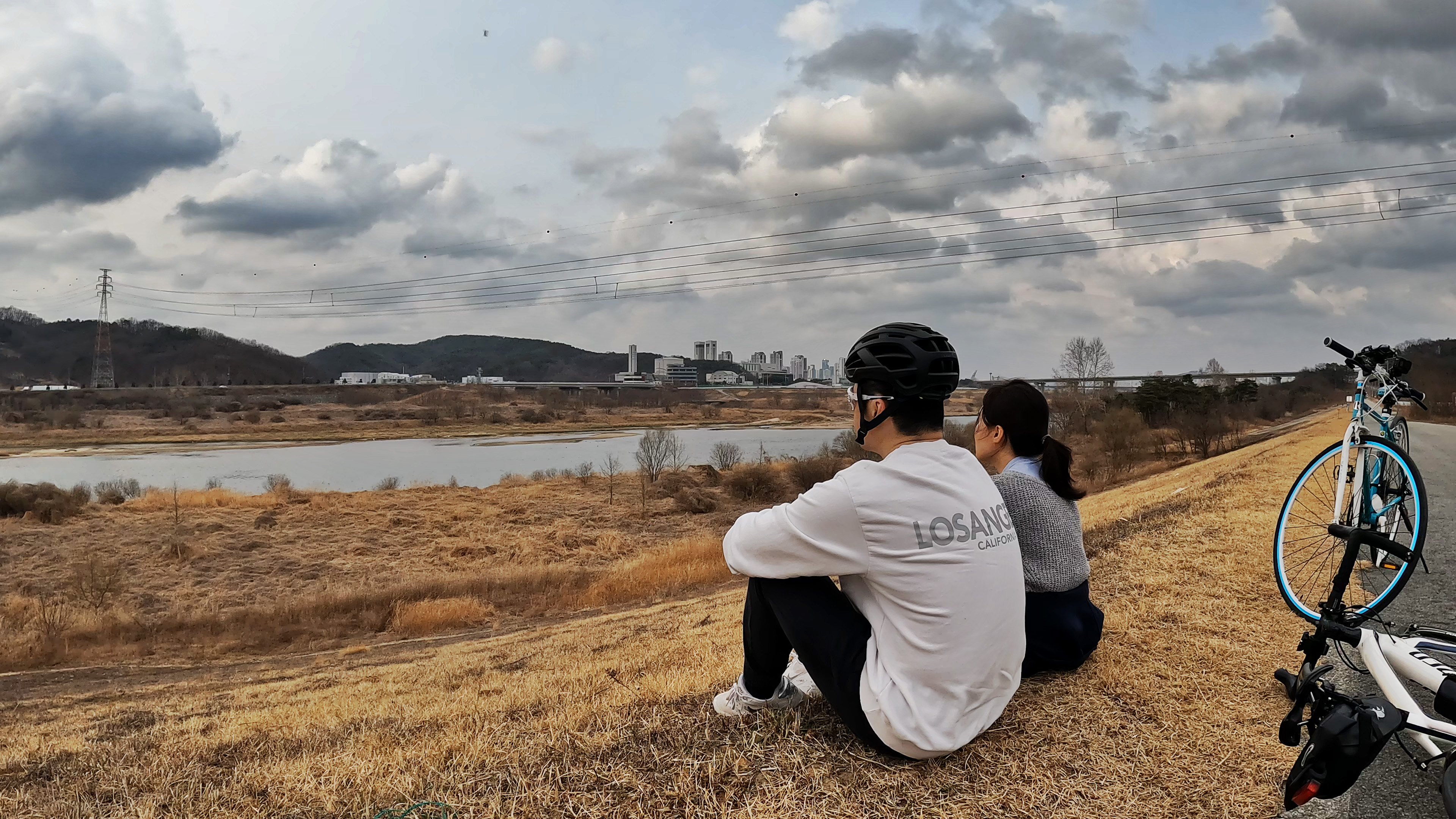 도심을 벗어나 한적한 강을 바라보니 마음이 편안해지고 좋다. 이런게 자전거 라이딩의 묘미가 아닐까 ..