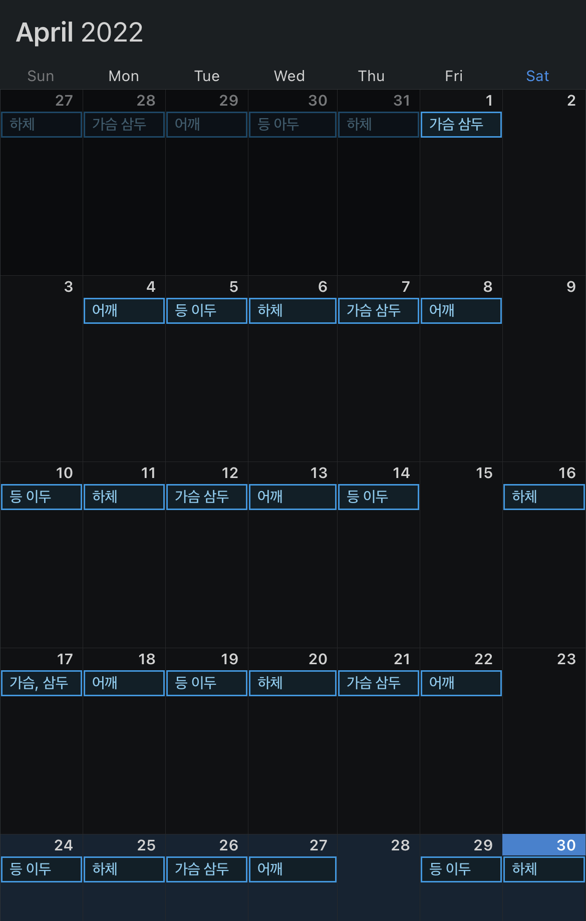 3월까지는 코로나 모드였다가 4월되면서 부터 헬스장도 늦게 문을 닫으면서 정상 스케쥴로 복귀.