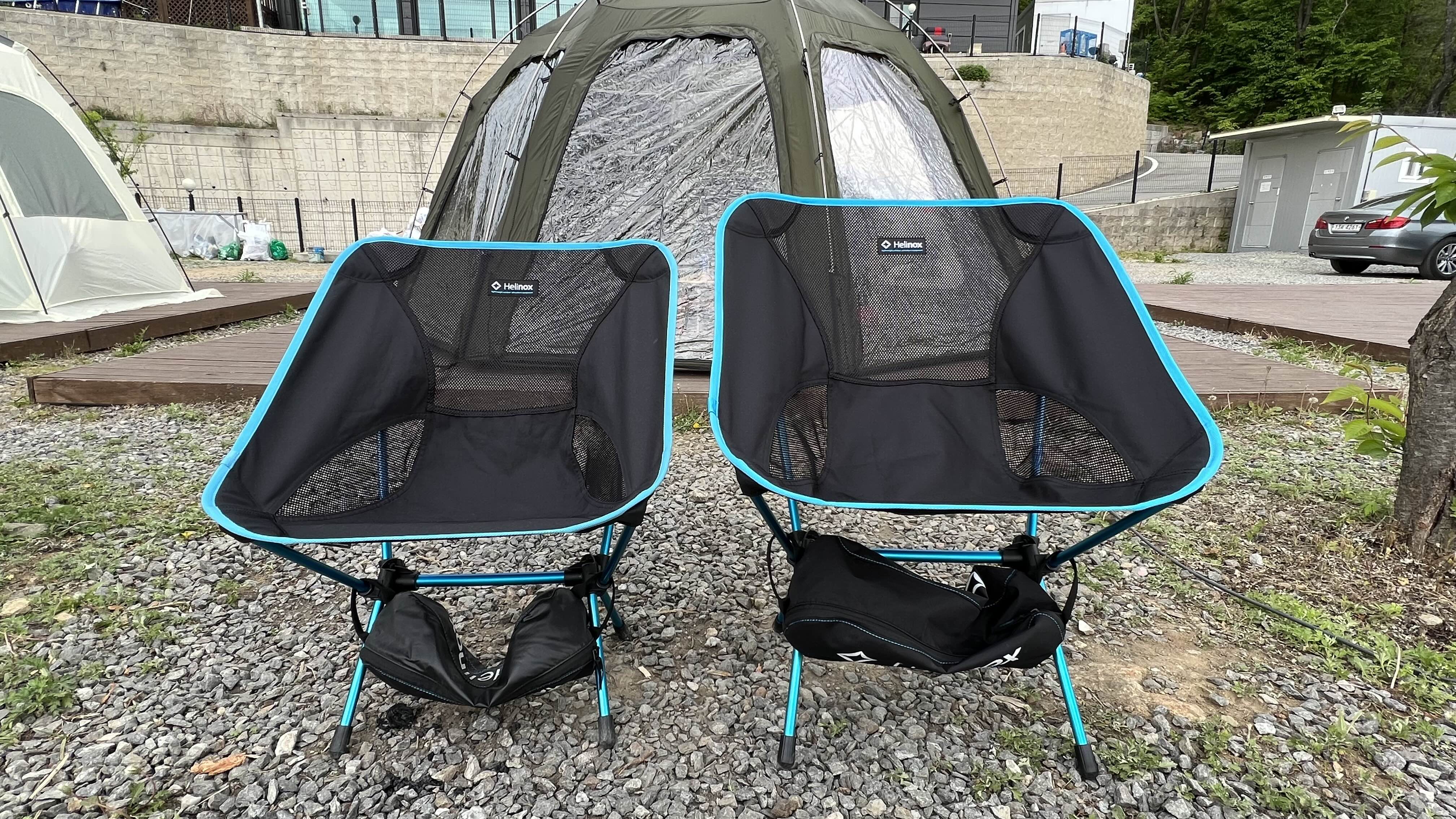현재 캠핑의자로 헬리녹스 체어원, 체어투, 선셋체어 이렇게 3개를 구비하고 있고 주로 부부 둘이서 캠핑 다닐딴 체어원과 체어투를 사용중이다.