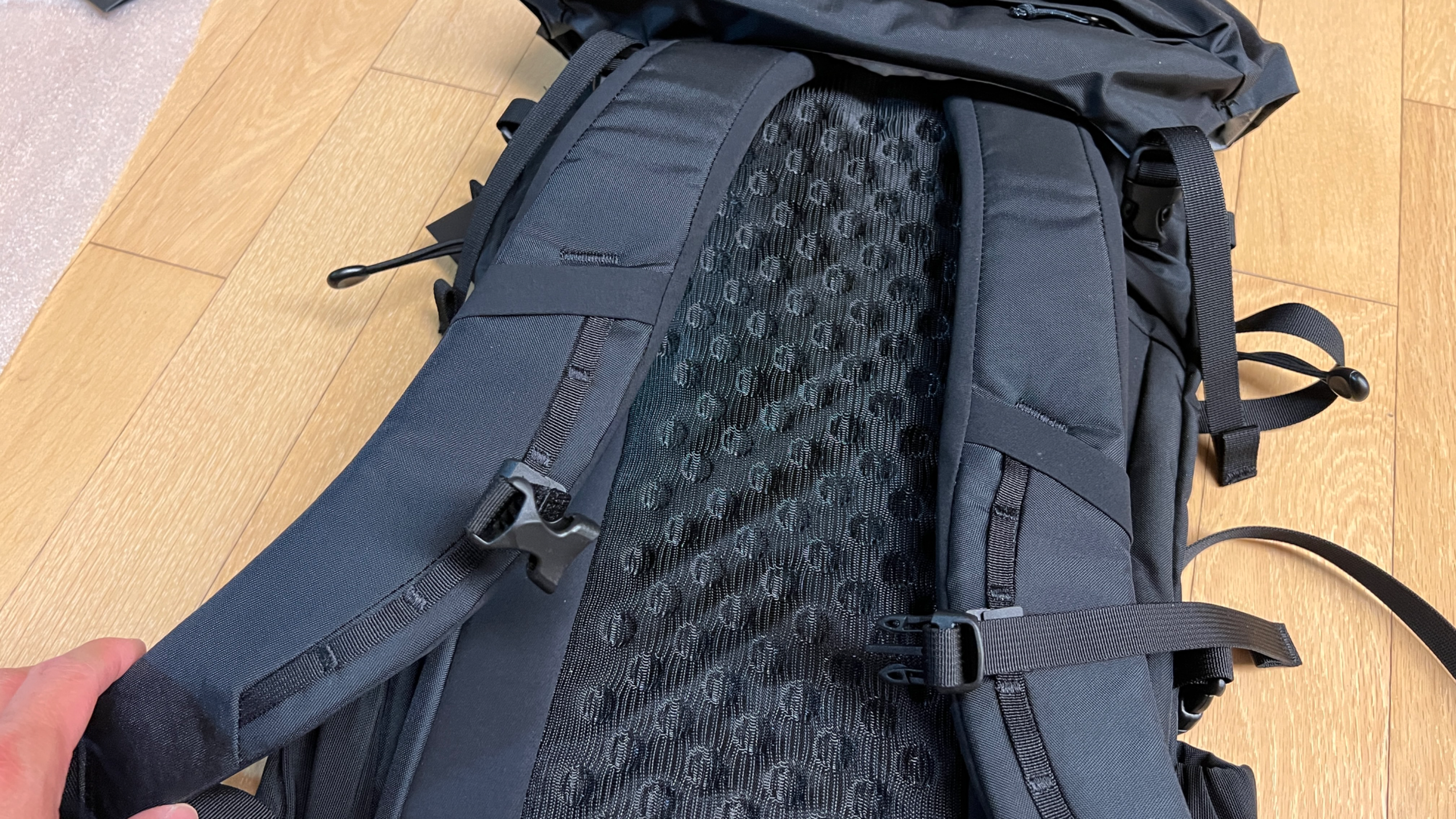 배낭을 메었을때 이런 모양이 나온다. 참고로 하단부 각을 위해서 미스테리월 디팩 XS 사이즈를 아래부분에 장착한 상태의 모습이다.