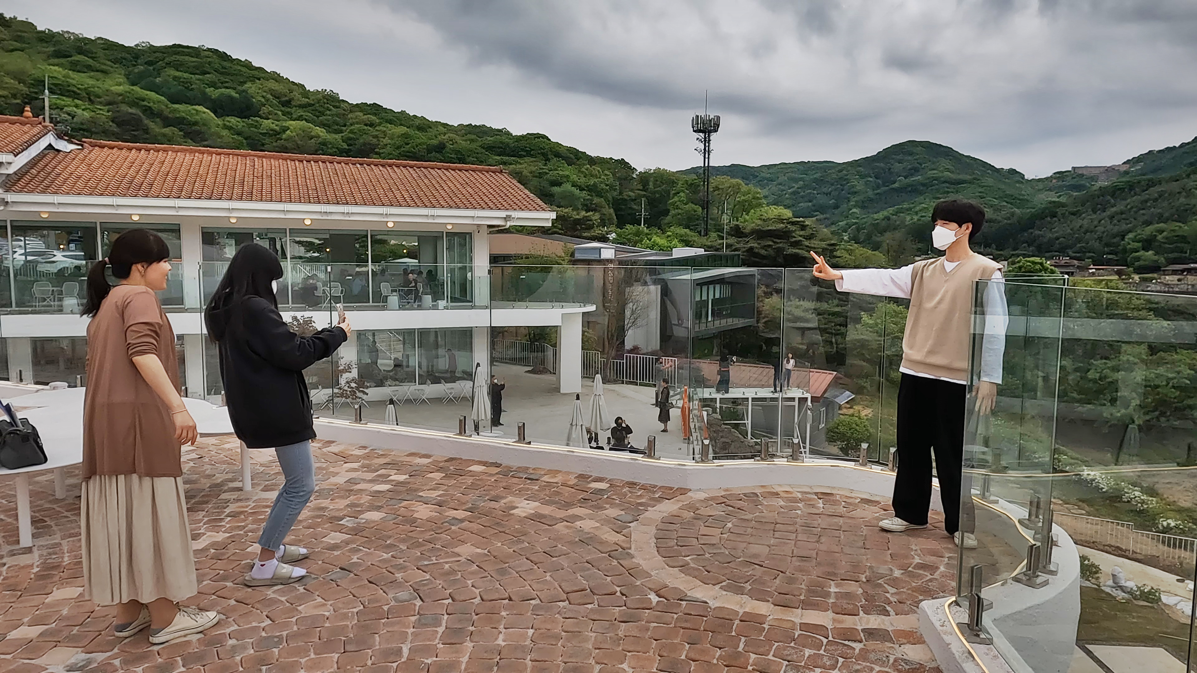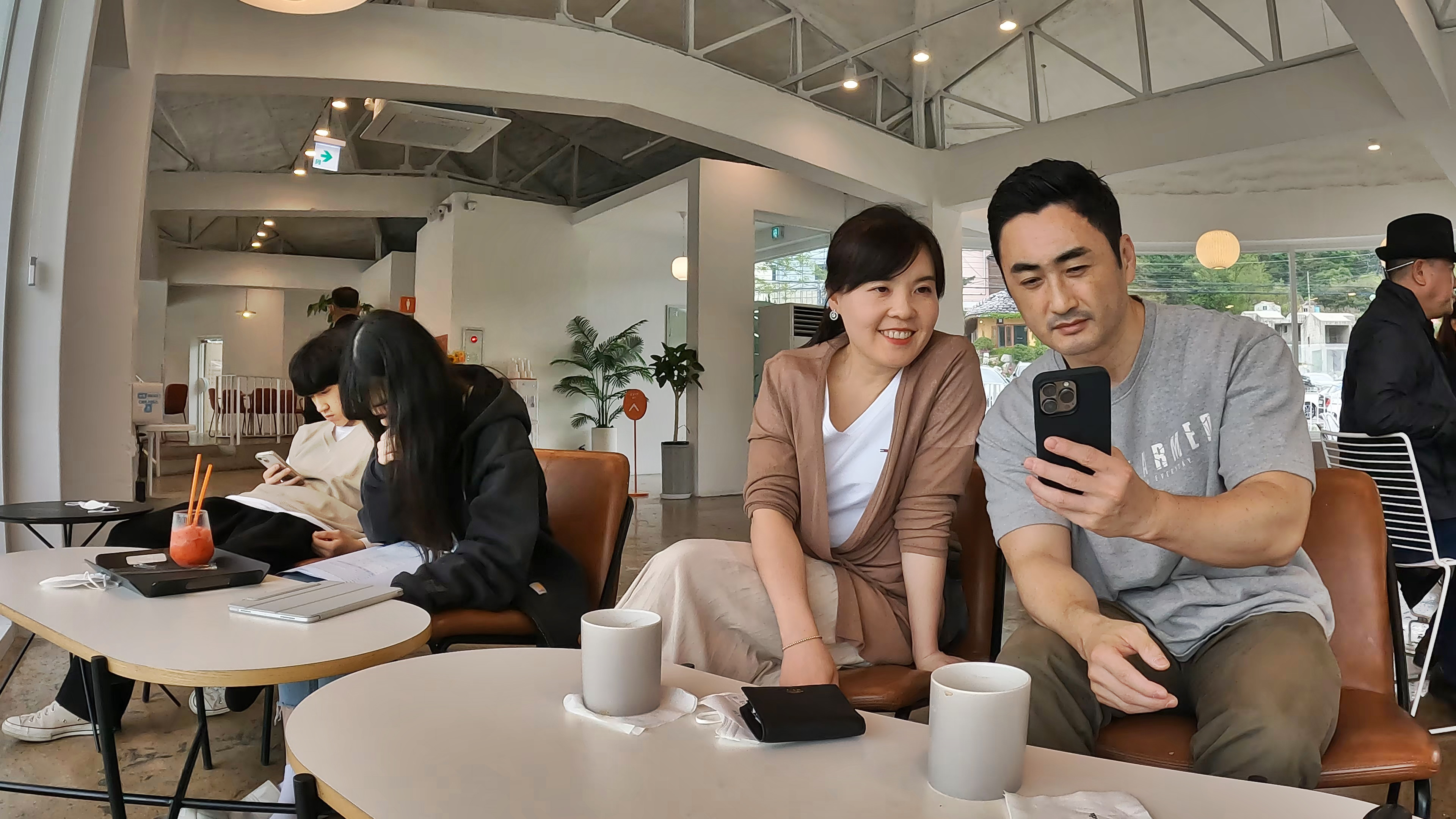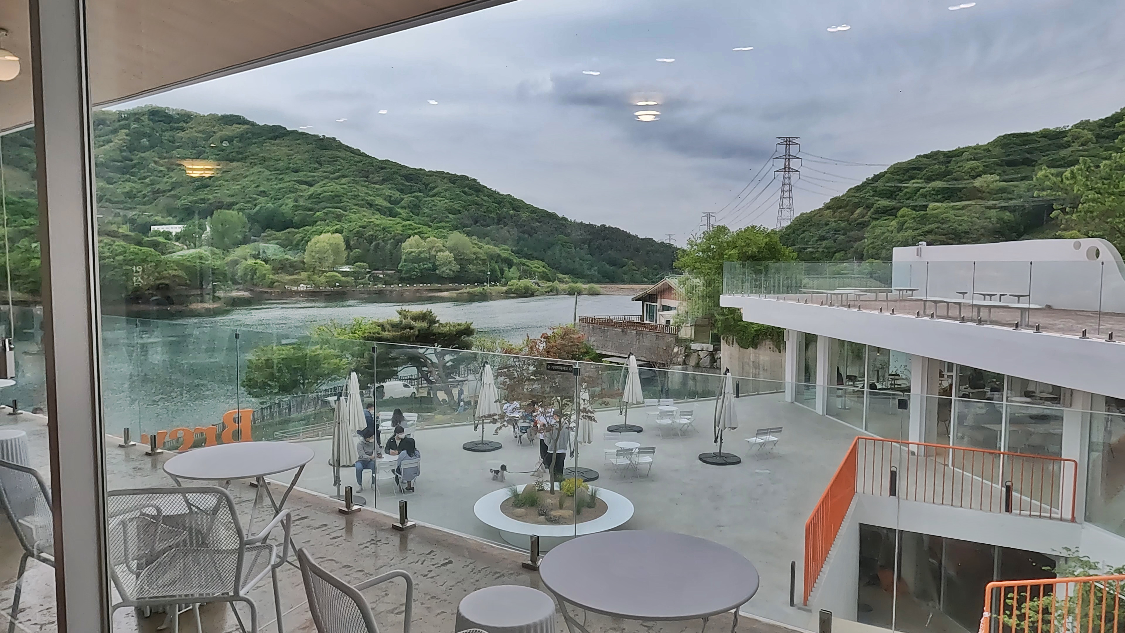 카페에서 멋진 뷰를 바라보며 커피 한잔 때리고