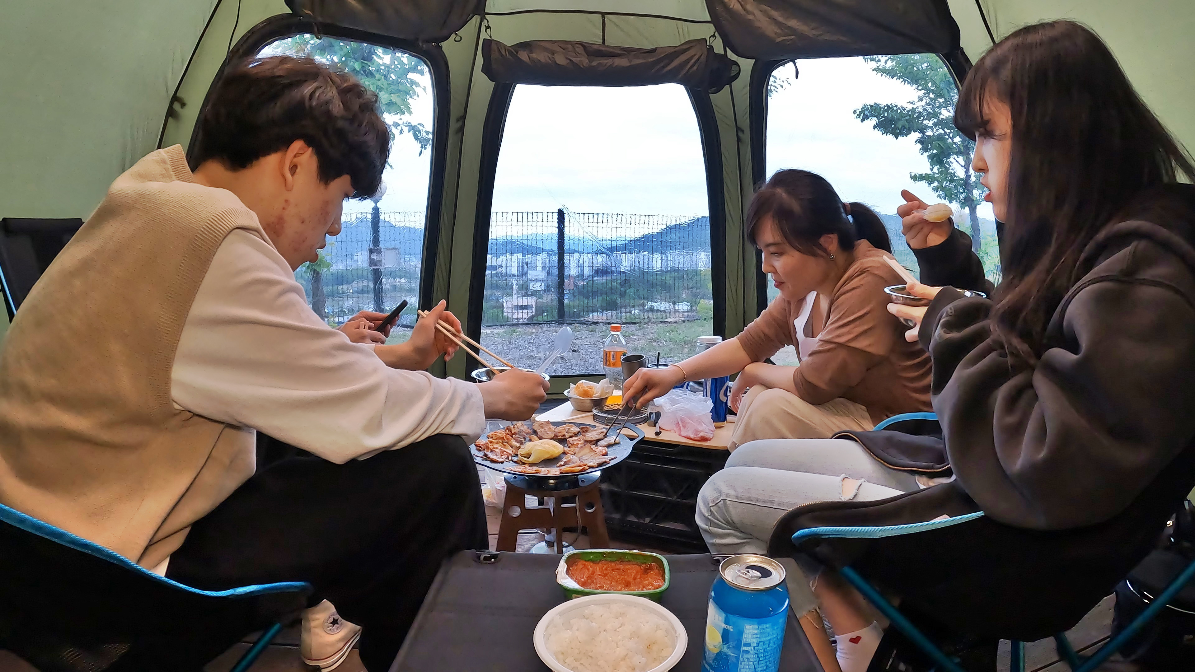 쉘터 안에서 삼겹살 파티