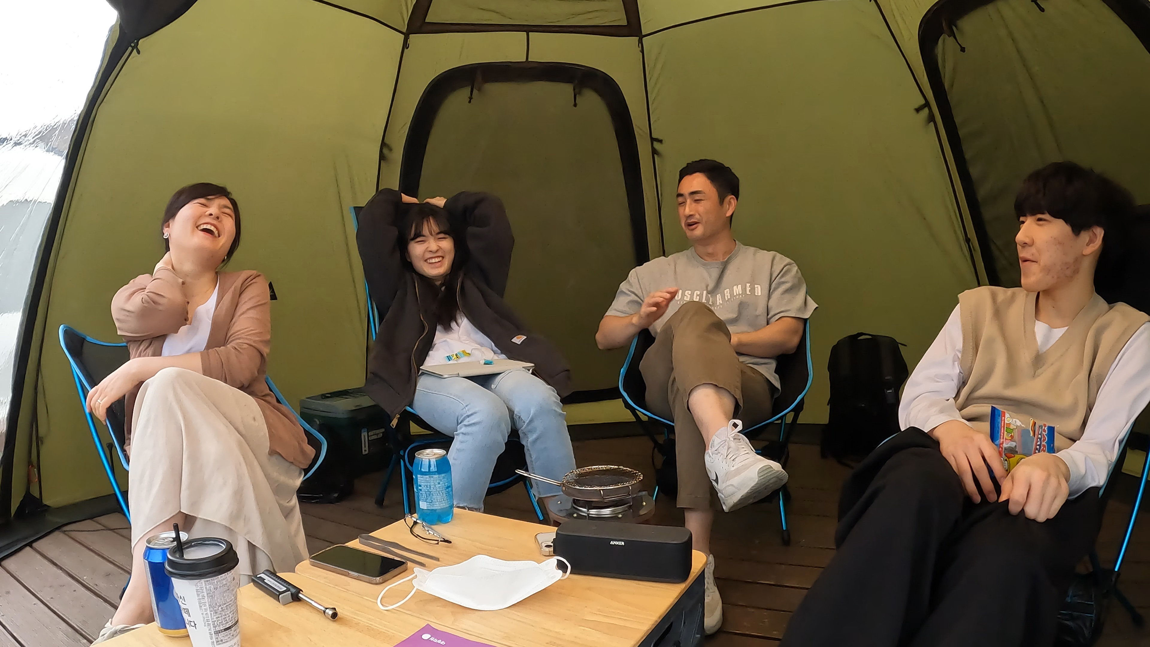 잠을 잘 것이 아니라 간단히 쉘터와 의자, 테이블만으로 사이트를 구성했는데, 이그니스 쉘터는 4인가족이 중간에 테이블 놓고 앉아서 쉬기에 딱 좋은 사이즈다.