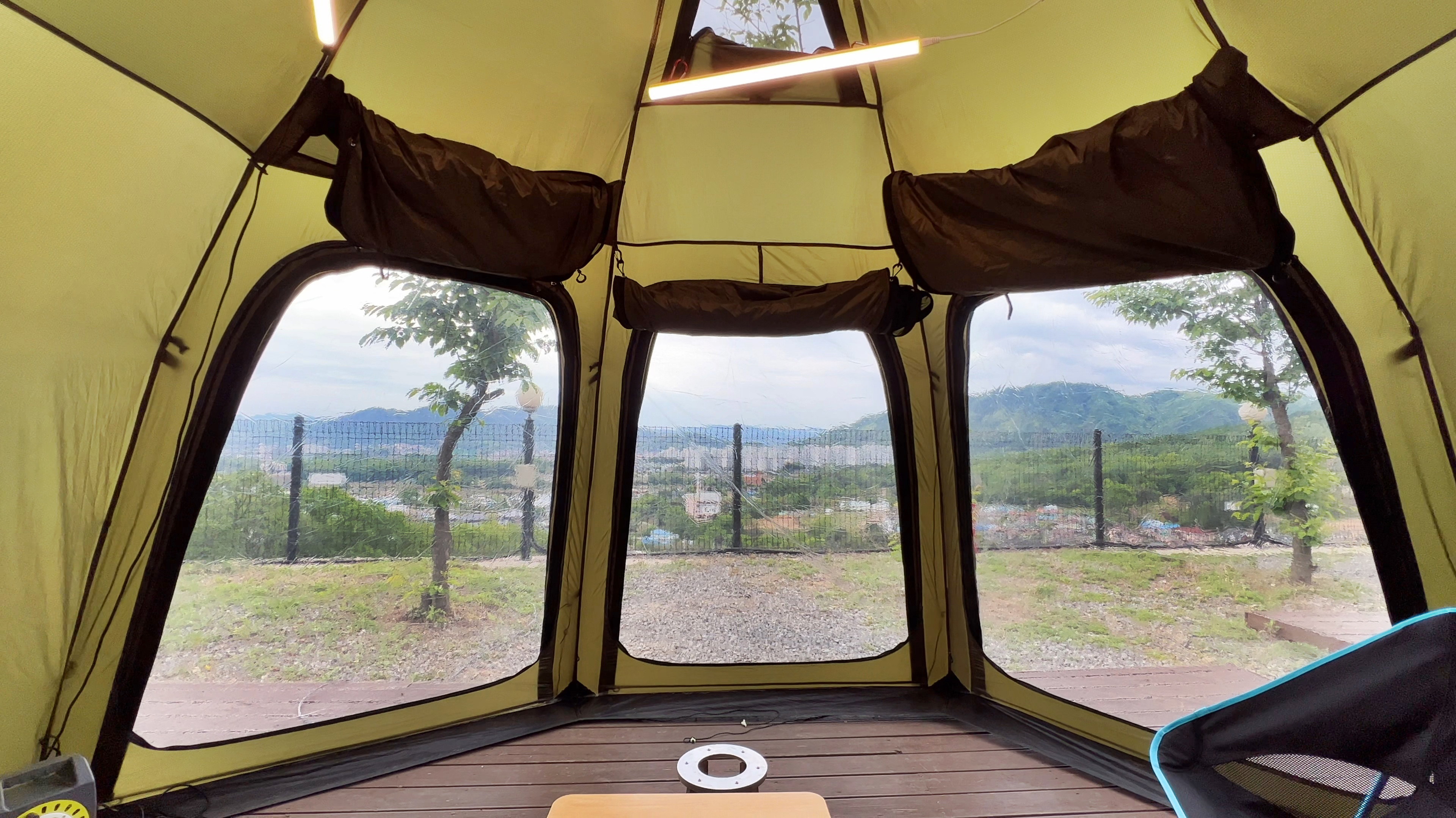 잠을 잘 것이 아니라 간단히 쉘터와 의자, 테이블만으로 사이트를 구성했는데, 이그니스 쉘터는 4인가족이 중간에 테이블 놓고 앉아서 쉬기에 딱 좋은 사이즈다.