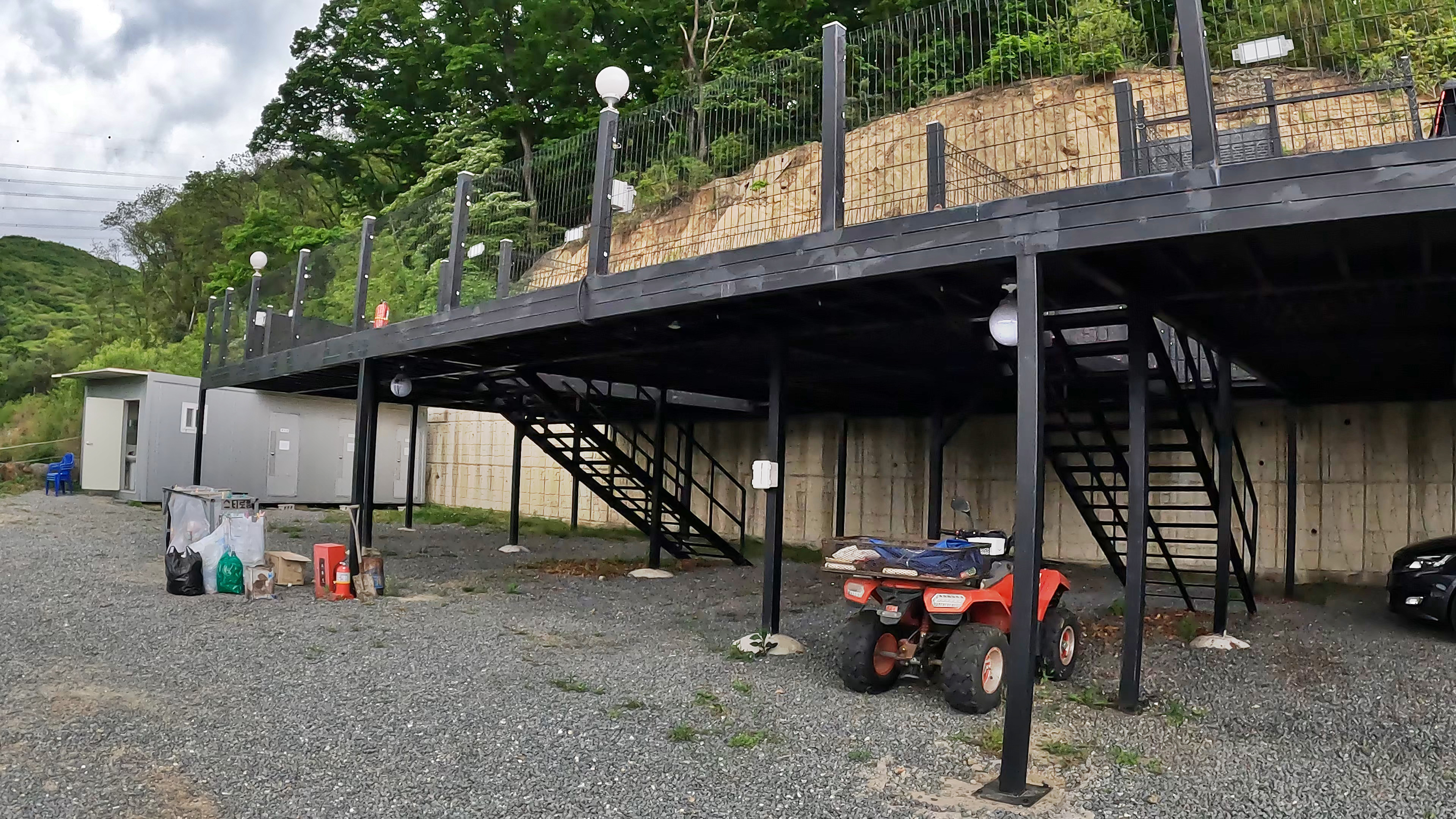 A구역은 2개의 데크와 파쇄석 사이트 1개로 되어 있고, 사진에 보이는 B구역은 5m*6m의 파쇄석 사이트로 되어 있다.
