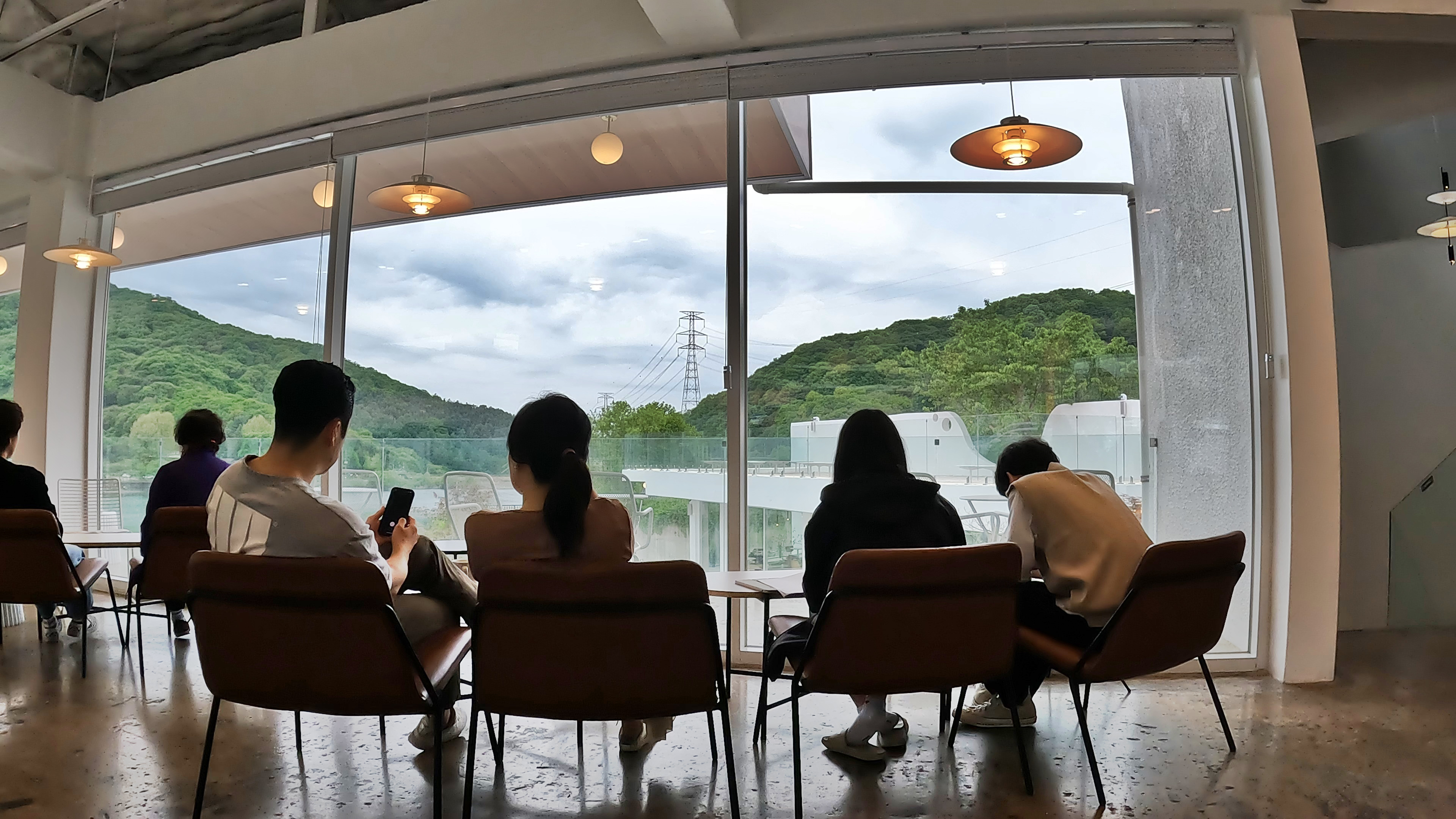 카페에서 멋진 뷰를 바라보며 커피 한잔 때리고