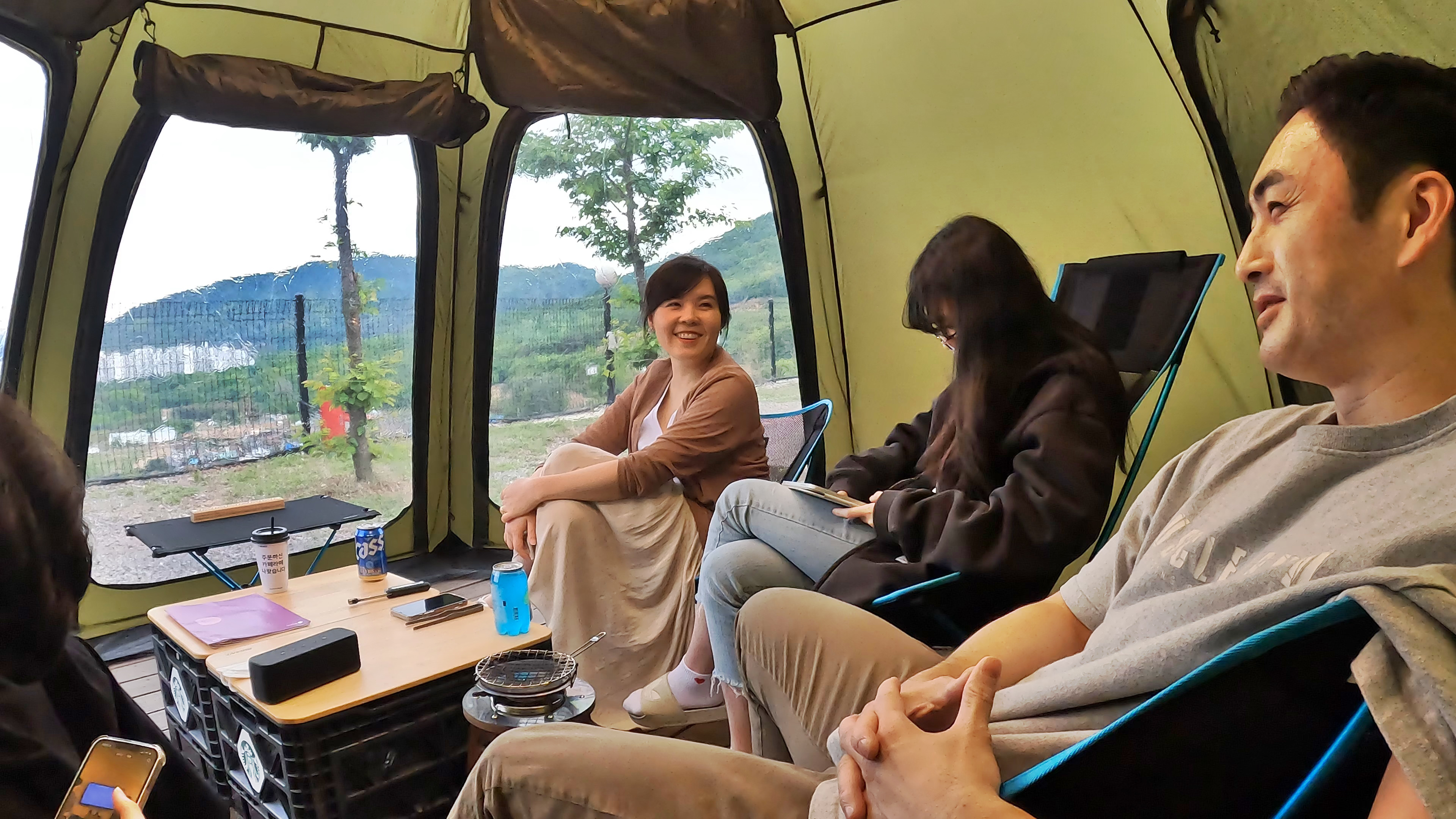 쉘터 안에서 삼겹살 파티
