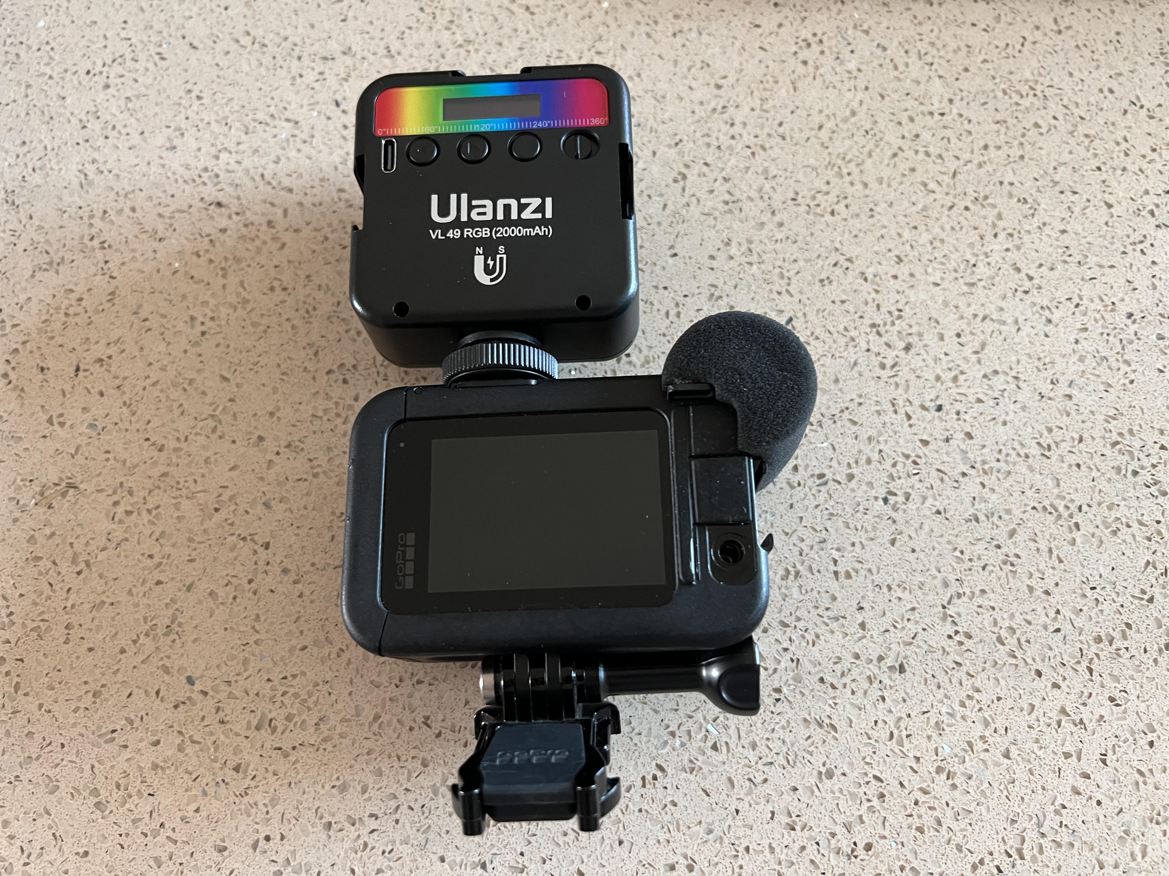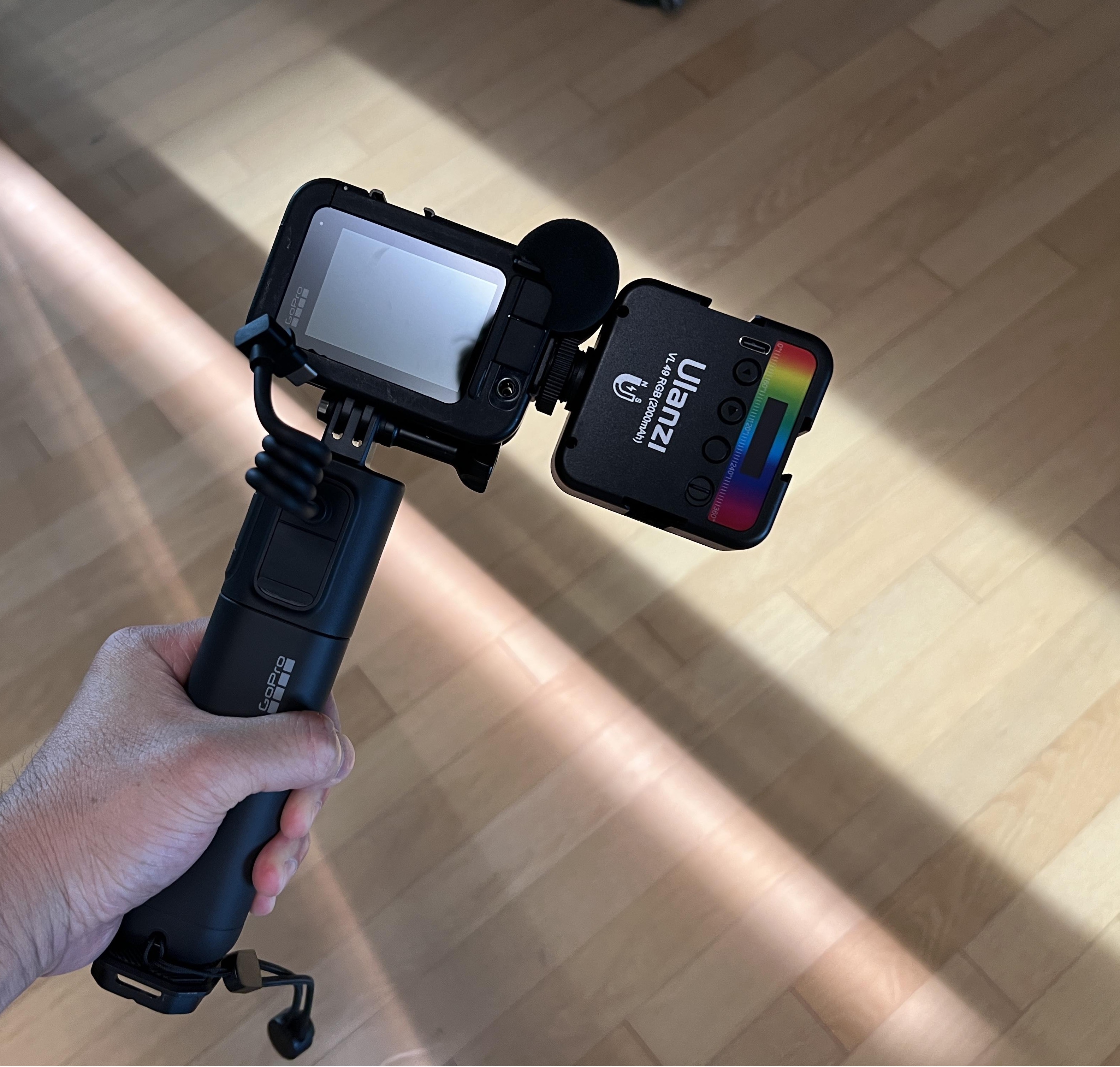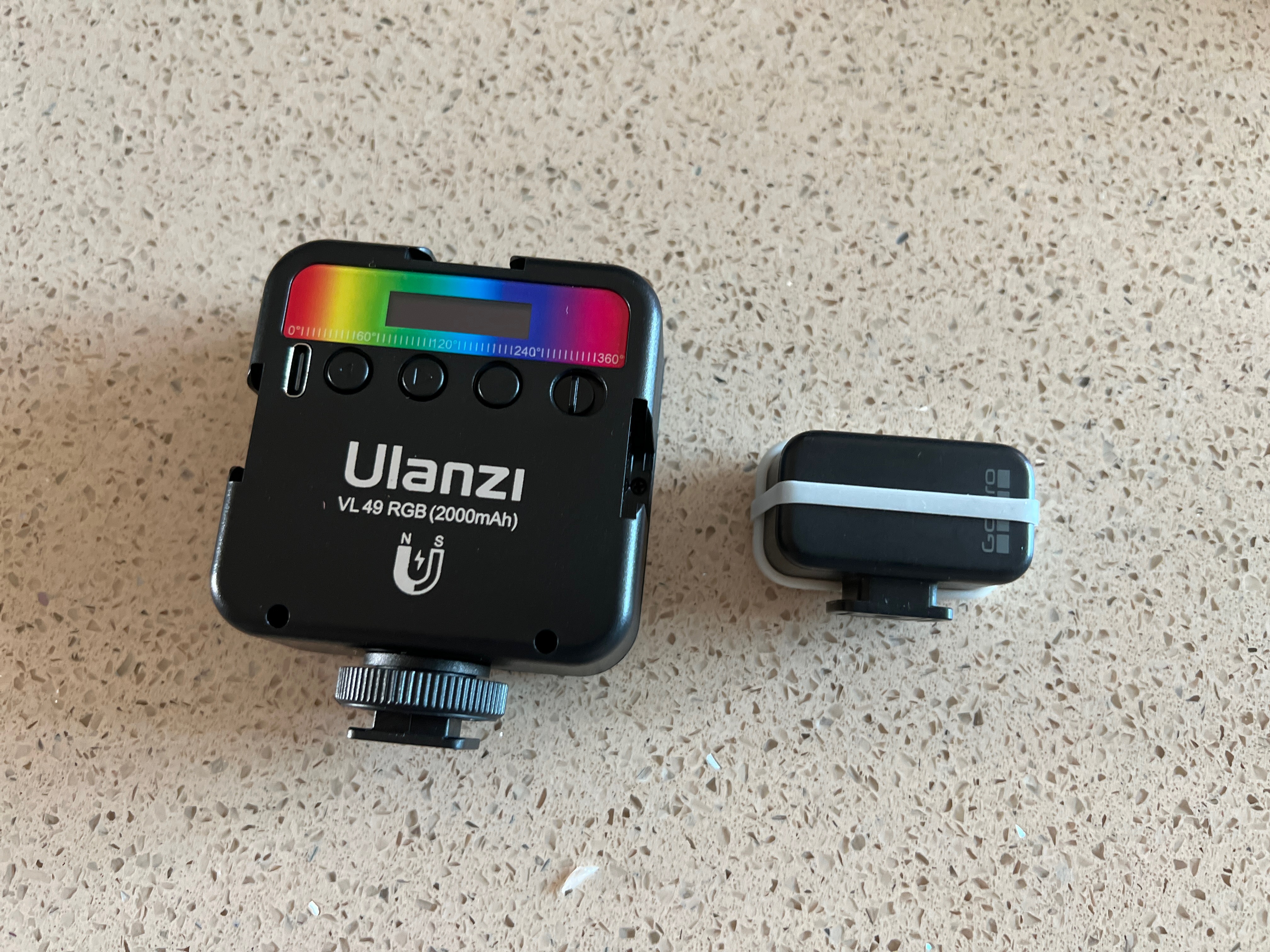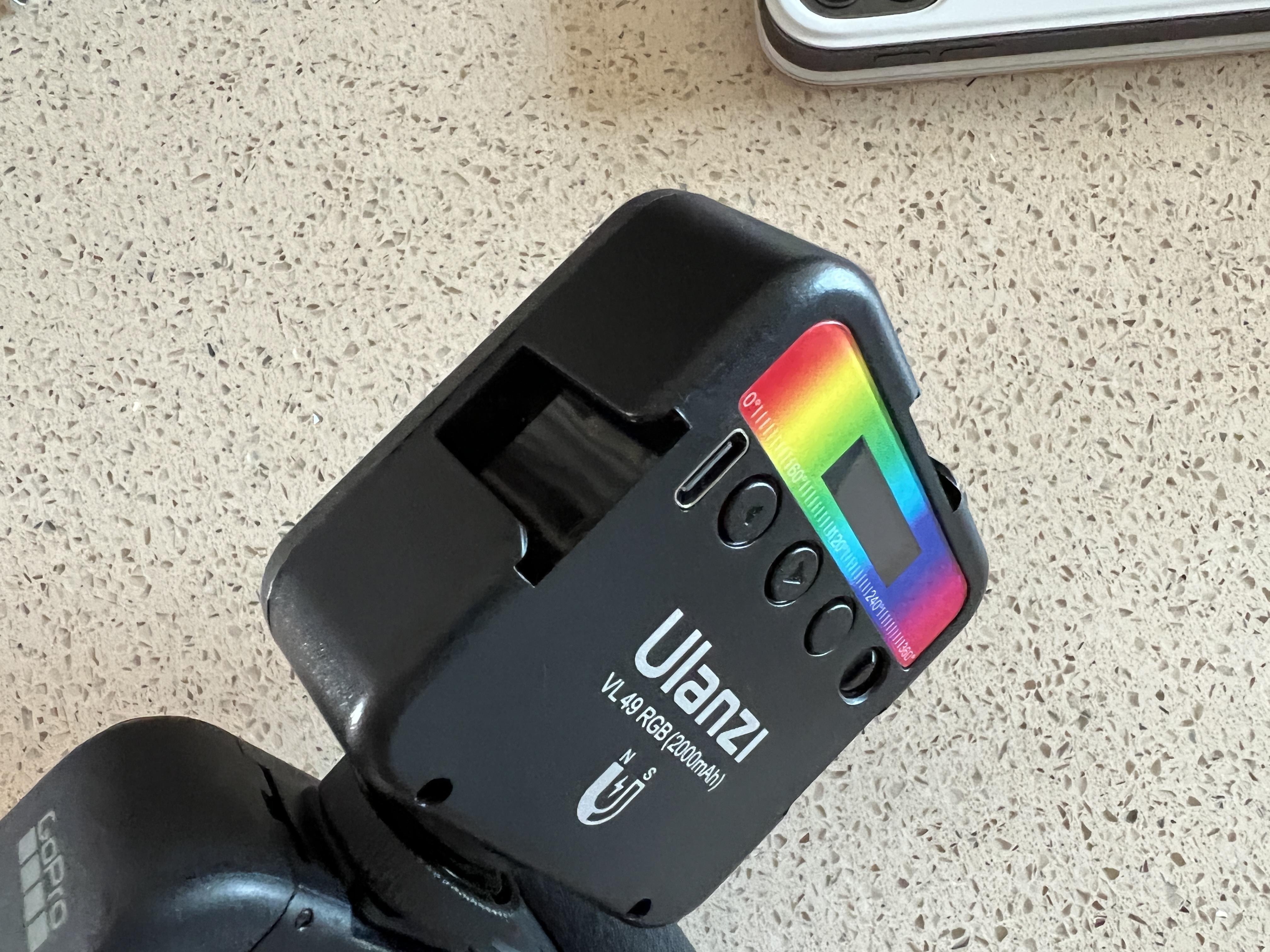 울란지 조명이 사이즈가 작음에도 불구하고 고프로에는 커 보이는 사이즈이다.