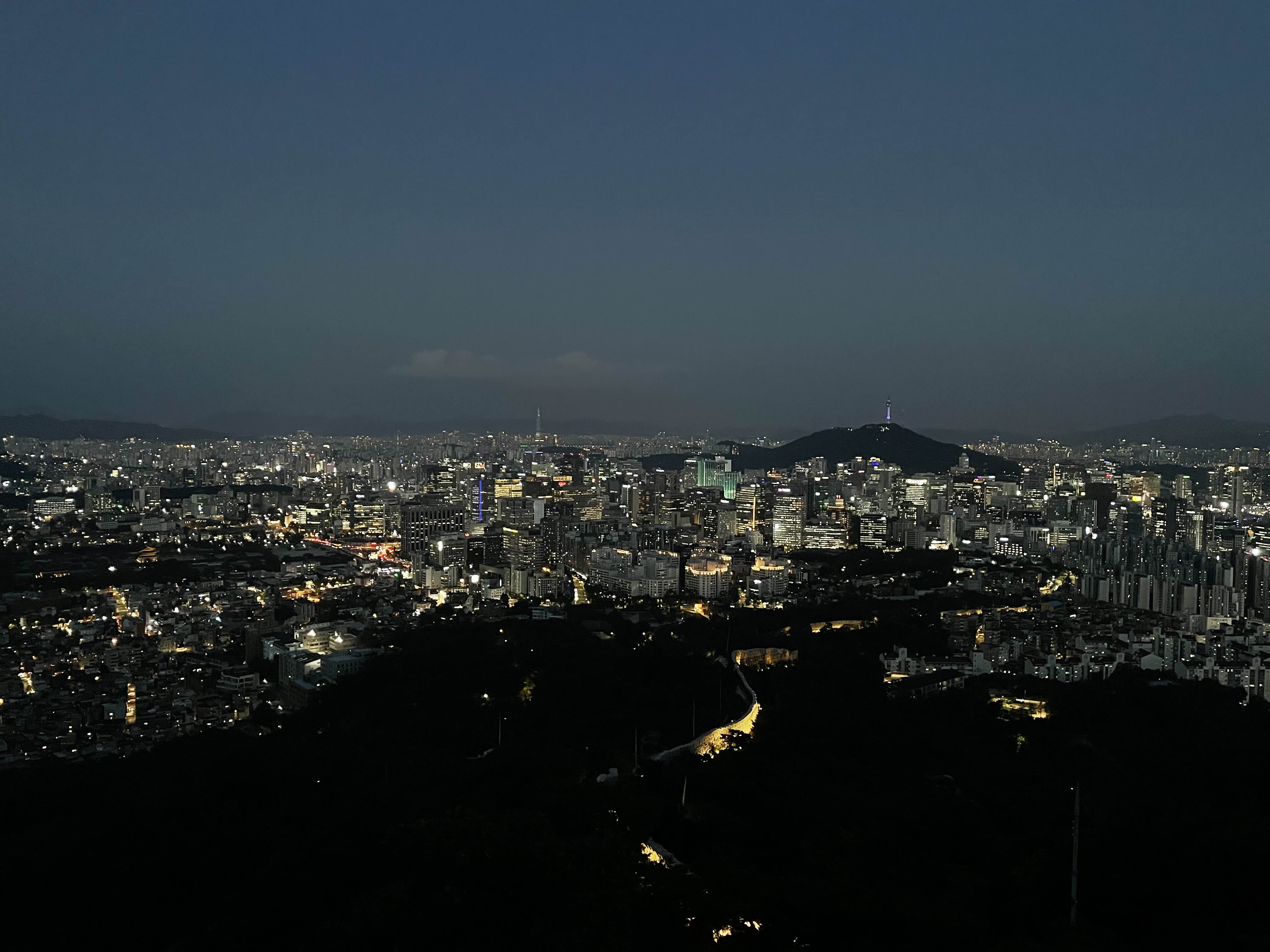 난 저질체력이면서 바다보다 산을 좋아한다. 산을 좋아하는 누구나 그렇듯이 산에서 내려다보는 뻥 뚫린 뷰를 사랑한다. 어렸을때는 체력이 참 좋았었는데, 나이들면서 술마시고, 운동안하고…건강관리에 전혀 신경을 쓰지 않다보니 체력이 바닥났다.ㅠㅠ 늘 산을 오르고 나면 규칙적인 운동에 대한 욕구가 샘솟는다. 잠시 잠깐.ㅎㅎ 서울시내 야경 감상으로 사람들이 추천한 인왕산을 남편이랑 다녀왔다. 30도가 넘는 한여름 날씨에. 오르는데 30분?내려오는데 20분? 난이도는 하. 근처에 집이 있다면 매일 운동 삼아 오를수 있을 정도.