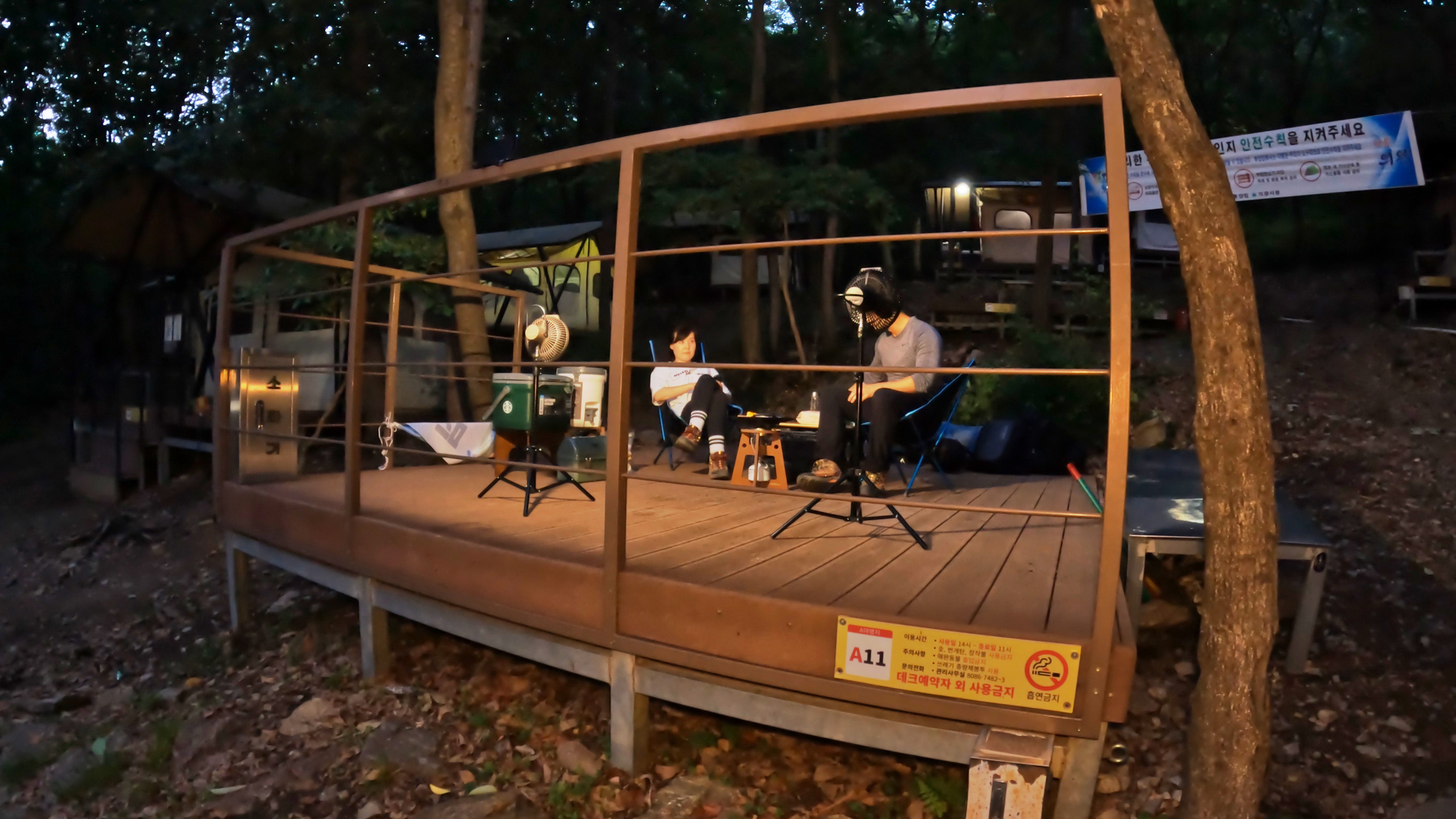 A 야영장에는 고정식 텐트라고 해서 이미 데크사이트에 텐트가 설치되어 있는 사이트가 많이 있는 형태이다. 참고로 고정식 텐트는 주말에 4만원.