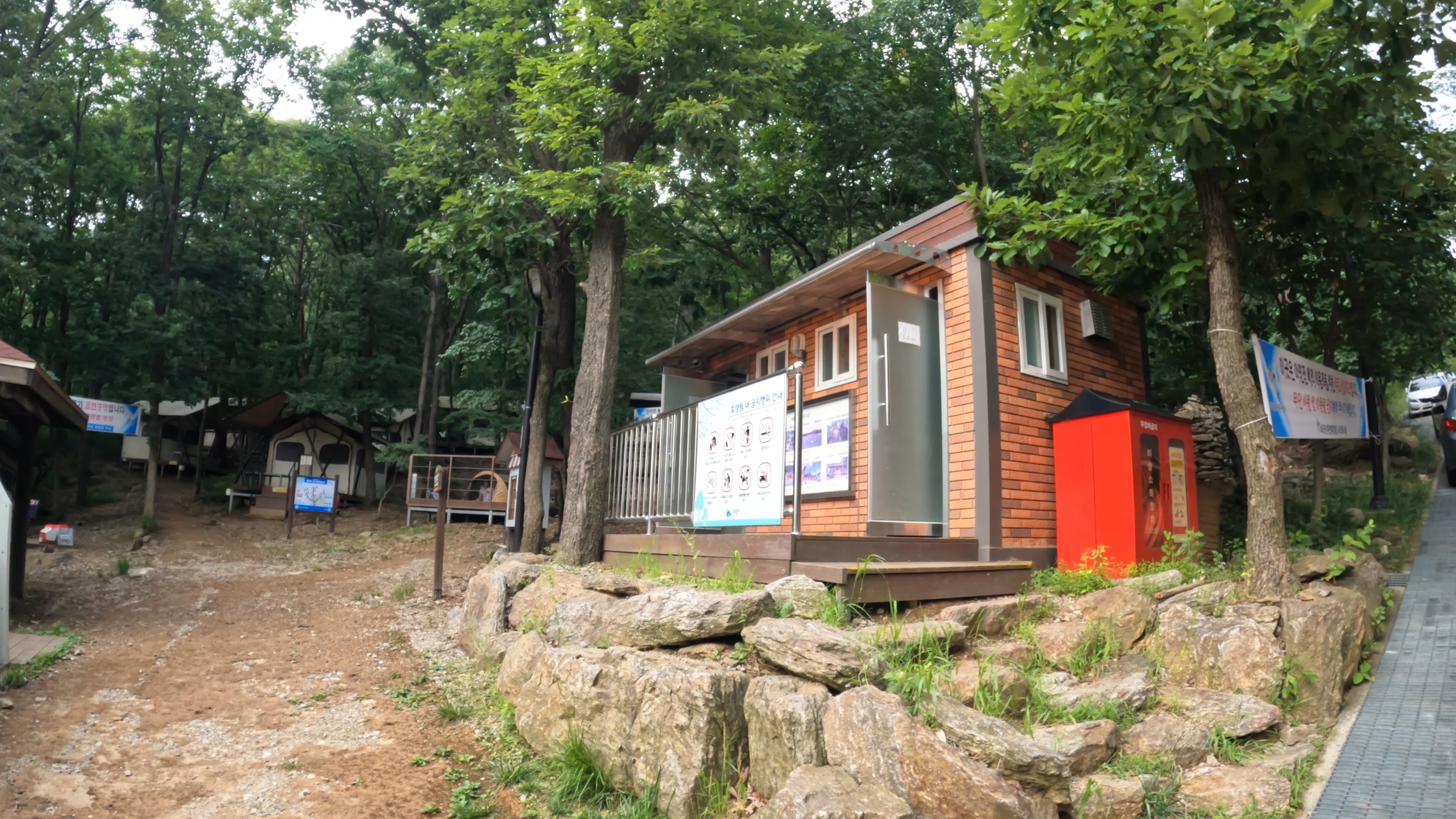 A야영장 입구의 화장실