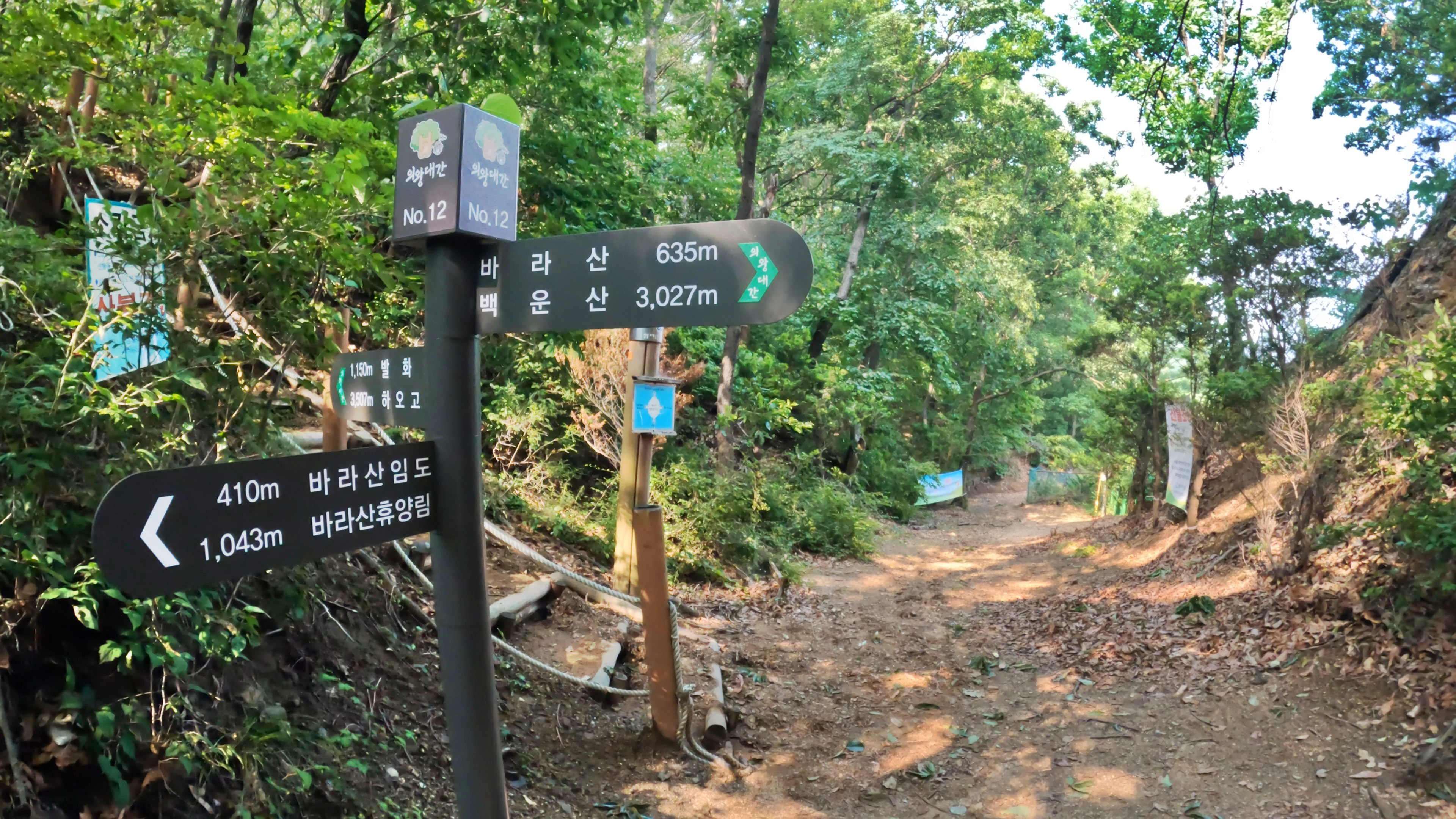다시 나타난 갈림길. 가는 방향에서 우측으로 바라산방향으로 올라가면 정상 방향이다.