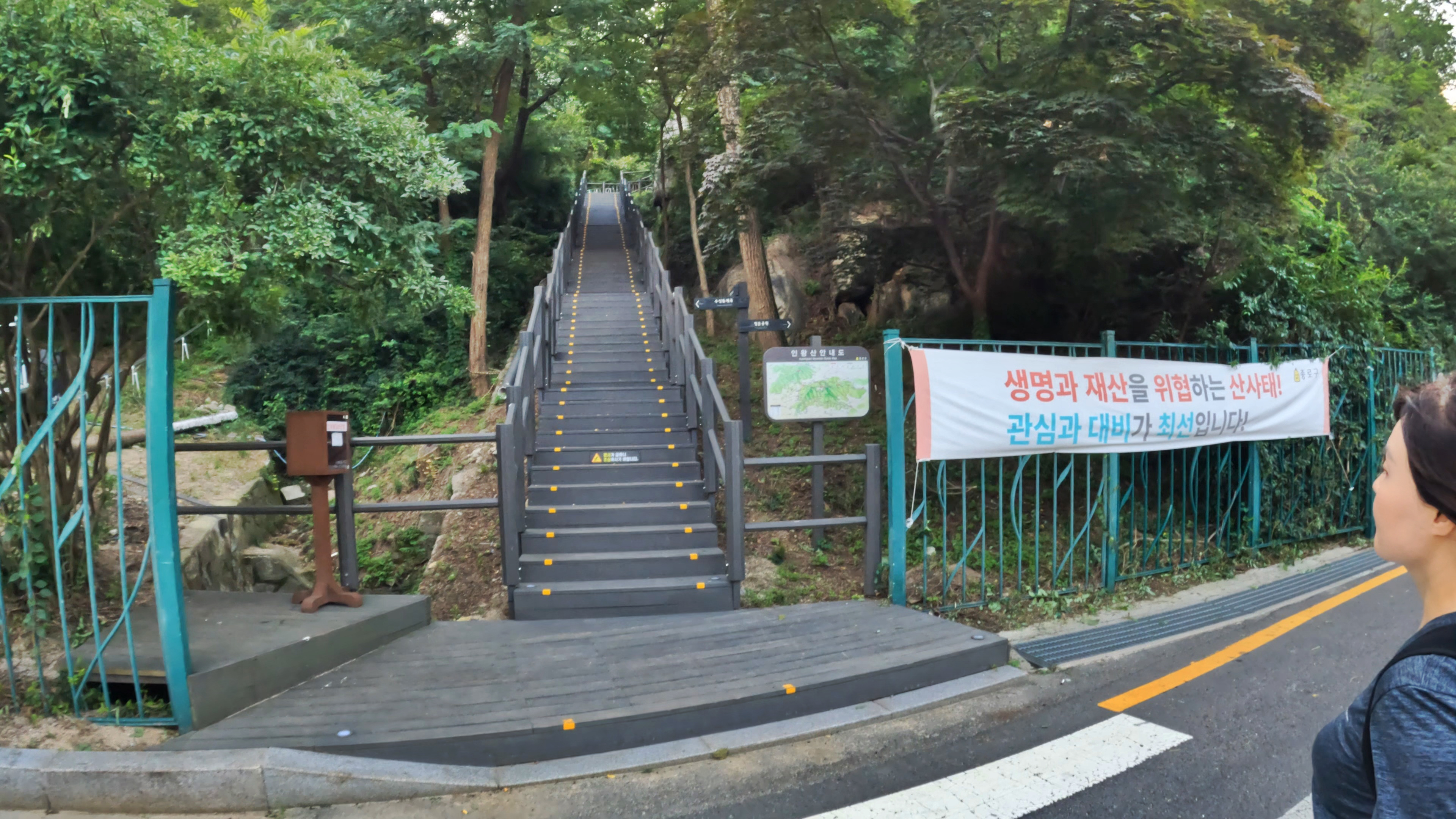 카페를 나와 우측으로 걸어가다 보면 계단으로 된 등산로입구가 나타나는데 이 길을 오르면 인왕산 정상에 오를 수 있다.