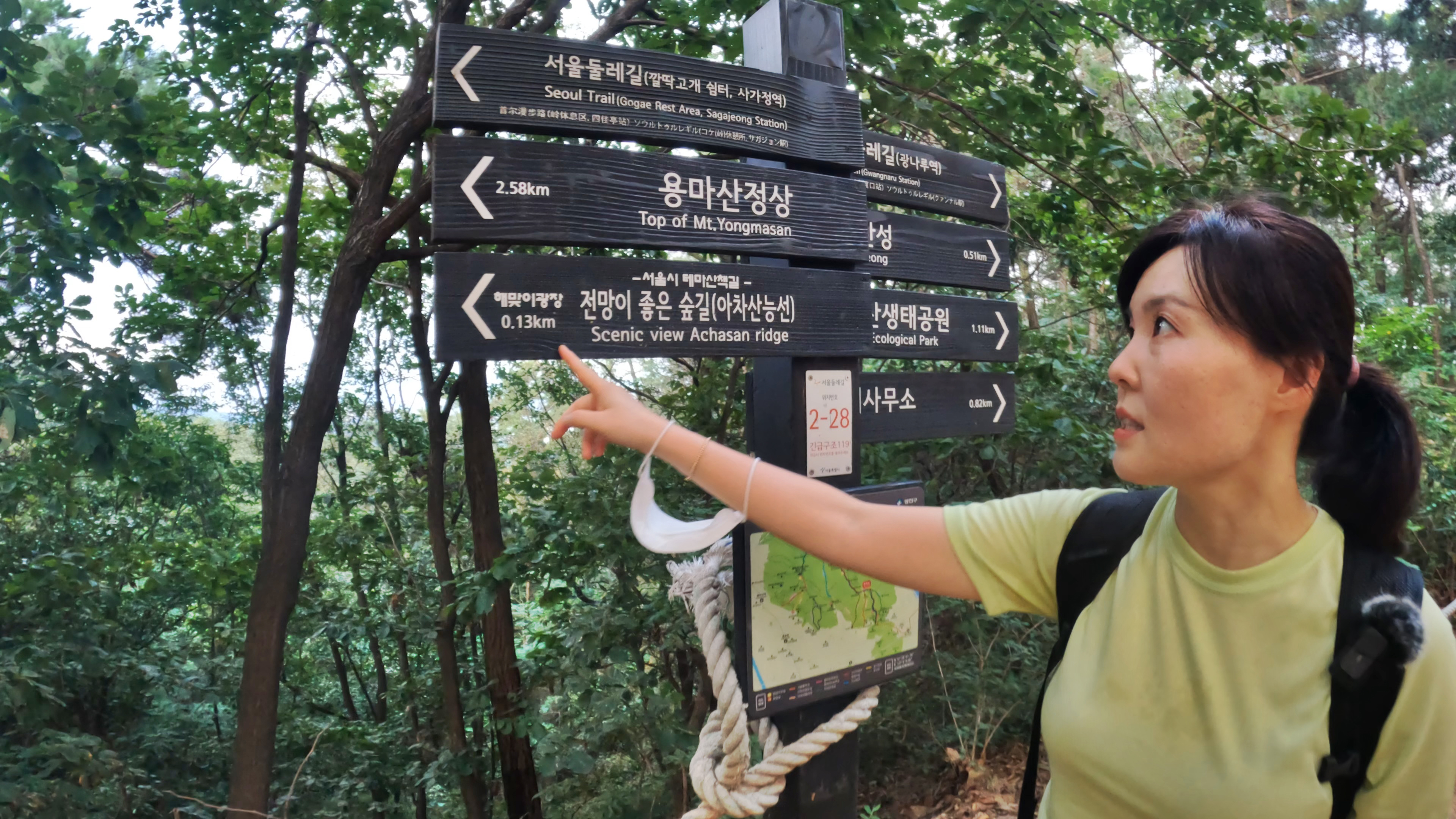 잠시 휴식을 취하고, 아차산 정상으로 향한다. 표지판으로는 해맞이 광장 쪽.