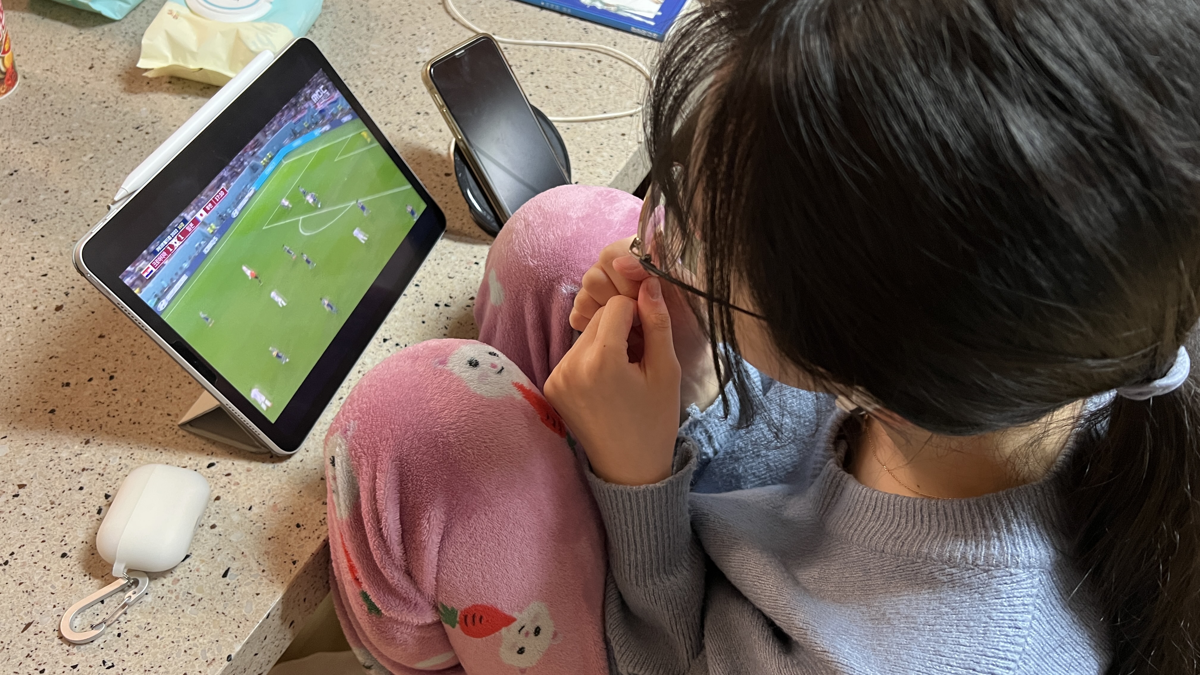 카타르 월드컵 축구경기를 보는 딸의 모습이 너무도 신기하다.