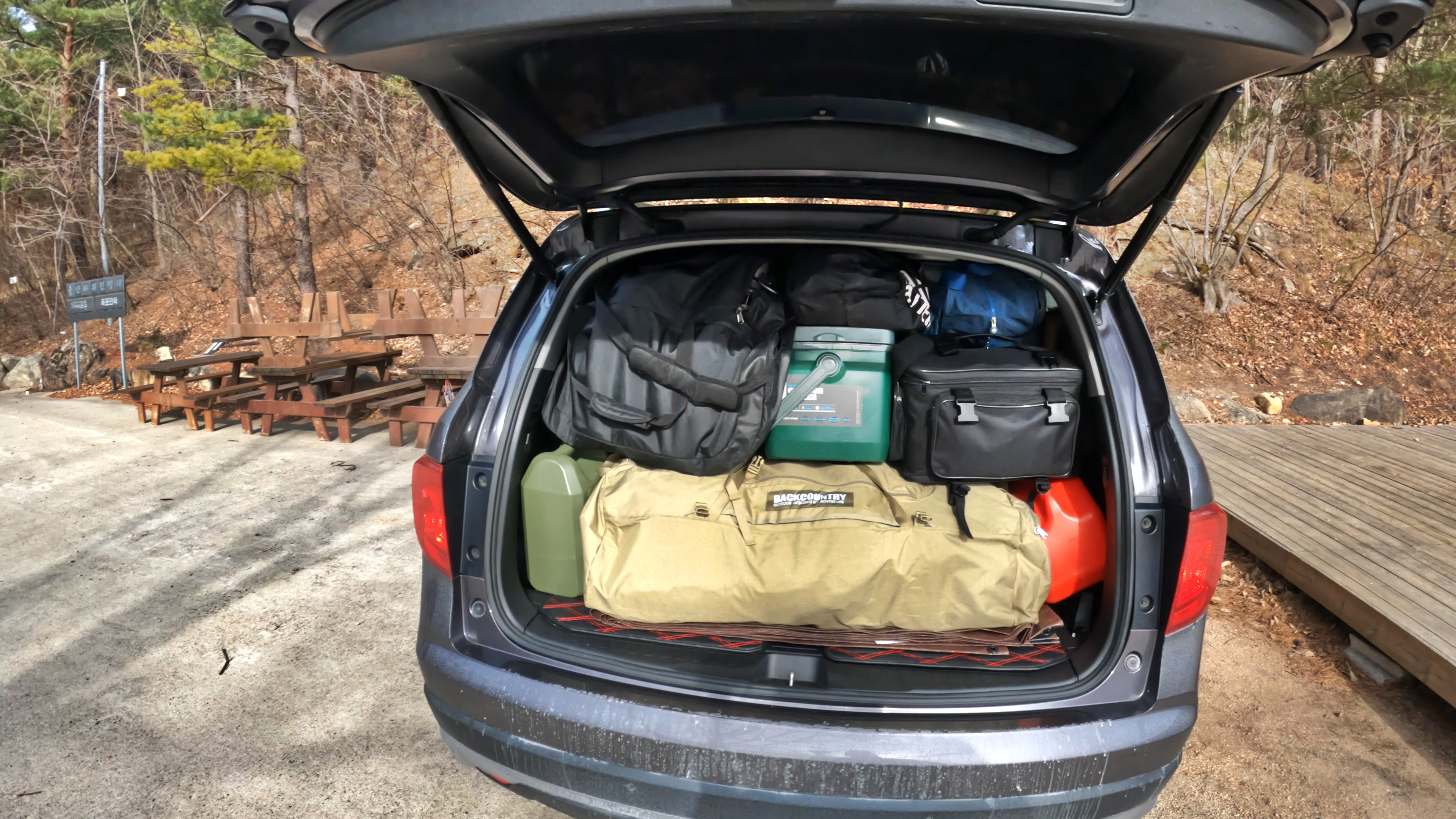 라면 뚝딱 하고 바로 철수. 트렁크 테트리스 한 결과. 빈 자리가 안 보인다.