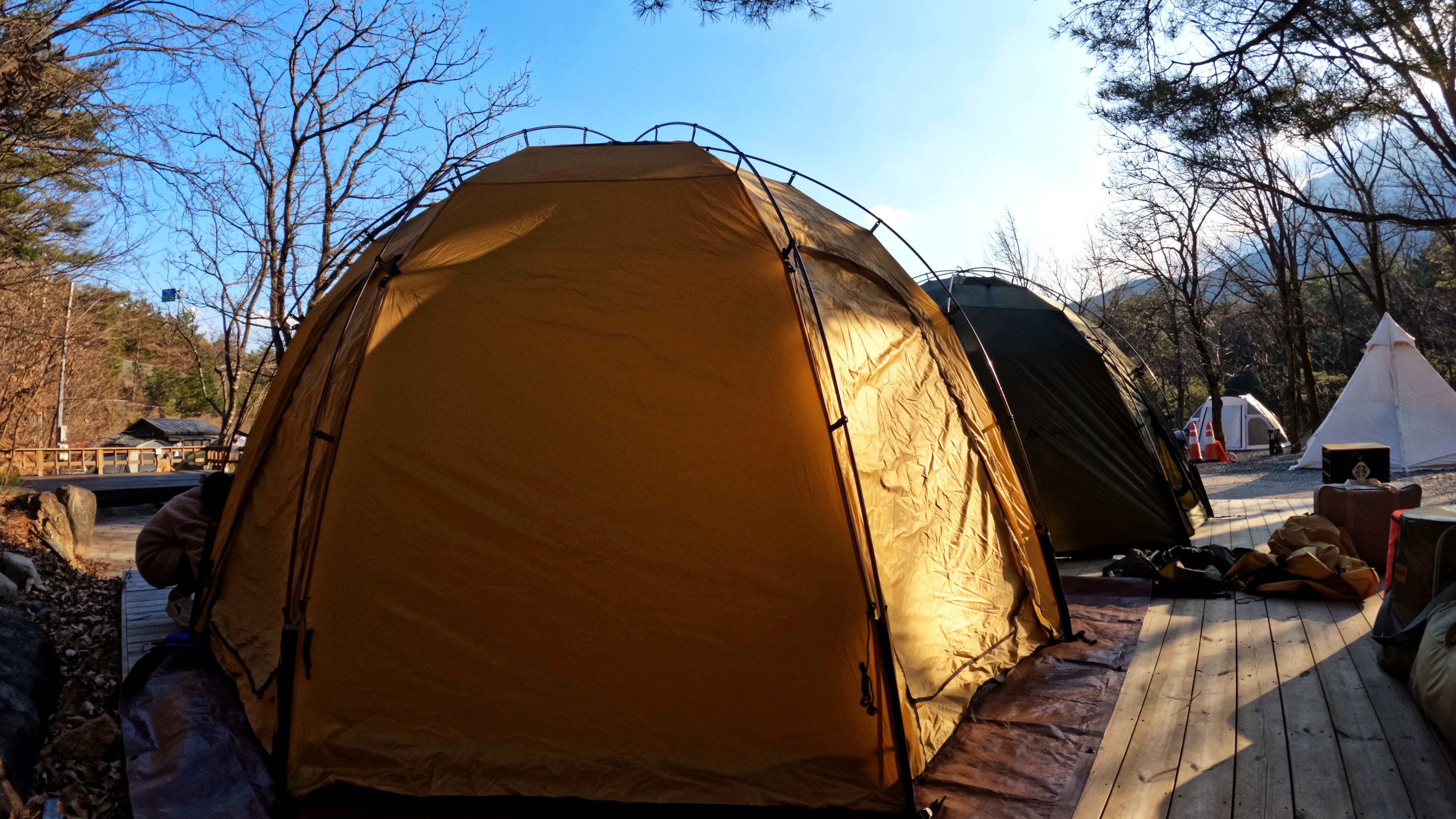 쌍 이그니스L 쉘터로 구축한 사이트. 거추장 스러운 리빙쉘이 꺼려져서 장만을 안 하고 있는데, 이렇게 쉘터 2개면 리빙쉘을 대신할 만 하다. 하나는 거실, 하나는 침실.