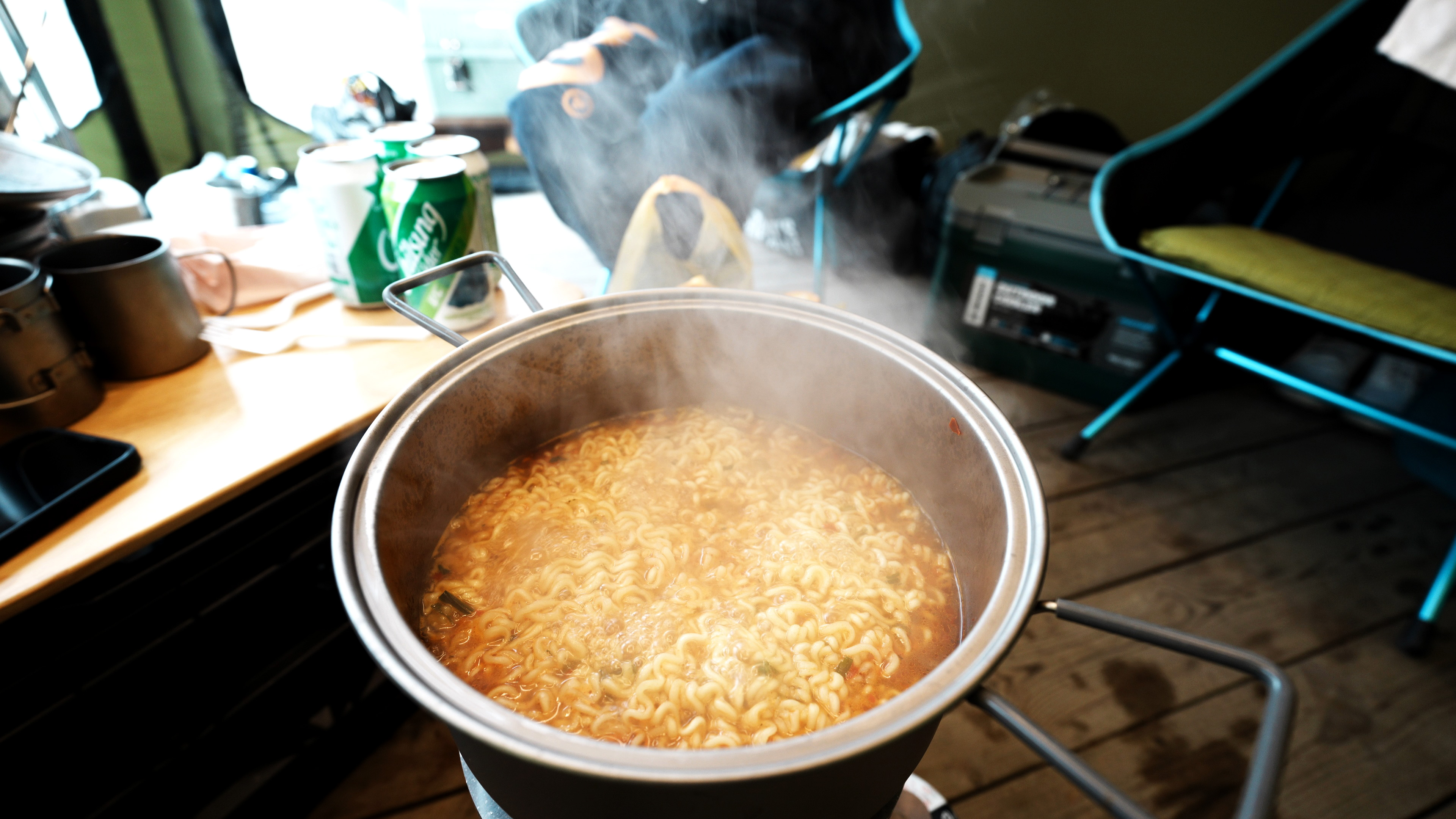모닝 라면. 여느 캠퍼들 처럼 근사한 아침은 준비하기 귀찮고 그냥 간편하게 라면으로 때운다.