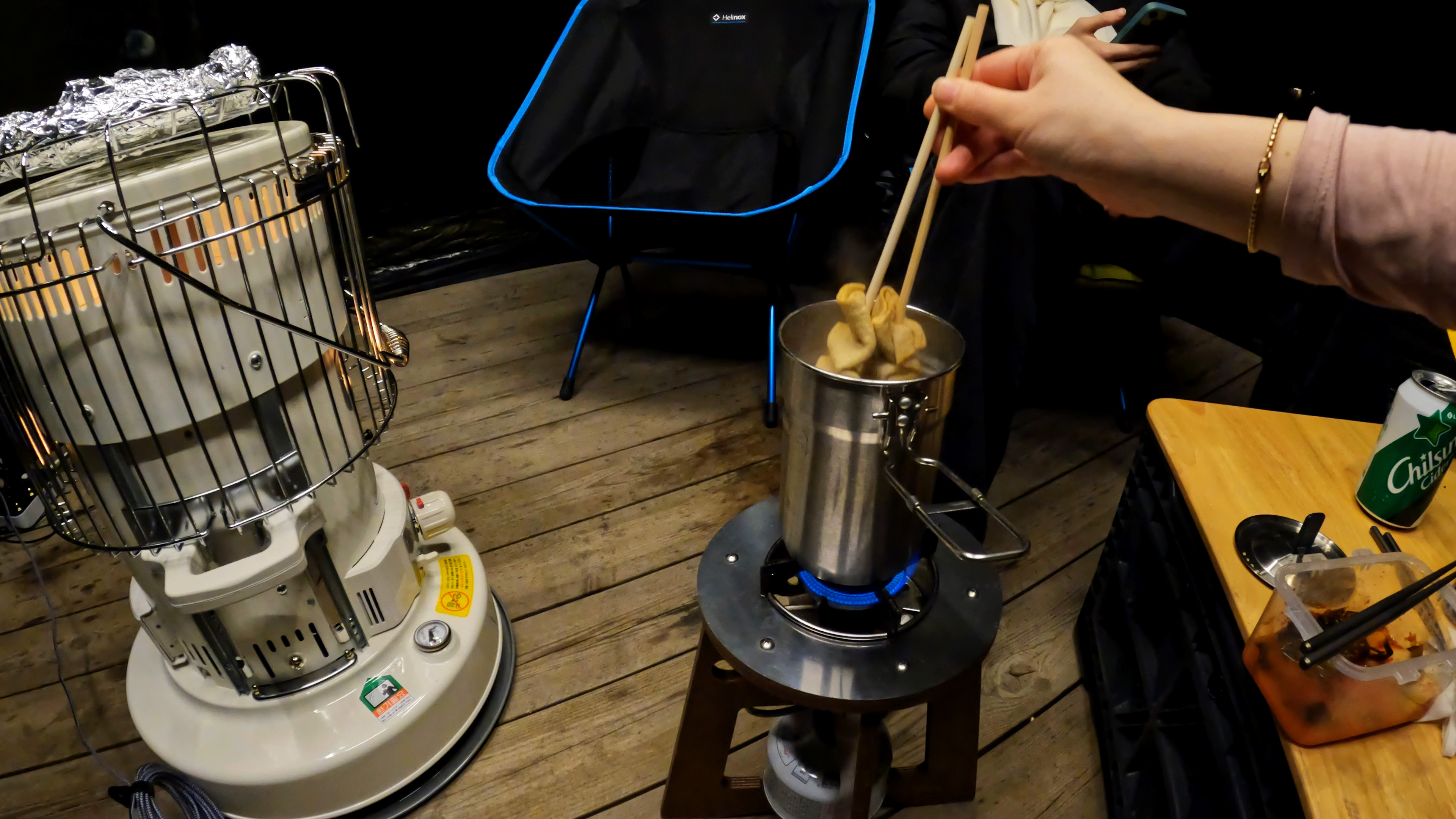 저녁식사 후엔 꼬치어묵. 동계 캠핑에서 빼먹을 수 없는 메뉴다.