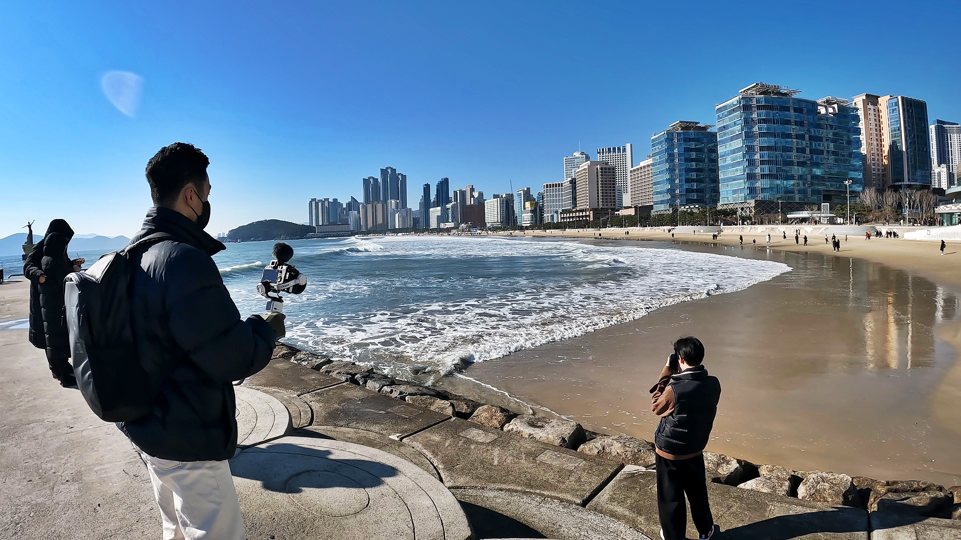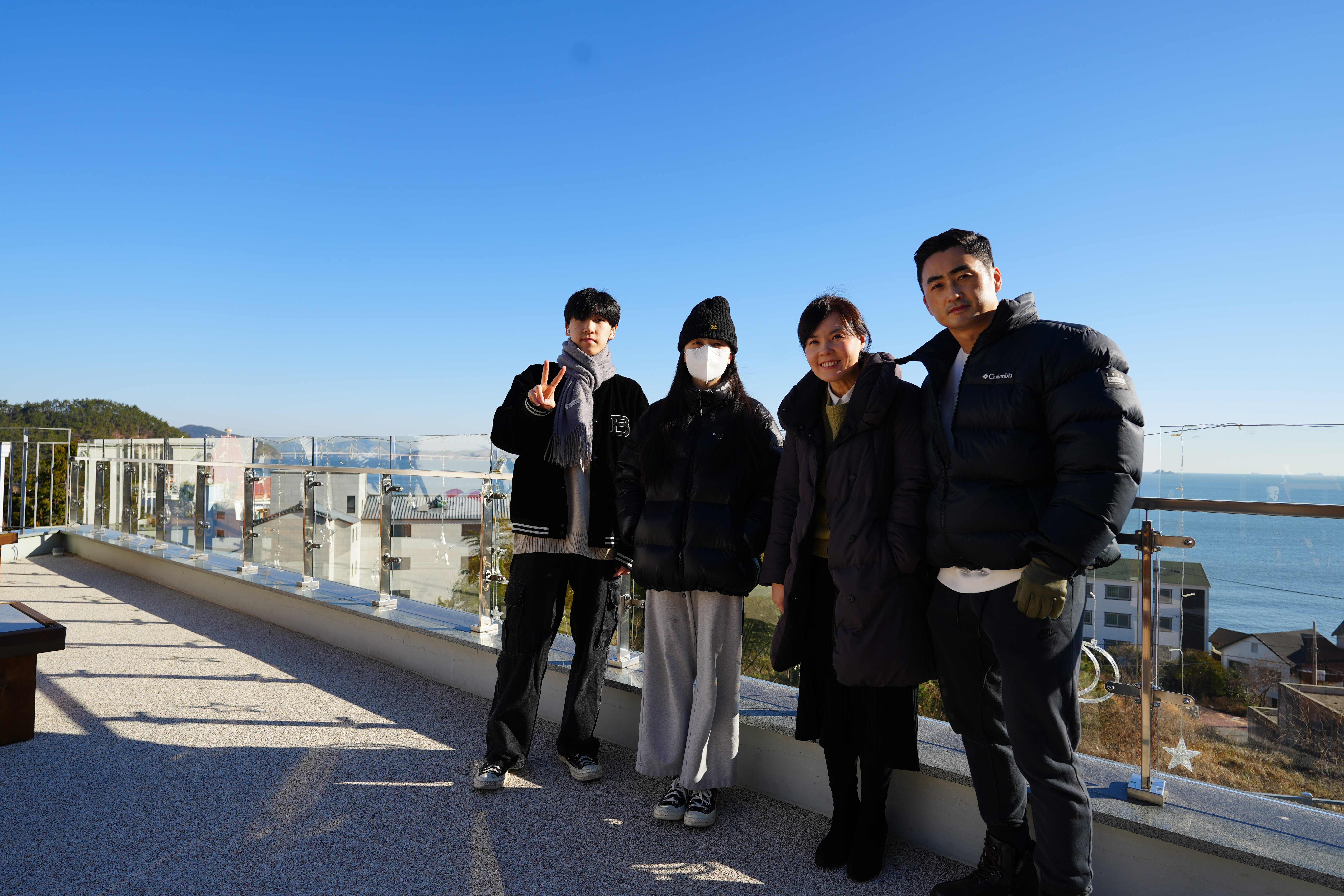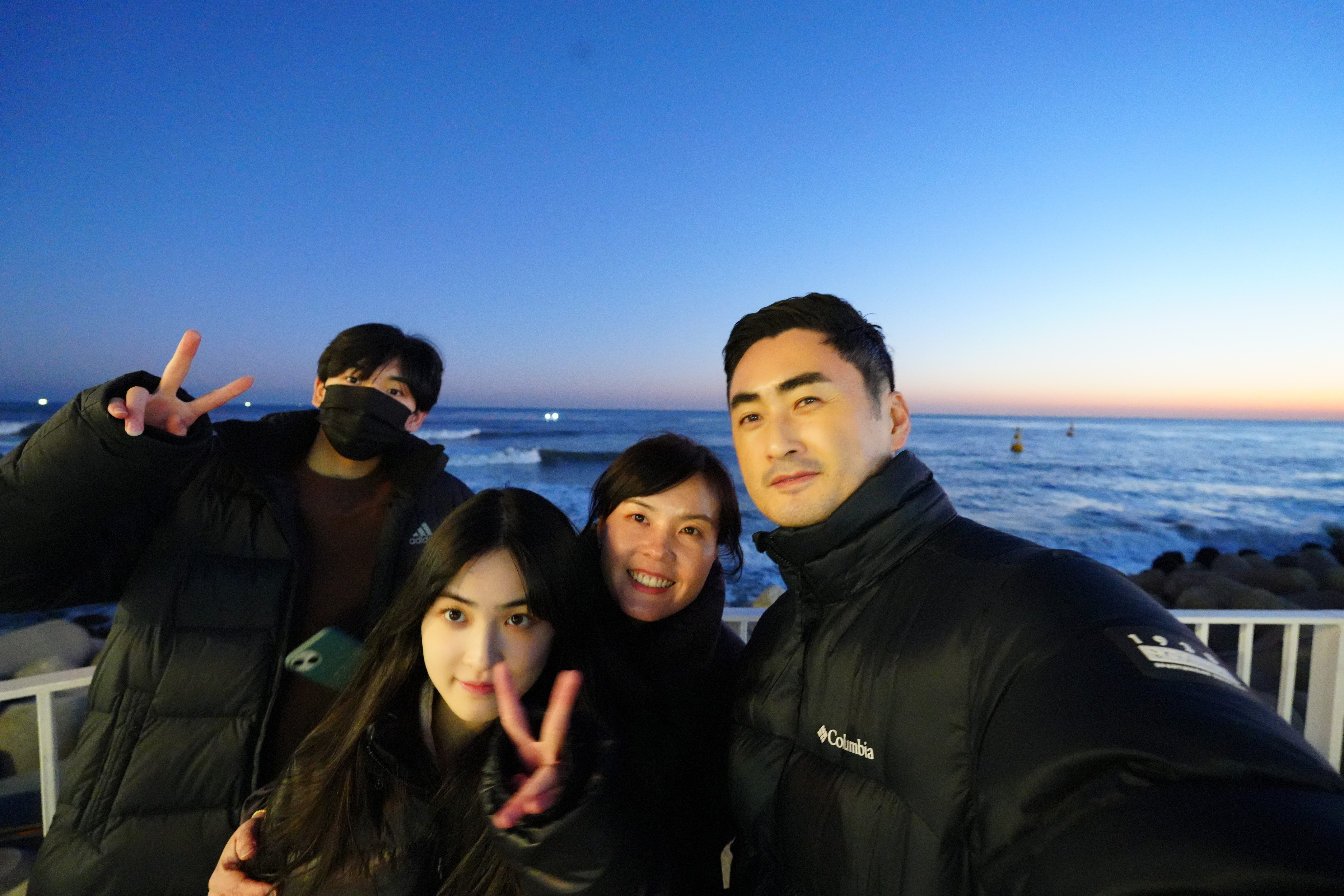 카페를 나와서 오랜만에 본 바닷가를 배경으로 SNS용 사진을 찍어준다.