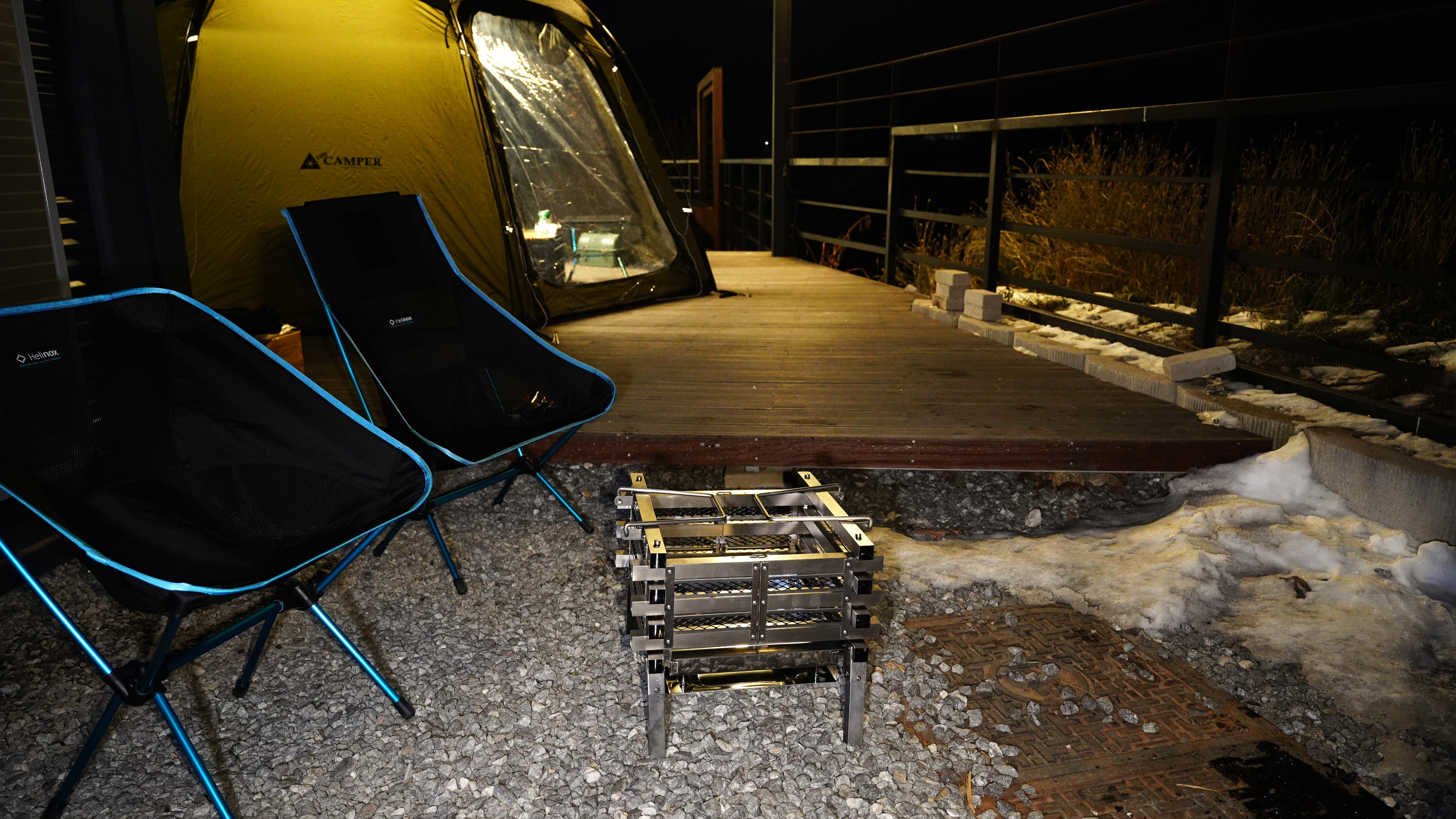 3년간 캠핑하면서 불명을 한 번도 안 해봤던 터라, 이번에 가족캠핑을 염두에 두고 야심 차게 준비했던 화로대인데, 결국 부부 둘이서 조촐하게 즐기게 된 불멍이다.