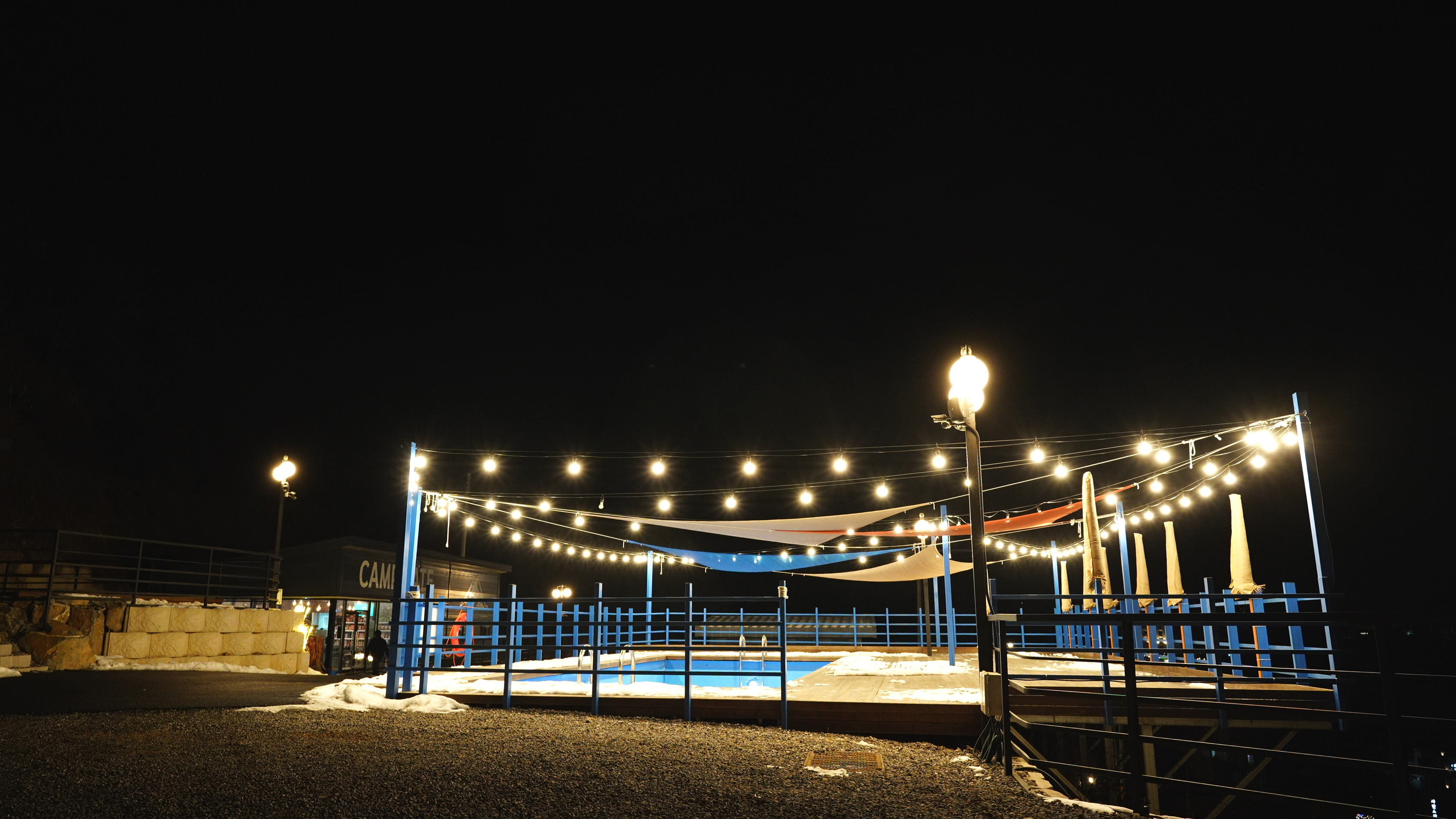 캠핑장 한 켠에는 여름에 이용하기 좋은 수영장도 있고