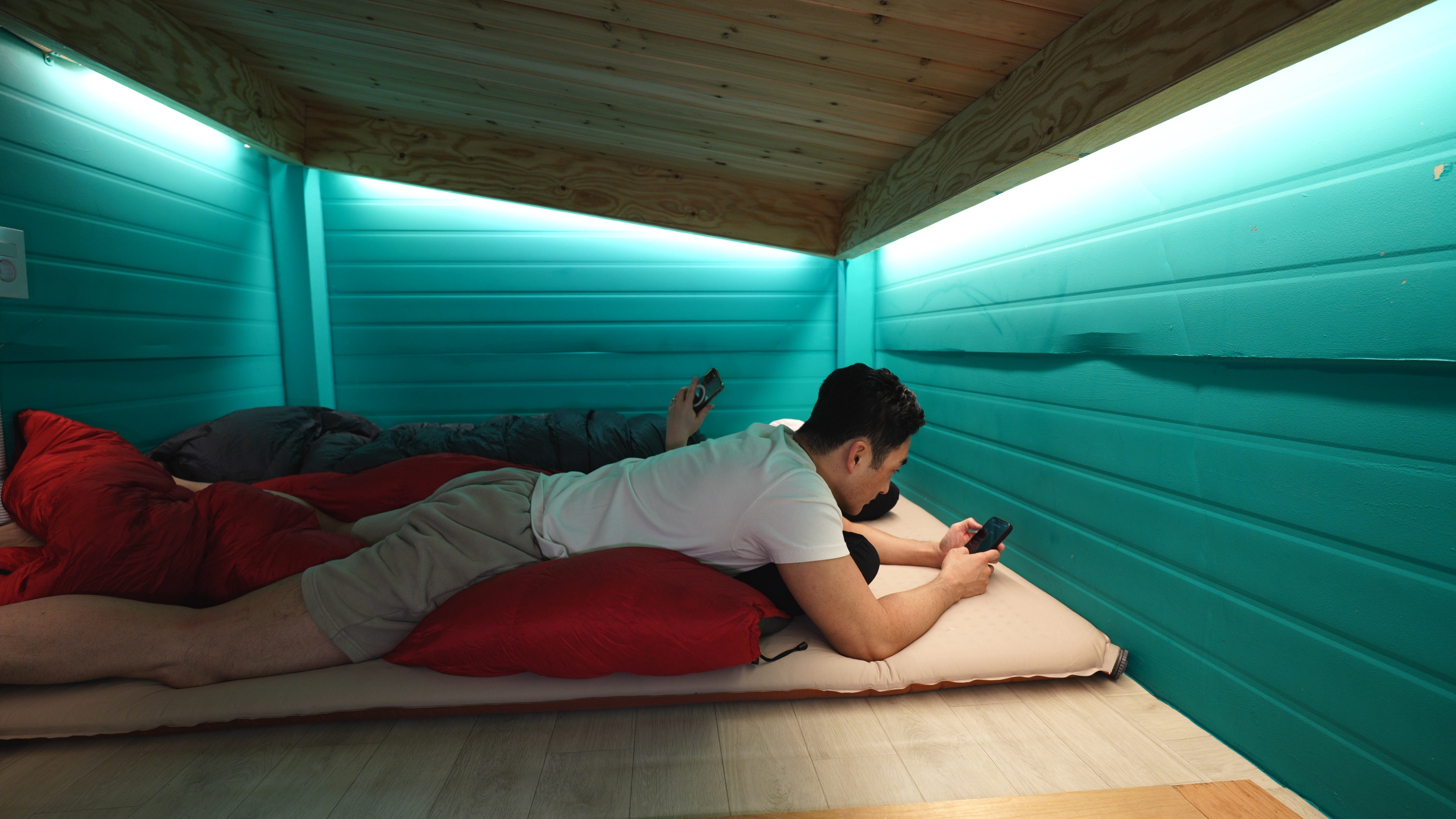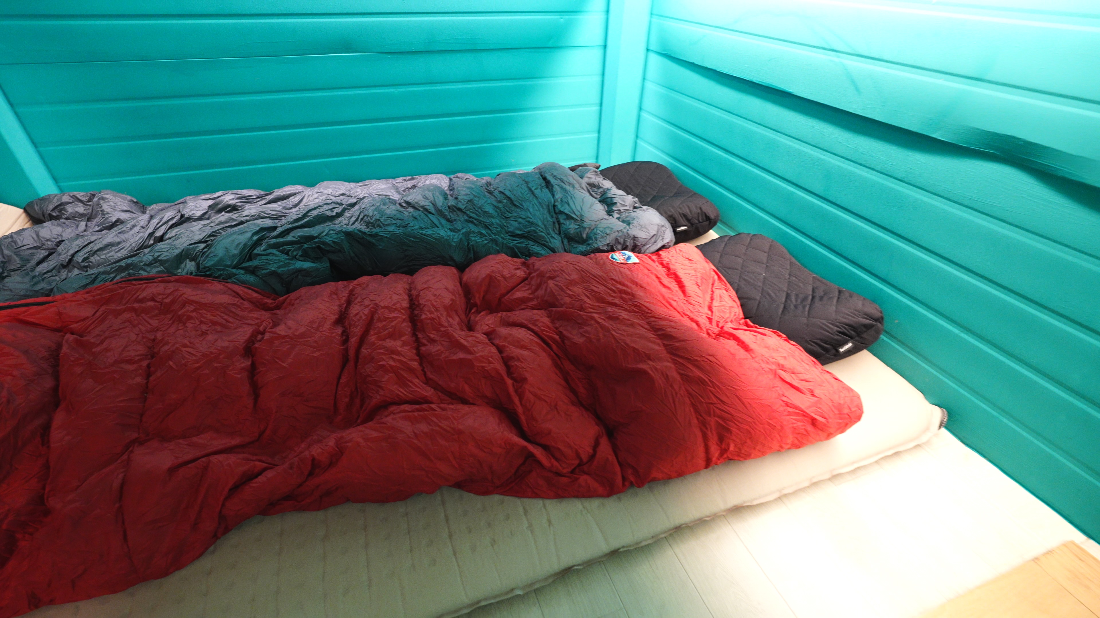 다락방에 세팅한 침실. 네이처하이크 2인용 매트리스(6cm)와 3 계절 침낭 2개로 침실 세팅 끝
