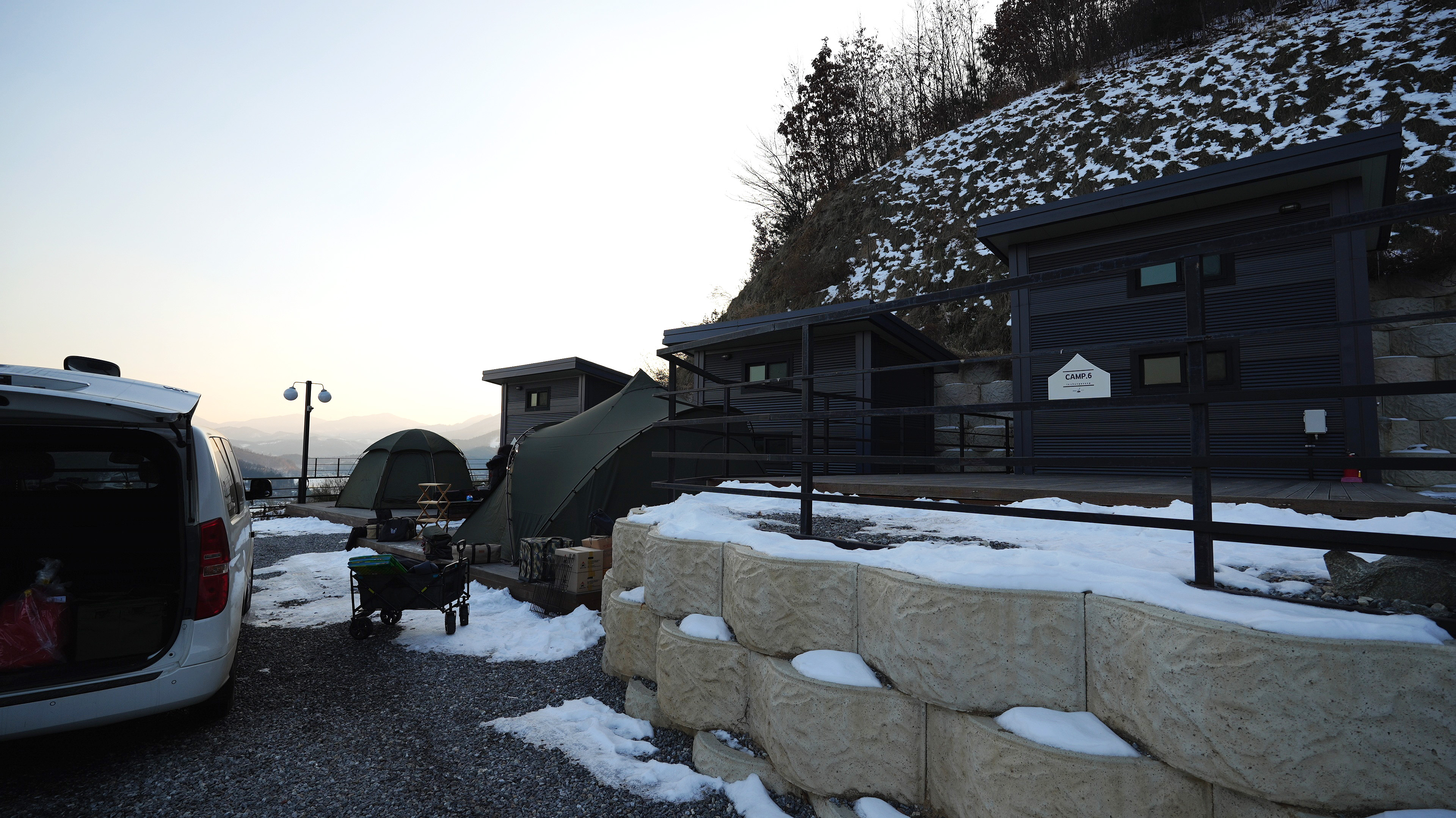 봄/여름/가을 캠핑시에는 주변을 돌아다니면서 자연을 즐길수 있는 캠핑을 많이 하지만, 동계에는 사이트에 머무는 경우가 많기 때문에 선택의 주요 요소가 사이트에서 바라본 뷰와 풍경이다.
