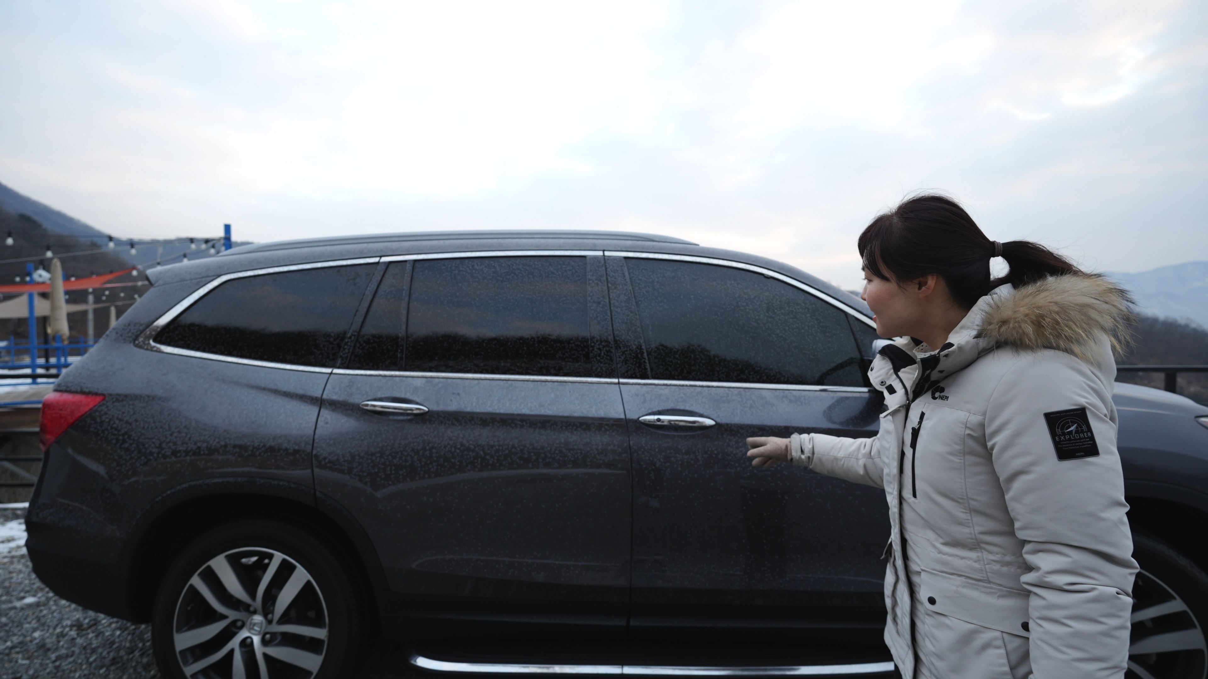 아침에 되고 보니, 텐트며 차에도 서리가 잔뜩 껴 있다.