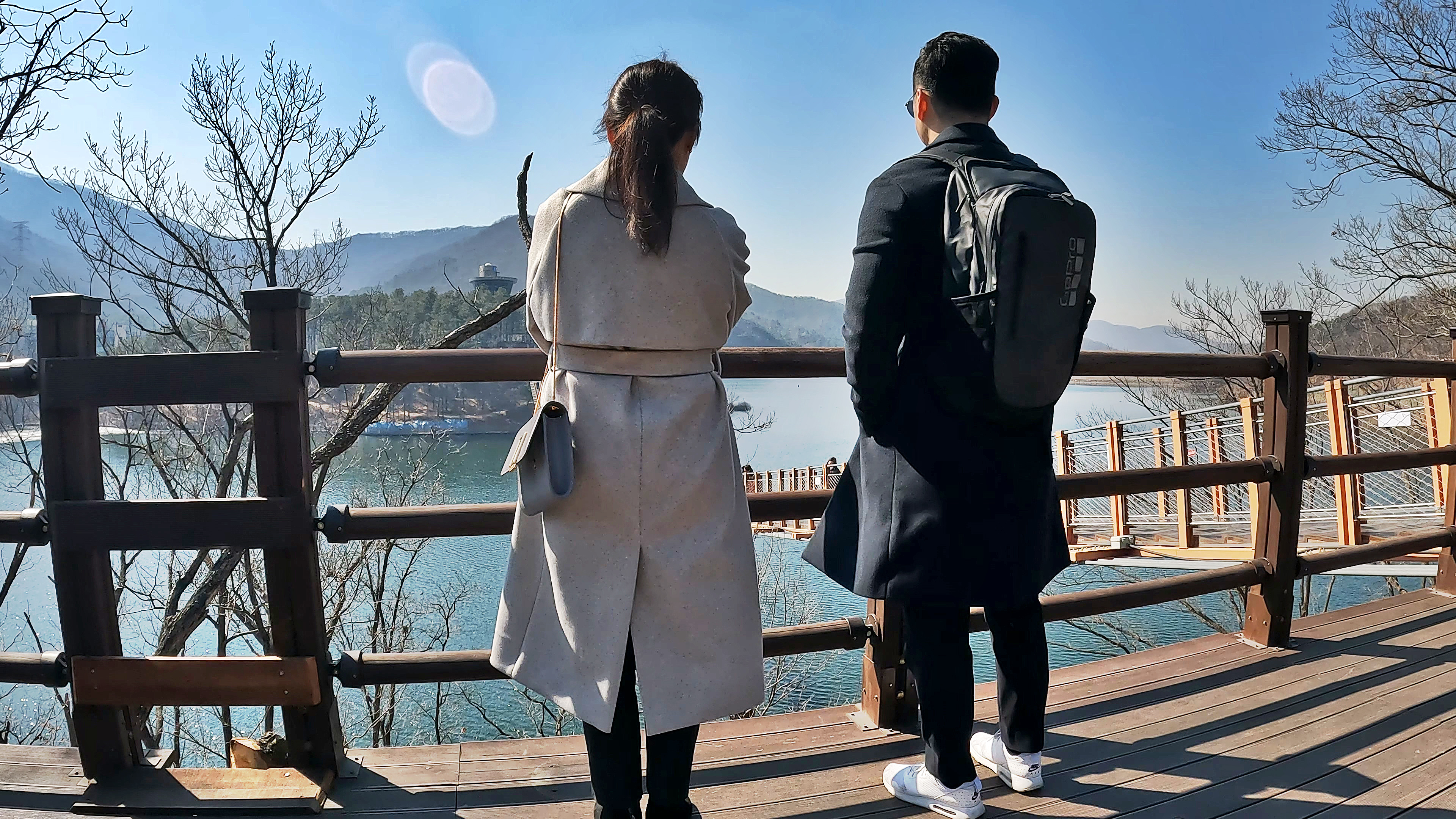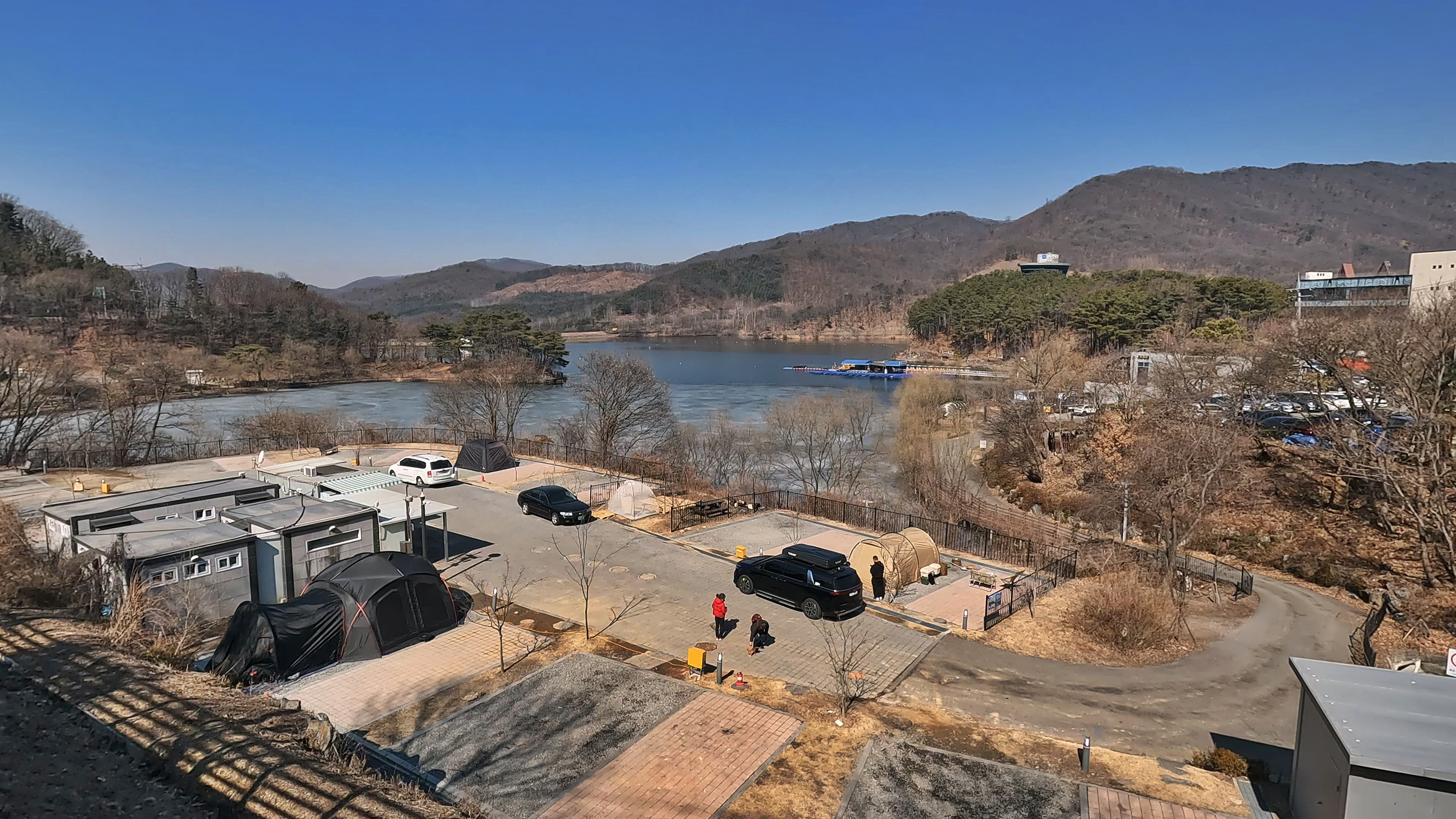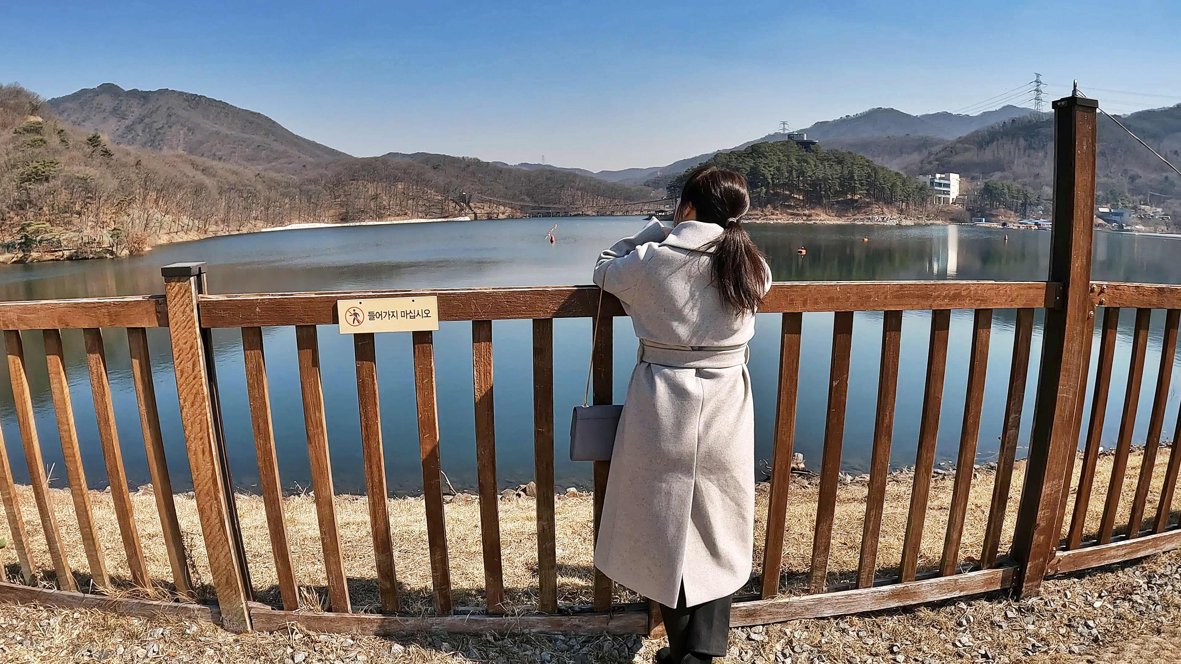 '이 풍경 보면서 캠핑하면 너무 좋겠다' 하는 와이프. 산/바다/호수 등으로 캠핑을 다녀보니, 호수뷰 캠핑이 생각보다 우리 부부에게는 좋은 느낌을 줬던 것 같다.