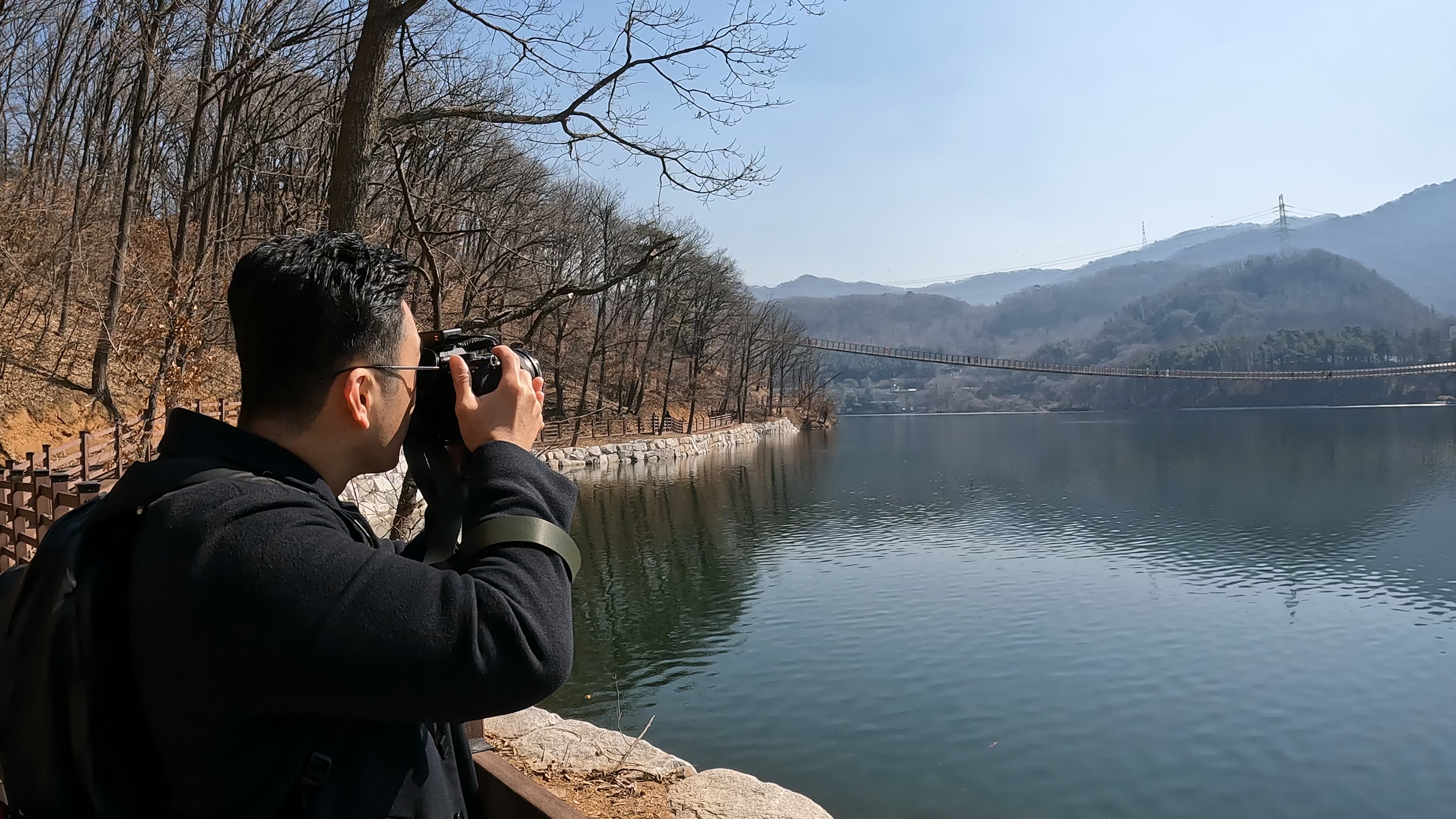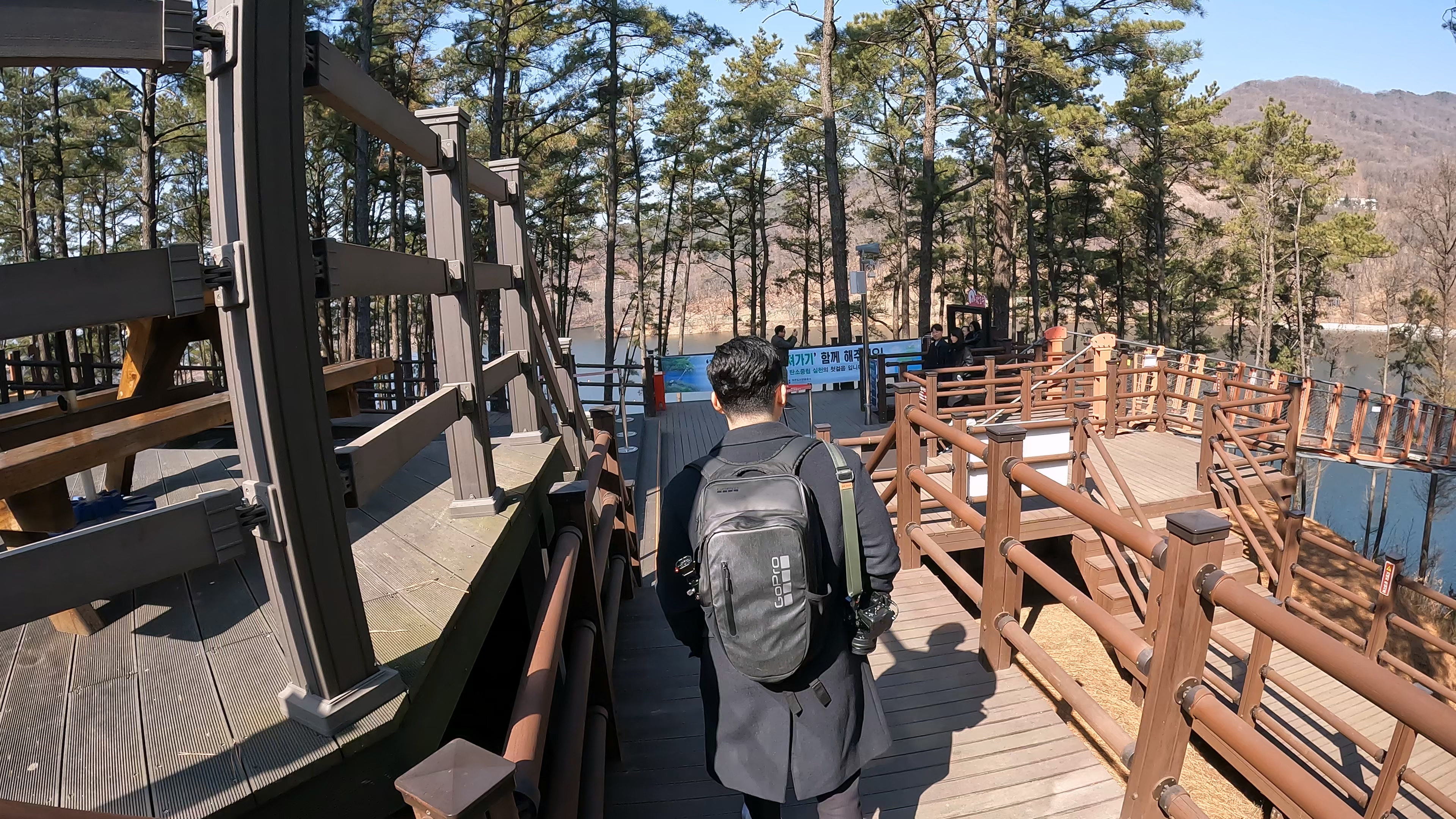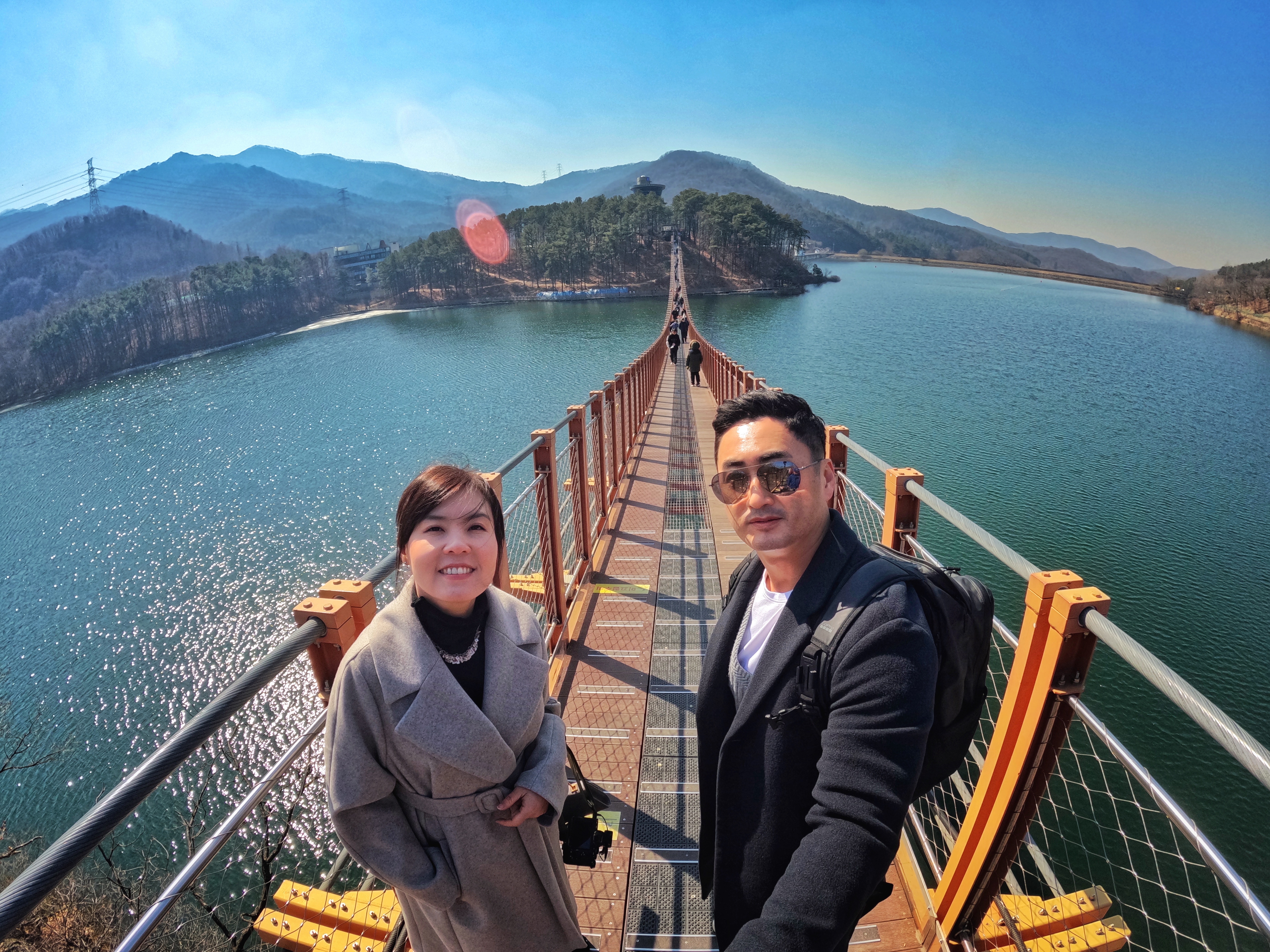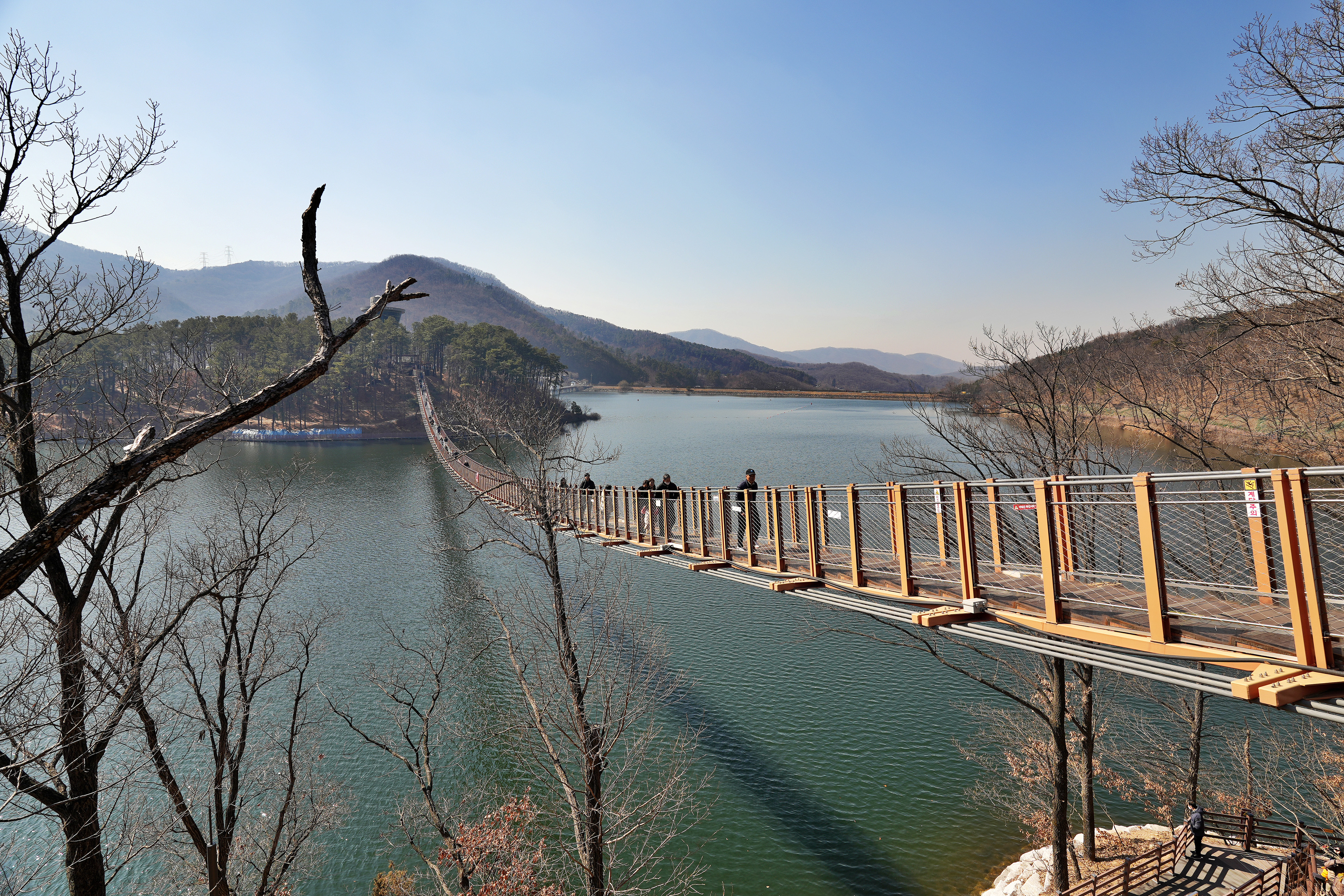 원주 소금강 출렁다리는 꽤나 높은 계곡을 가로지르는 느낌이었다면 이 곳은 잔잔한 호수 위를 지나가는 코스라, 경치는 이 곳이 훨씬 나아 보였다.