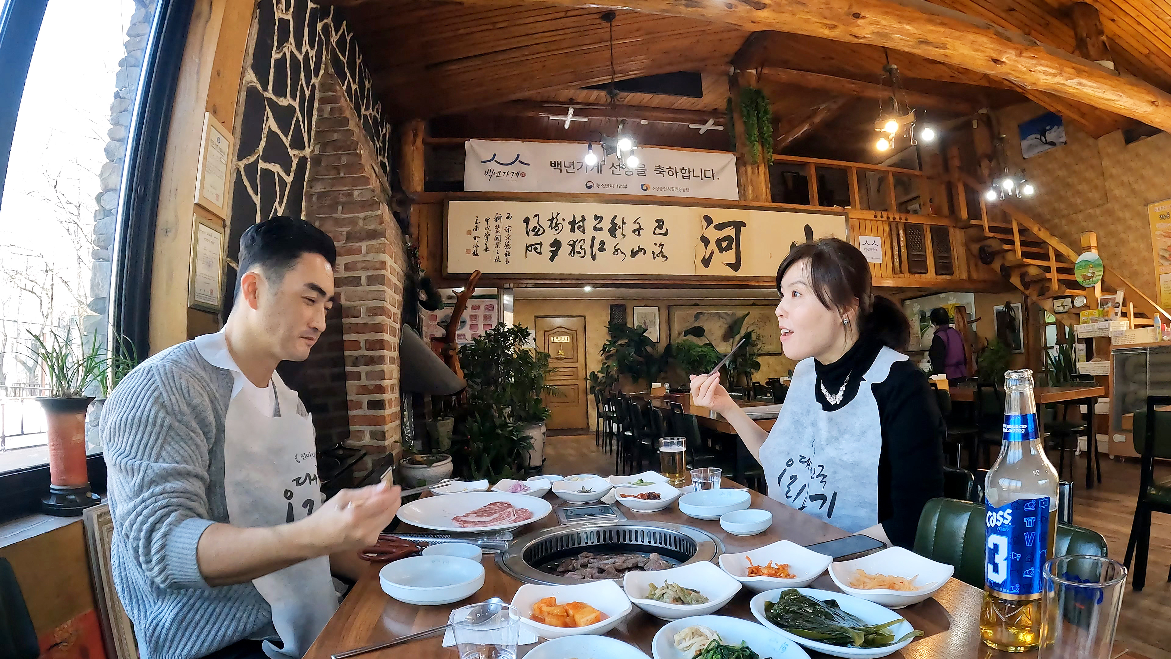 마장호수 둘레길 트레킹을 마치고, 식사를 하기 위해 찾은 음식점 '산하' 평일 낮이라 사람이 아무도 없었고, 전세 낸 느낌으로 한적하게 꽃등심 2인분으로 점심을 해결한다.