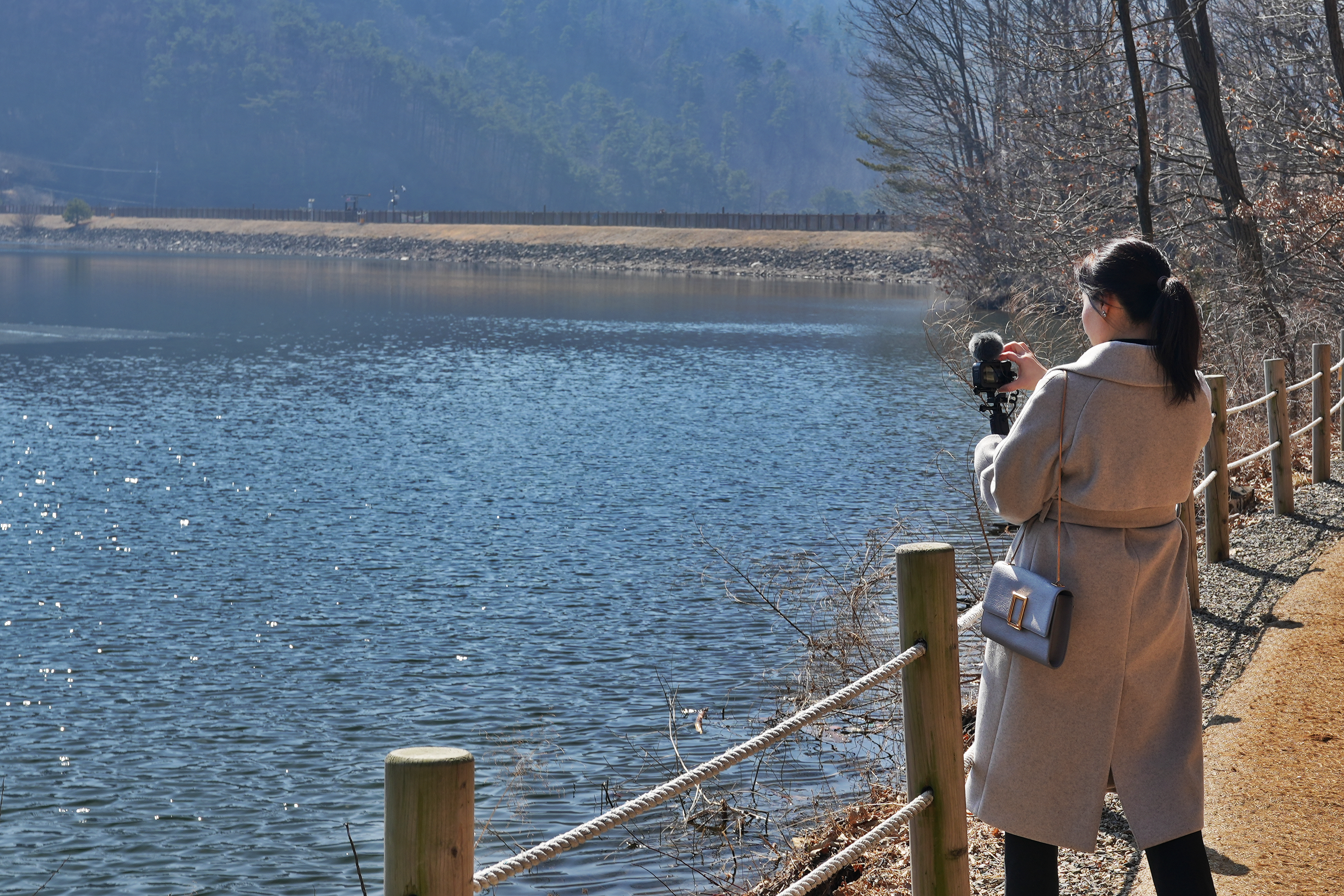 '이 풍경 보면서 캠핑하면 너무 좋겠다' 하는 와이프. 산/바다/호수 등으로 캠핑을 다녀보니, 호수뷰 캠핑이 생각보다 우리 부부에게는 좋은 느낌을 줬던 것 같다.