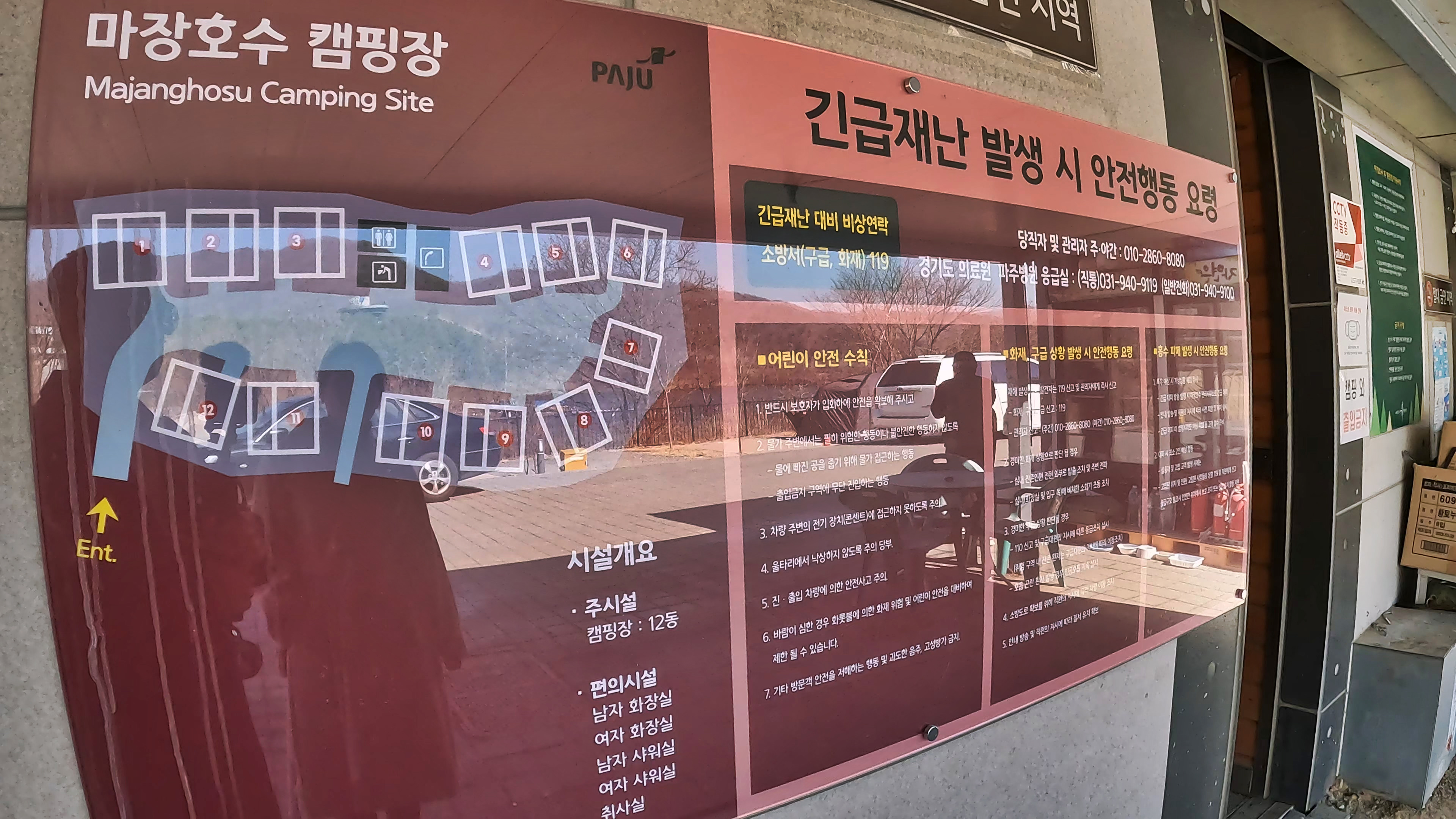 호수 한켠에 있던 마장호수 캠핑장. 총 12개 사이트로 파쇄석 사이트.