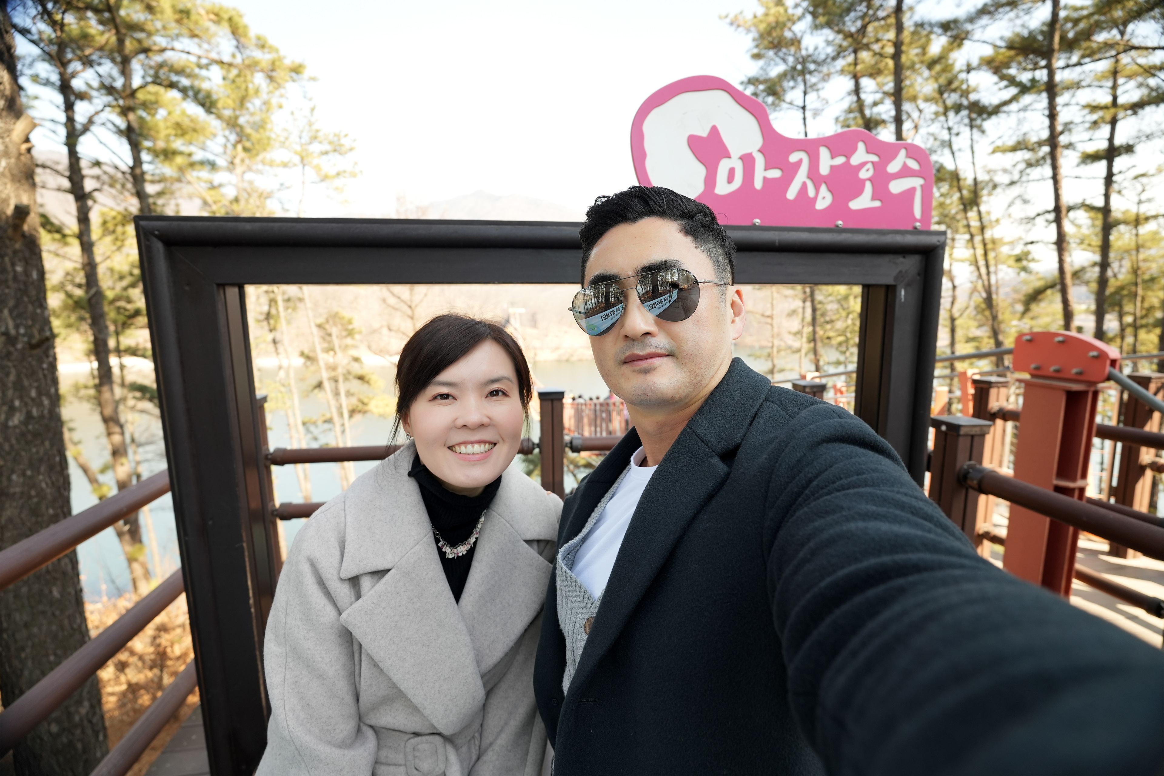 마장호수 출렁다리 입구에서 기념샷 하나 남기고