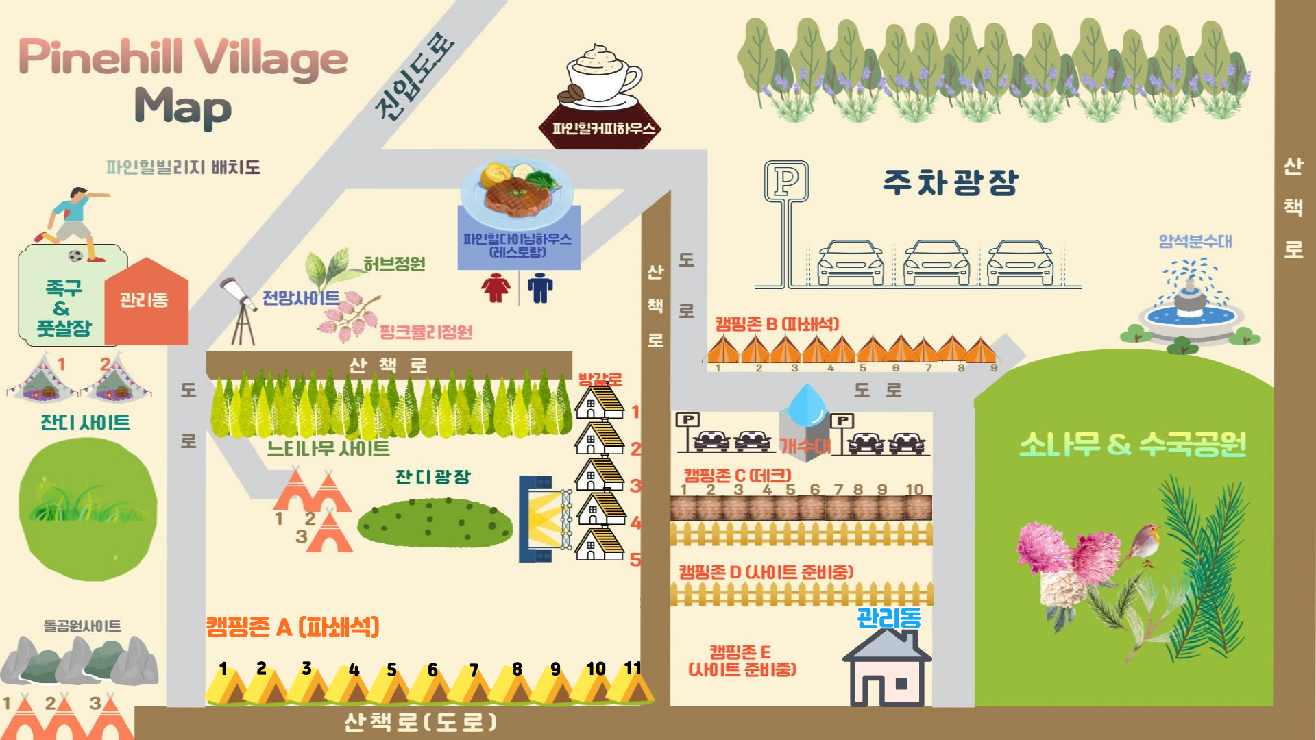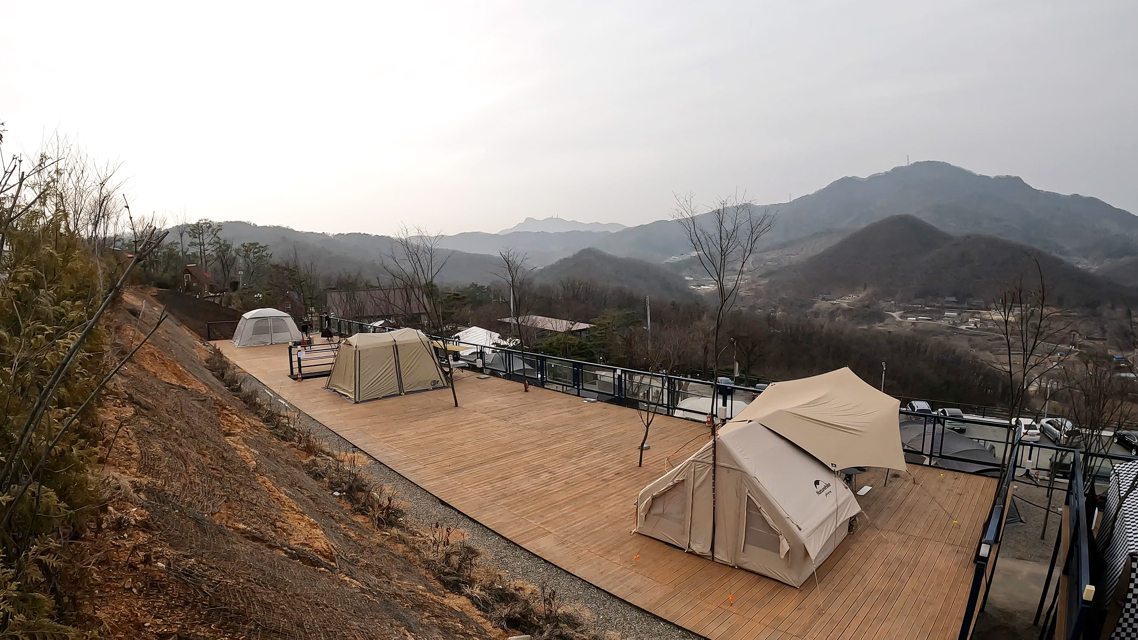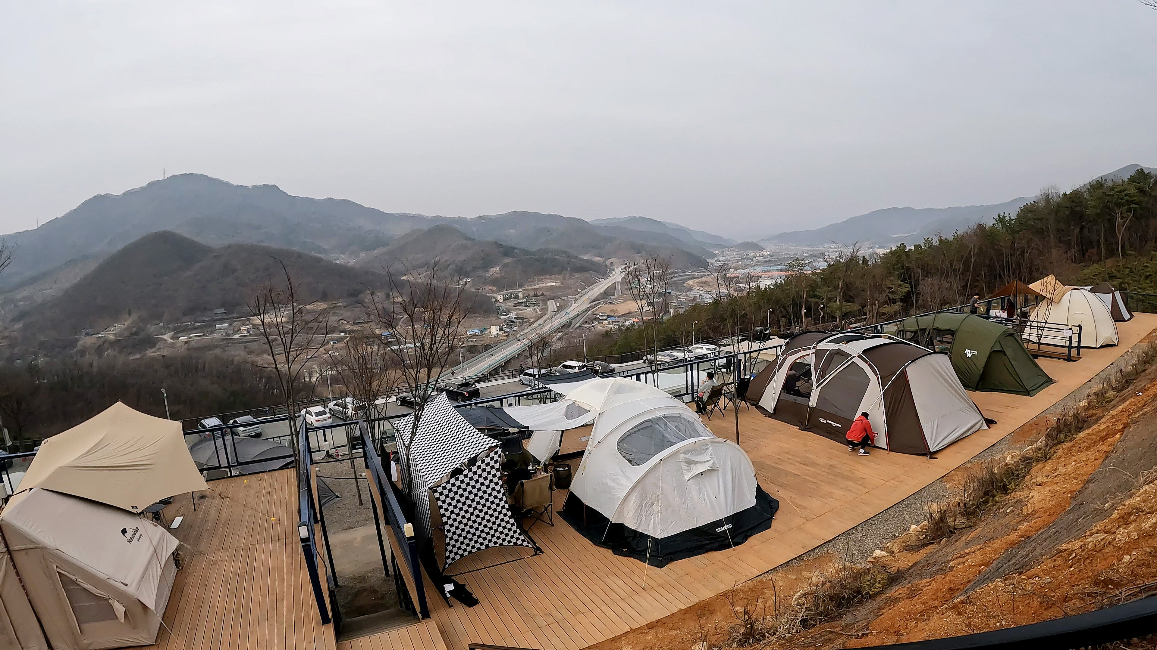 가벼운 산행위에 오후 늦게 도착한 파인힐 빌리지 캠핑장. 꽤나 유명한 캠핑장으로 뷰도 제법 좋은 캠핑장이다.