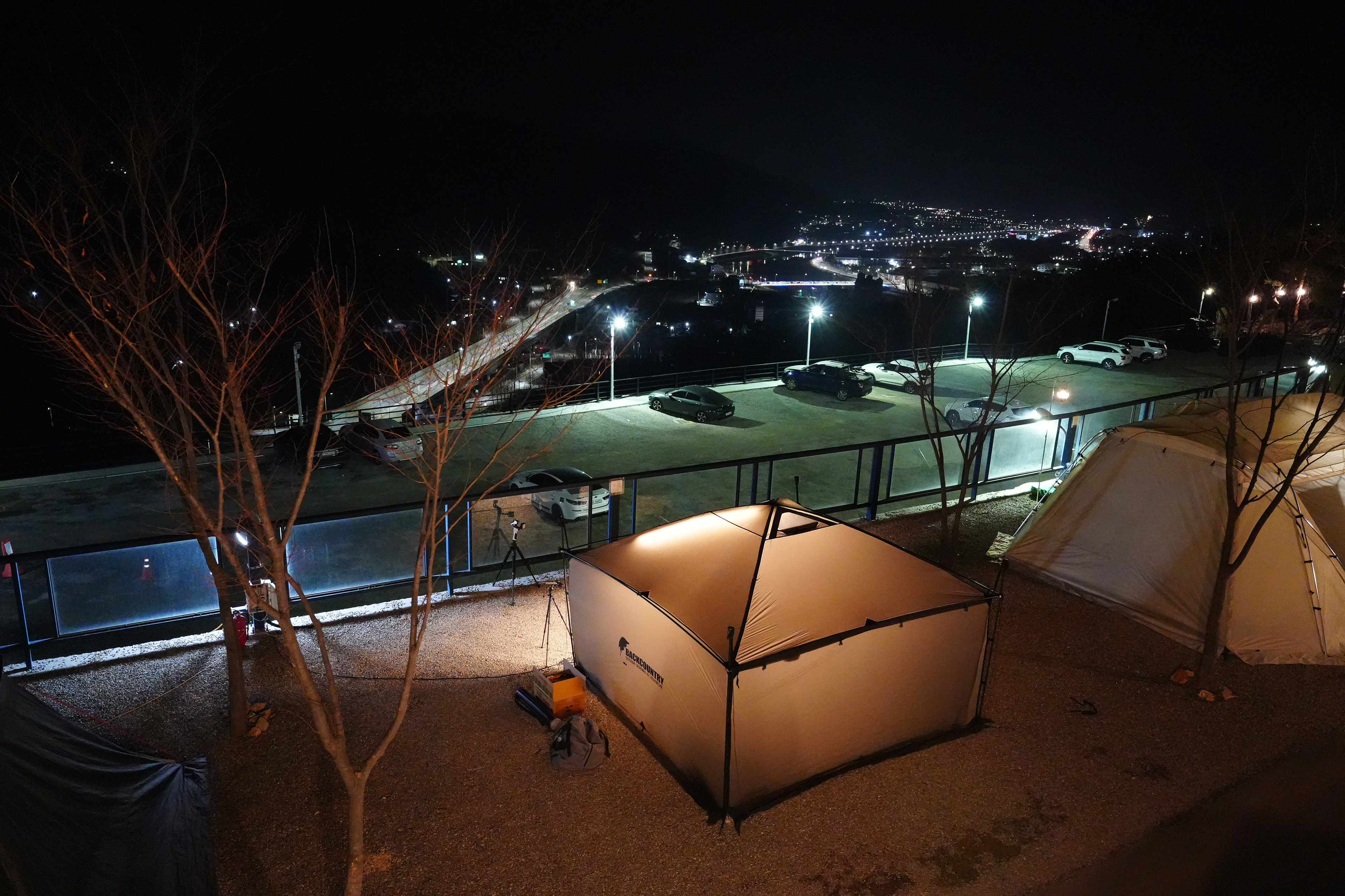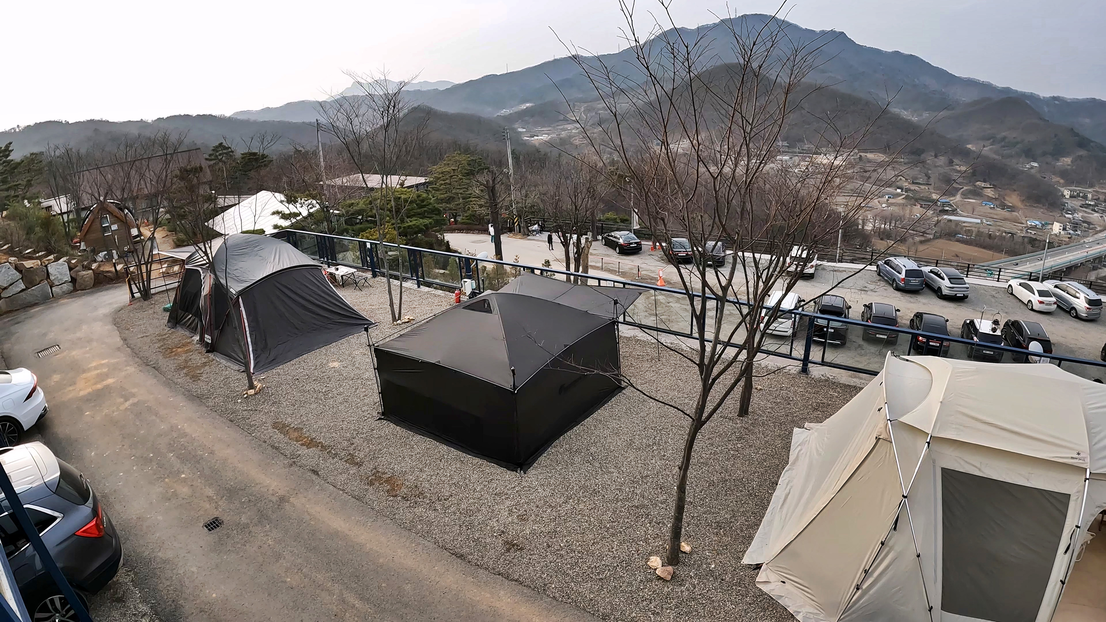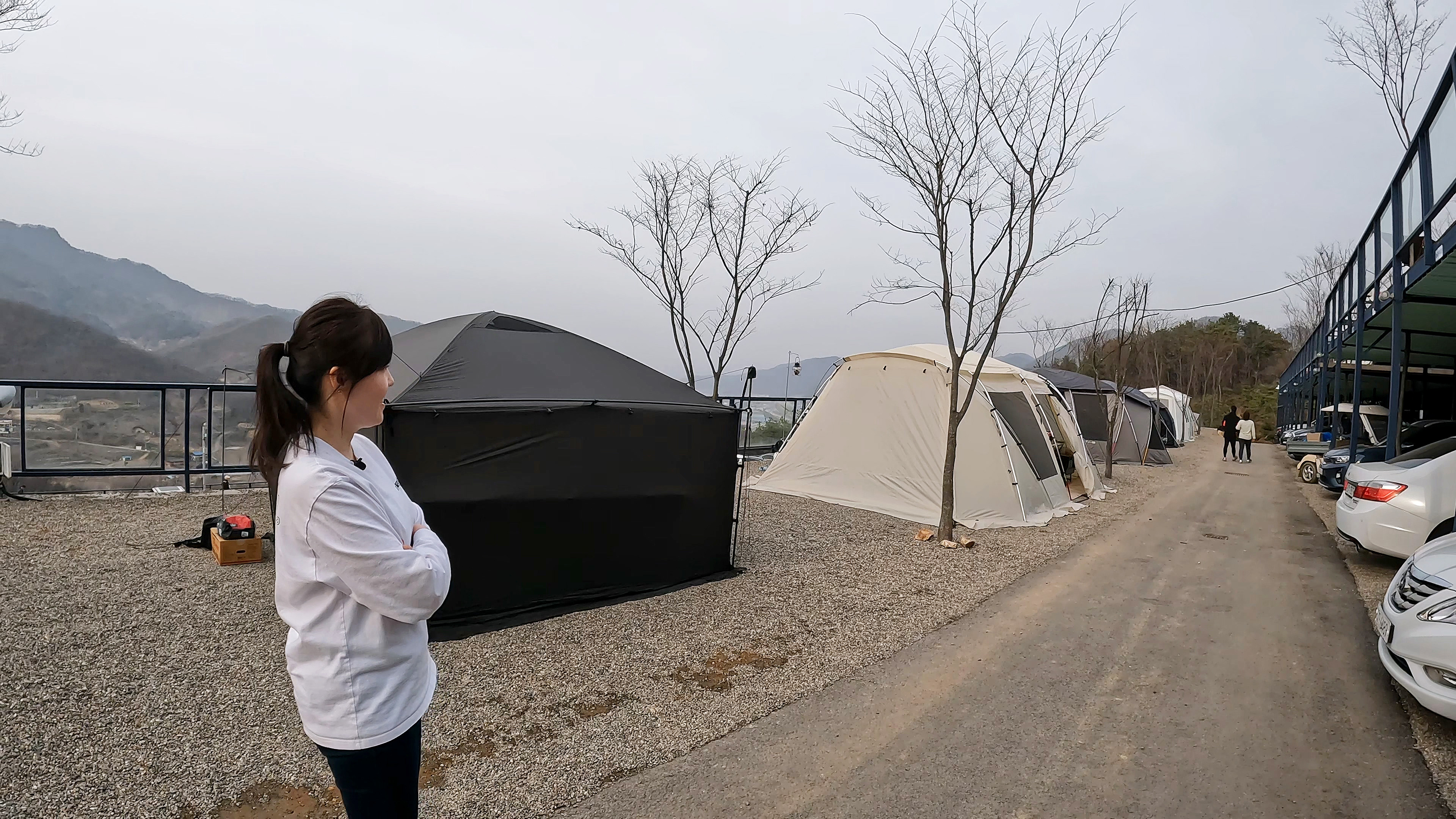 B구역은 파쇄석 존으로 (캠핑장 안내에는 8미터로 나오는데 잘못 표기된 듯) 사이트가 그리 넓은 편은 아니라 리빙쉘을 가져온 사람들은 비스듬히 구축한 것이 눈에 띄였다.
