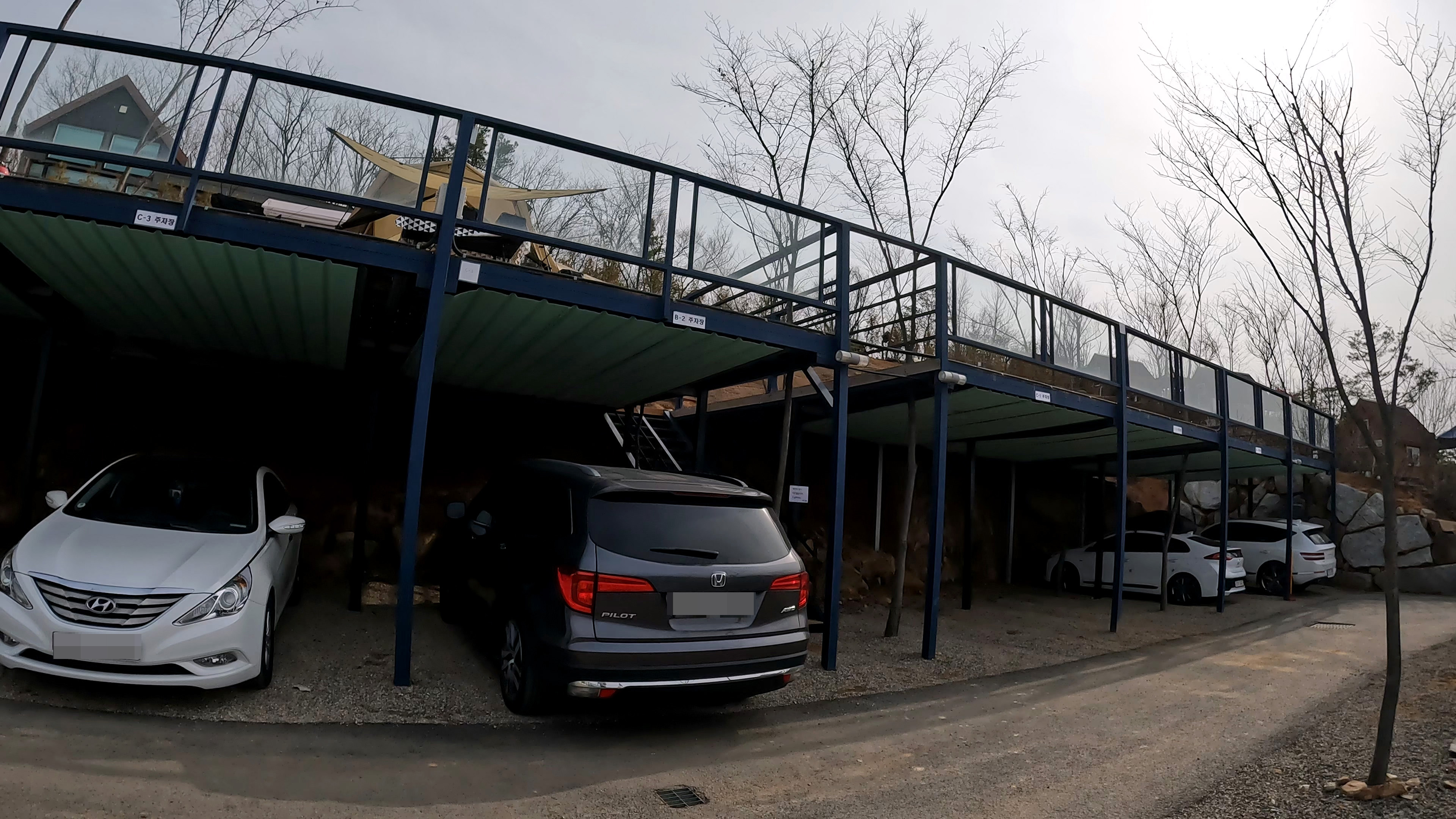 B존은 사이트 뒤 (C존의 데크 아래쪽) 에 바로 주차를 하는 형태