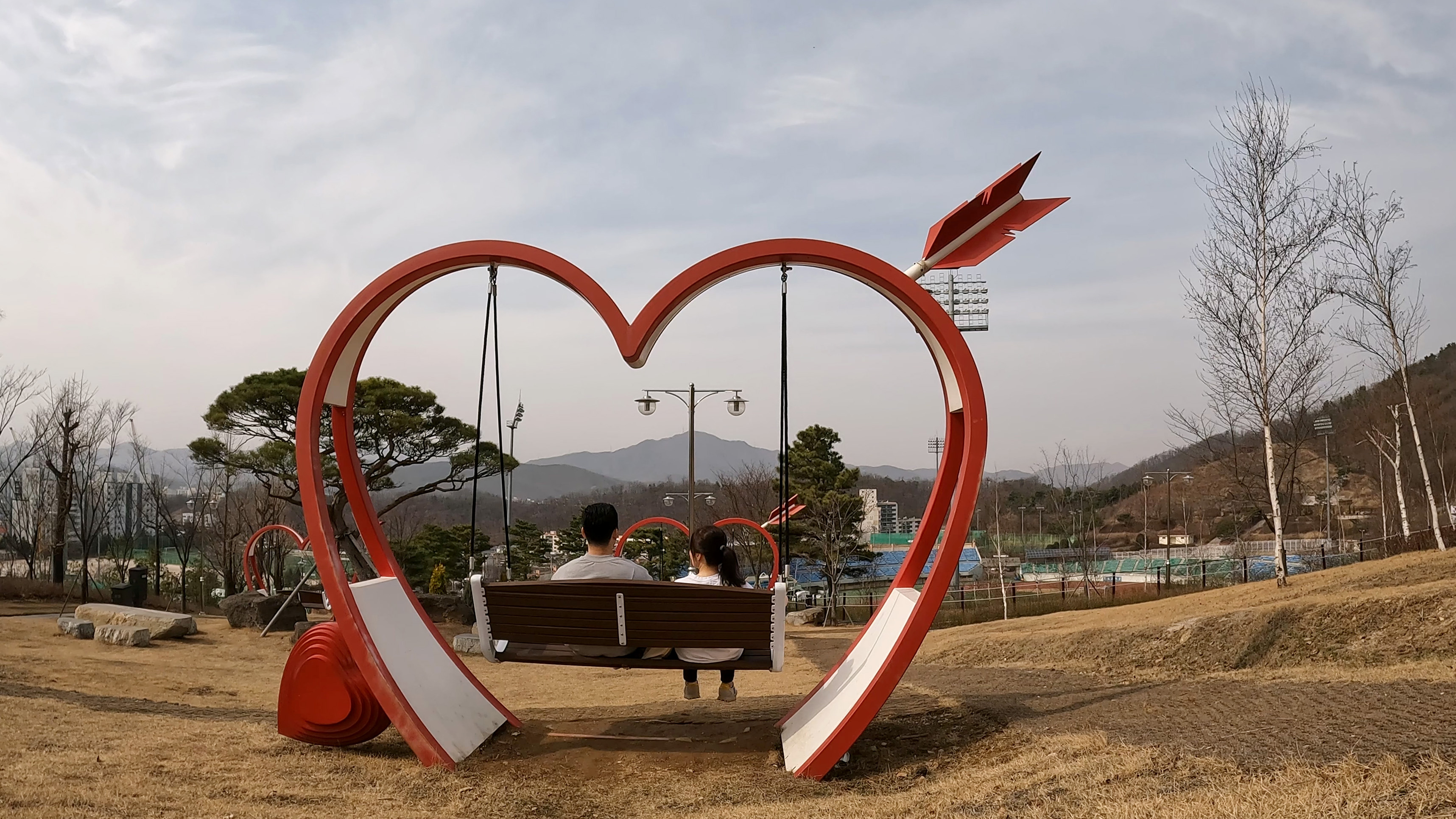 힐링체험숲 내에 있는 흔들 그네. 이 힐링체험숲은 동두천 시민들도 잘 찾지 않는 것인지, 주말임에도 찾는 사람이 거의 보이지 않고, 시야에 사람의 모습이 한명도 보이지 않는 것이 신기했다.